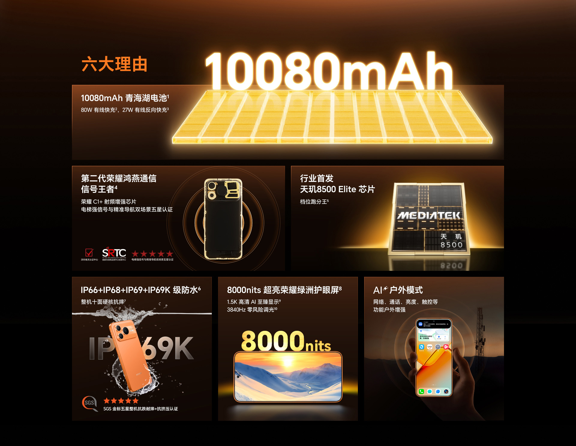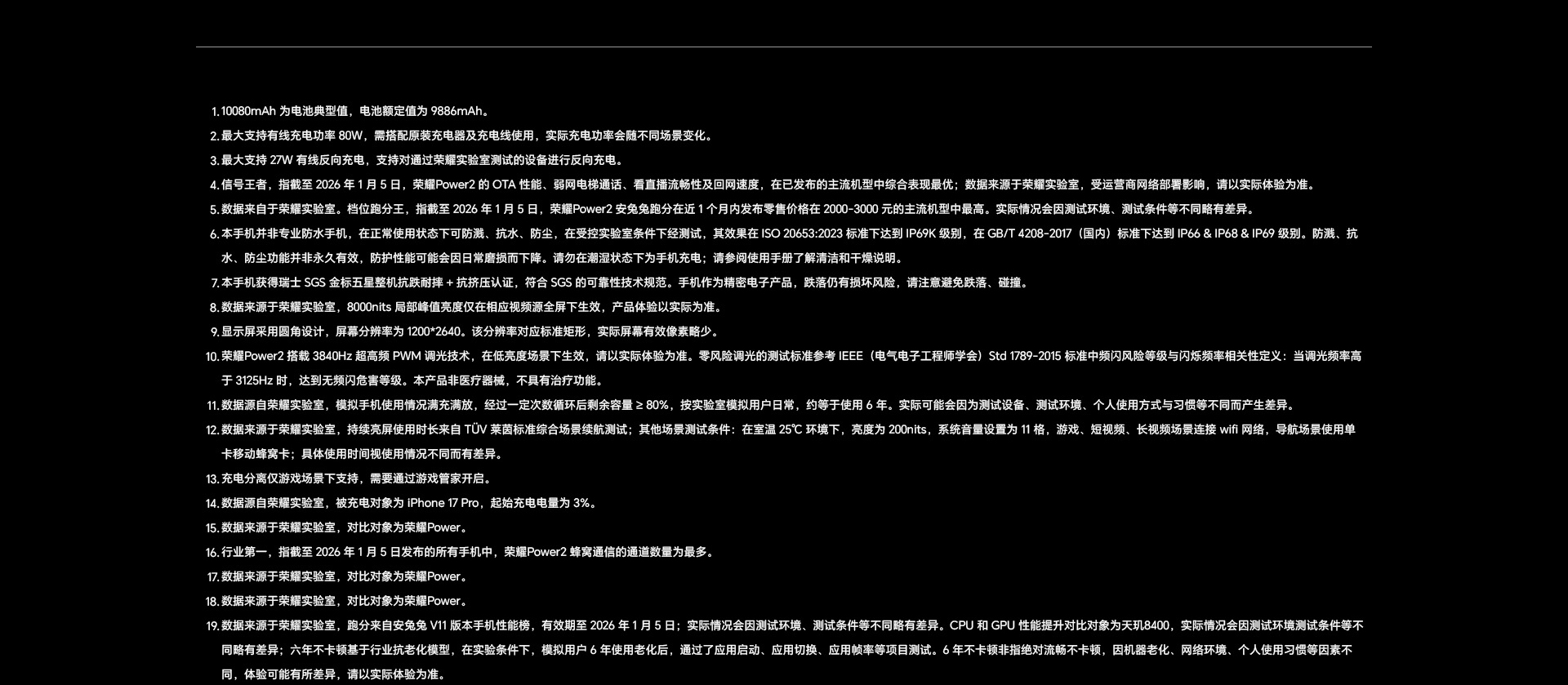 *以上页面中的数据为理论值,均来自荣耀内部实验室,于特定测试环境下所得(请见各项具体说明),实际使用中可能因产品个体差异、软件版本、使用条件和环境因素不同略有不同,请以实际使用的情况为准。