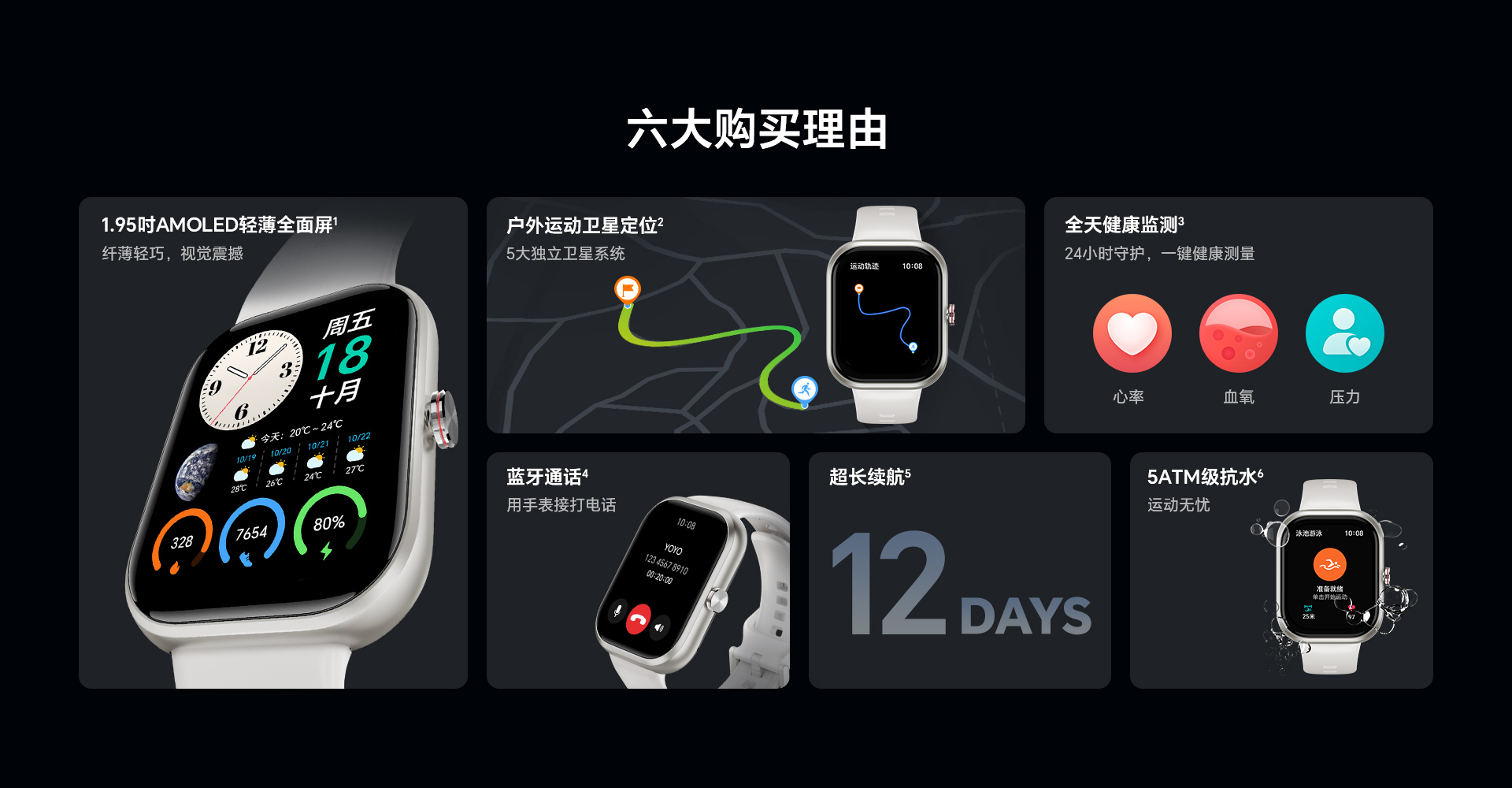 限量晒单赠30元猫超卡(咨询客服领取) 1.95吋AMOLED轻薄全面屏|户外运动卫星定位|全天健康监测