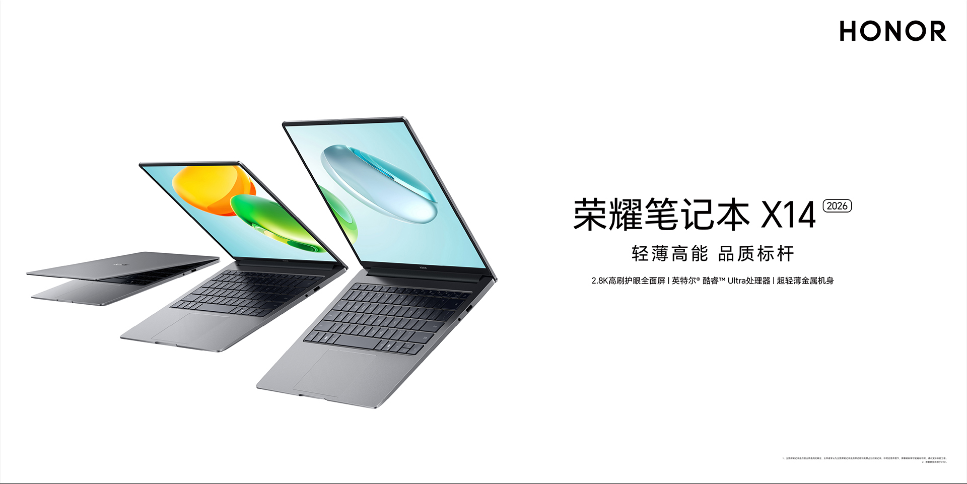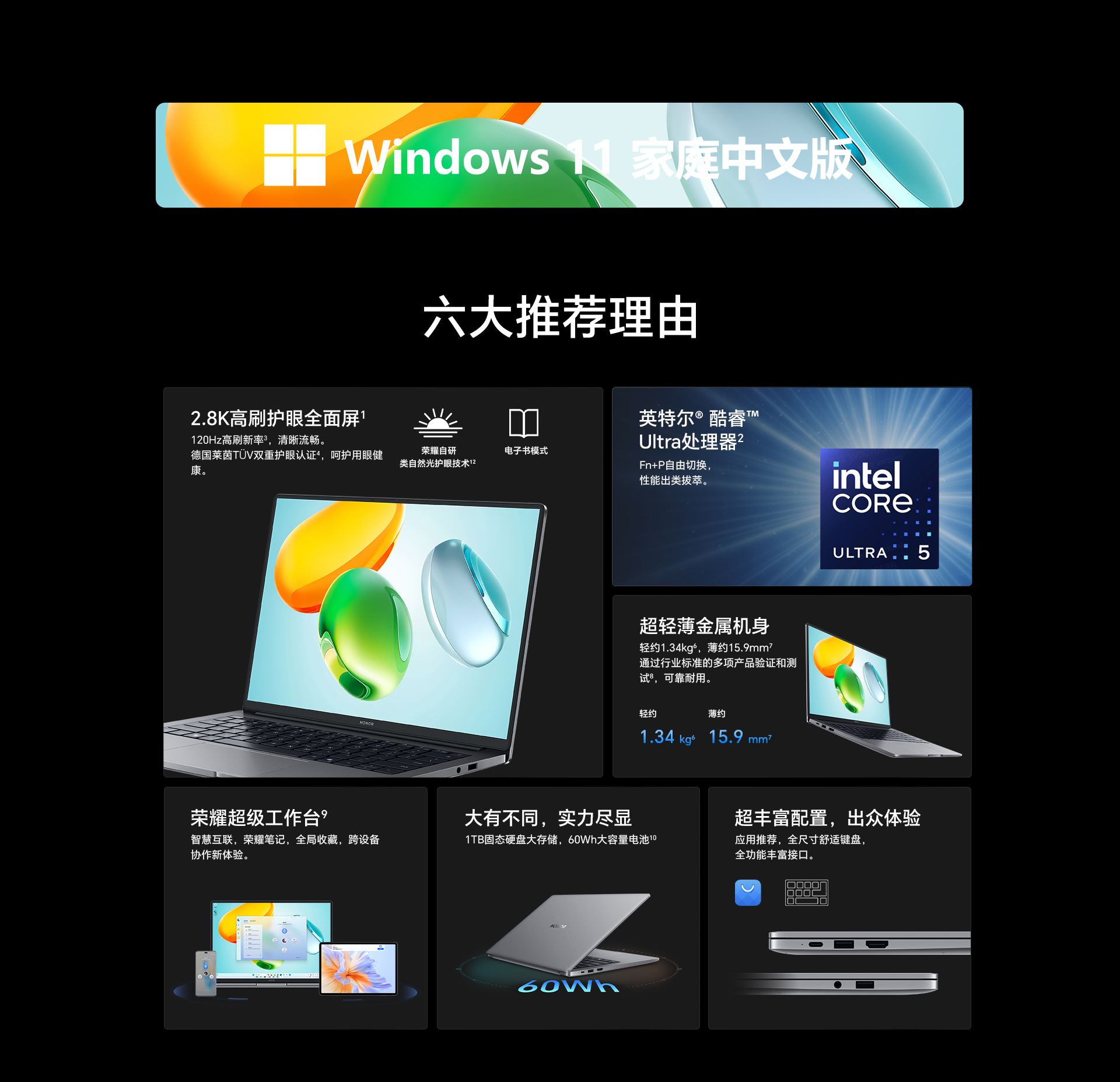 荣耀笔记本 X14 2026 14英寸轻薄笔记本电脑 酷睿Ultra5 Windows 11 家庭中文版 24G 1T 120Hz 2.8K高刷护眼屏 星空灰