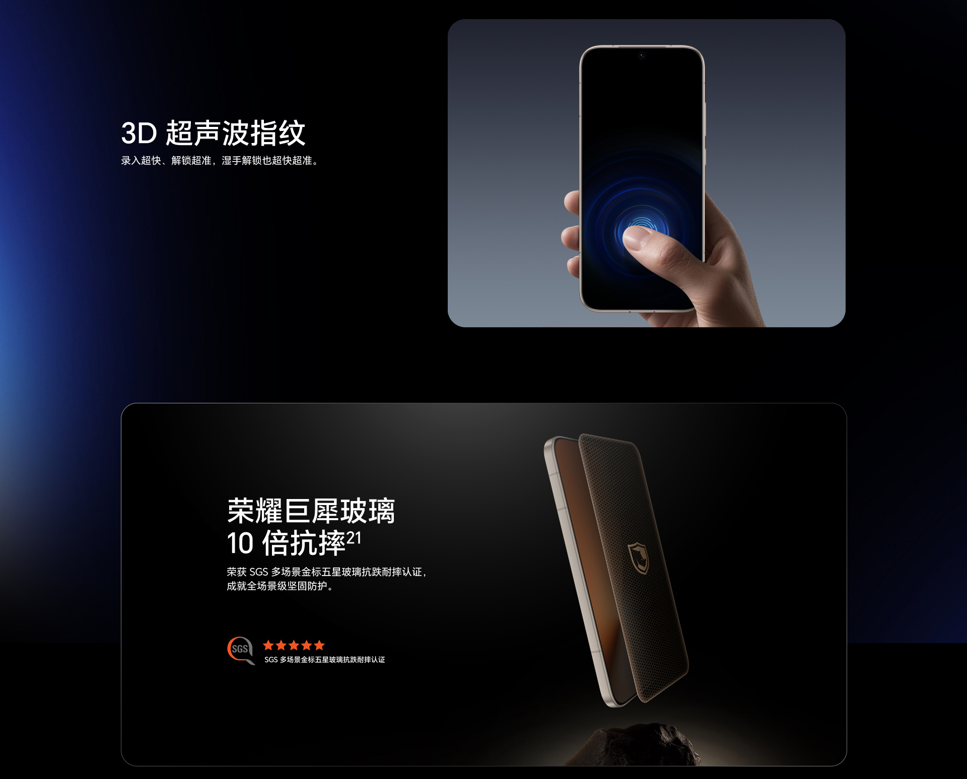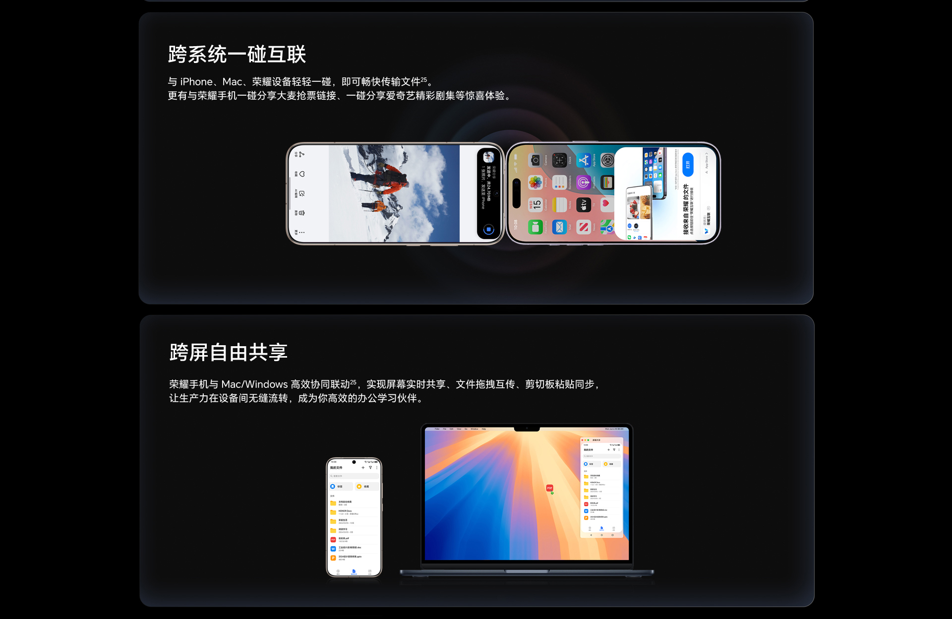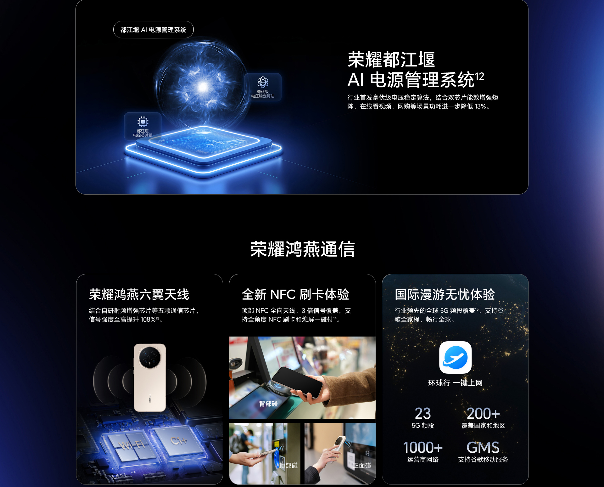 *以上页面中的数据为理论值,均来自荣耀内部实验室,于特定测试环境下所得(请见各项具体说明),实际使用中可能因产品个体差异、软件版本、使用条件和环境因素不同略有不同,请以实际使用的情况为准。
