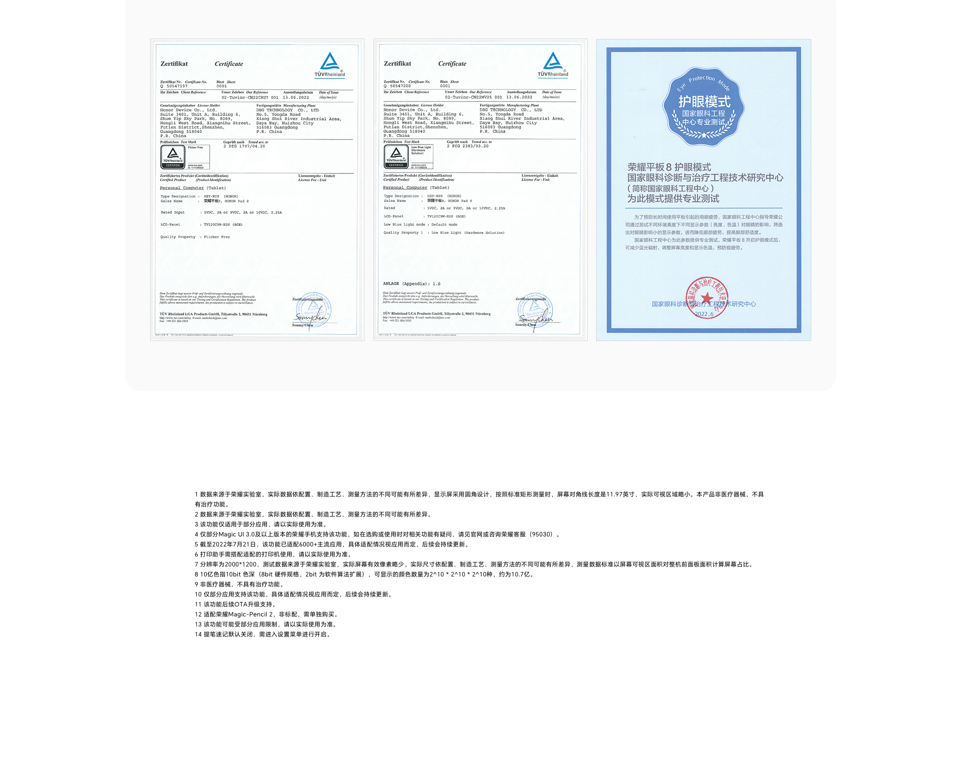 *以上页面中的数据为理论值,均来自荣耀内部实验室,于特定测试环境下所得(请见各项具体说明),实际使用中可能因产品个体差异、软件版本、使用条件和环境因素不同略有不同,请以实际使用的情况为准。