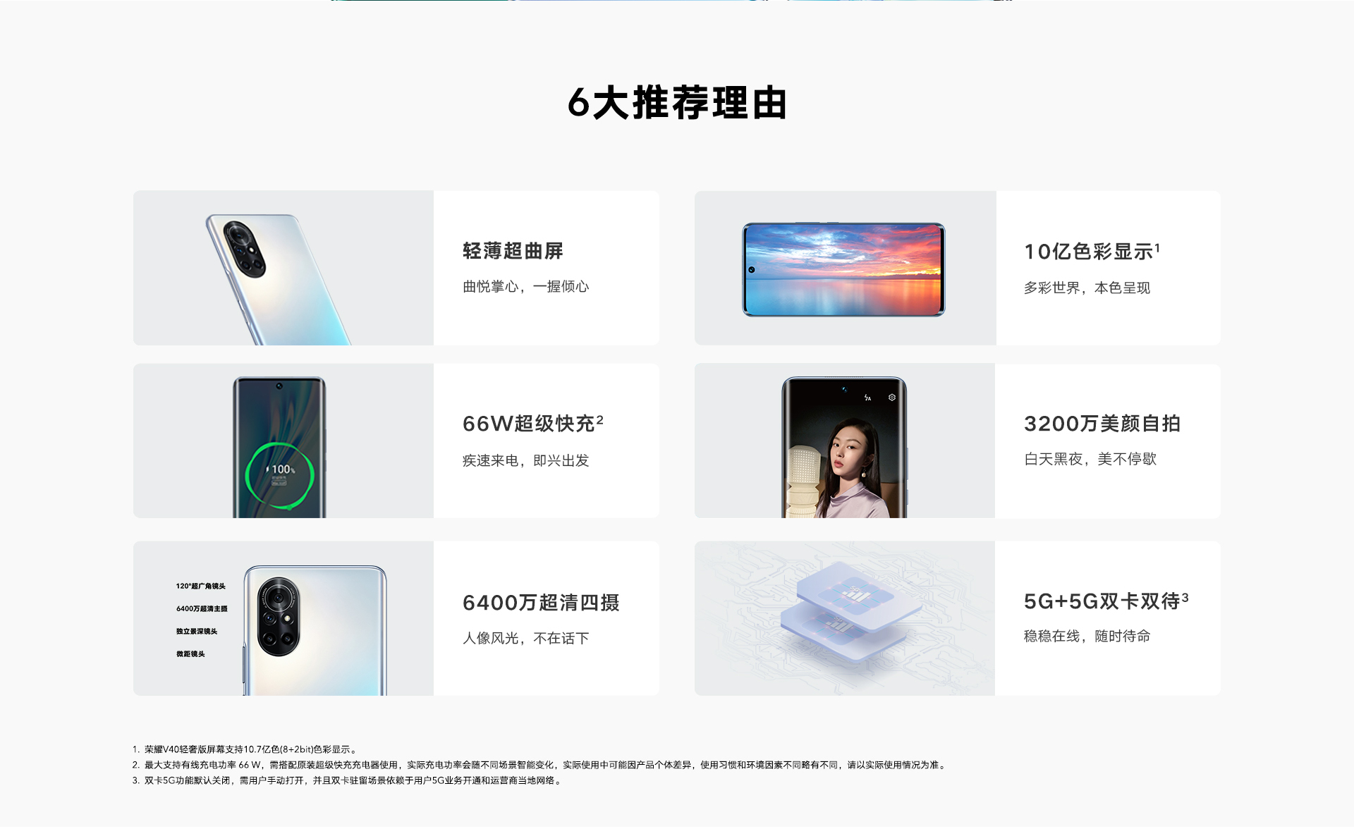 *以上页面中的数据为理论值,均来自荣耀内部实验室,于特定测试环境下所得(请见各项具体说明),实际使用中可能因产品个体差异、软件版本、使用条件和环境因素不同略有不同,请以实际使用的情况为准。