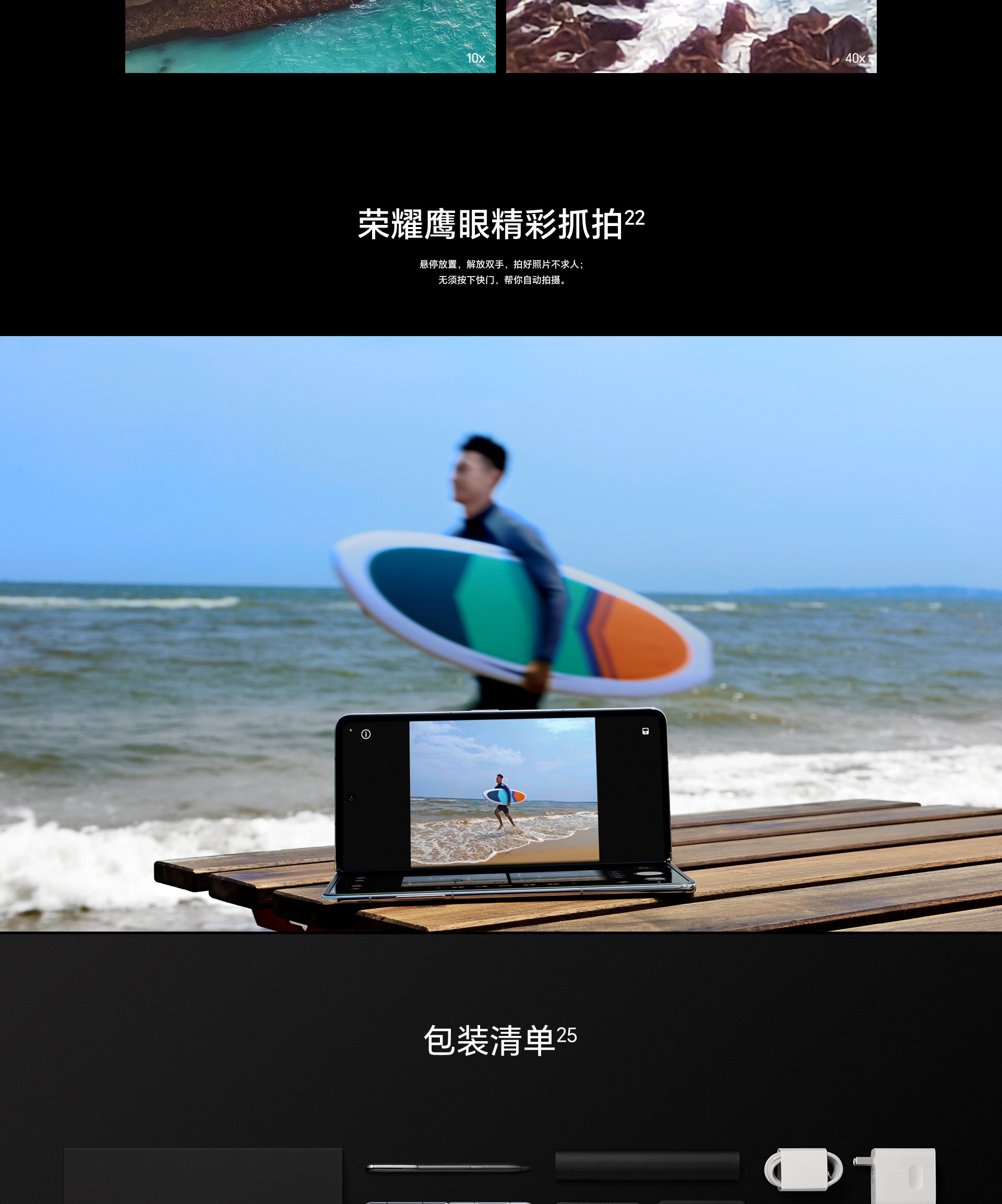*以上页面中的数据为理论值,均来自荣耀内部实验室,于特定测试环境下所得(请见各项具体说明),实际使用中可能因产品个体差异、软件版本、使用条件和环境因素不同略有不同,请以实际使用的情况为准。