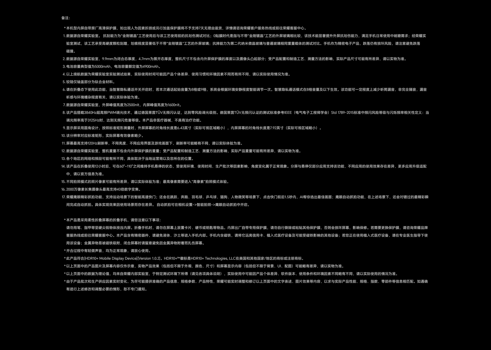 *以上页面中的数据为理论值,均来自荣耀内部实验室,于特定测试环境下所得(请见各项具体说明),实际使用中可能因产品个体差异、软件版本、使用条件和环境因素不同略有不同,请以实际使用的情况为准。