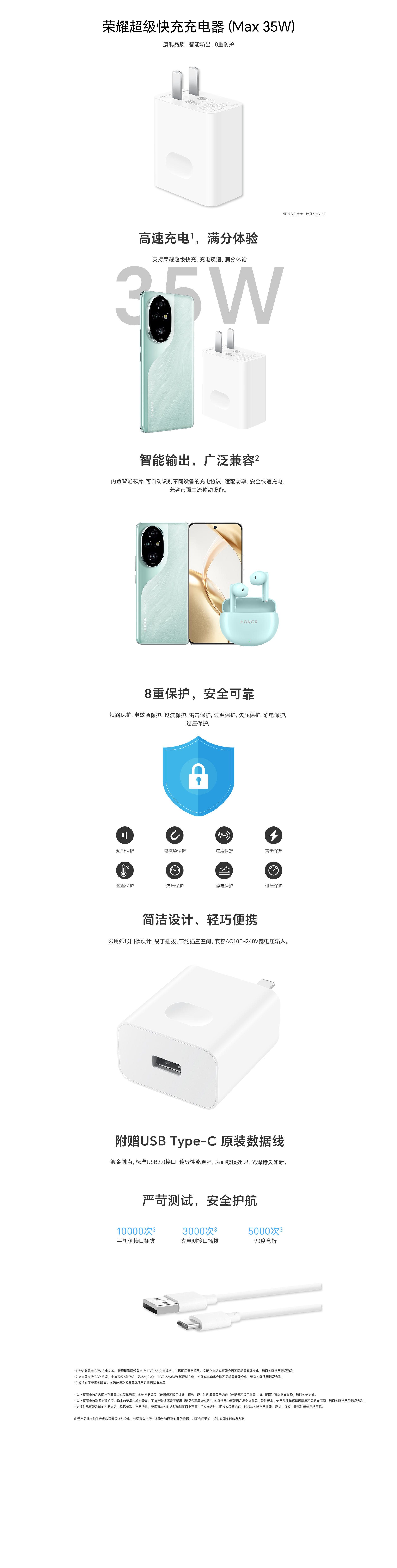 荣耀超级快充充电器(Max 35W)X 1 数据线X 1说明书(含保修卡)X 1