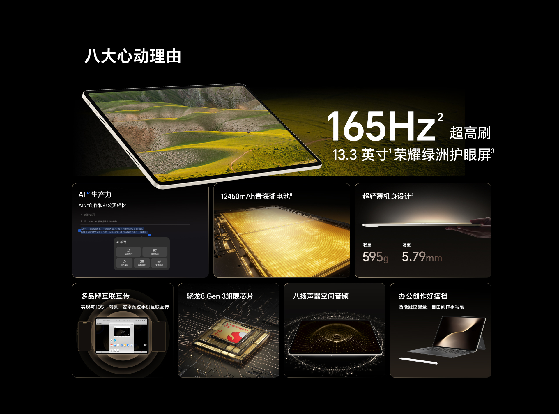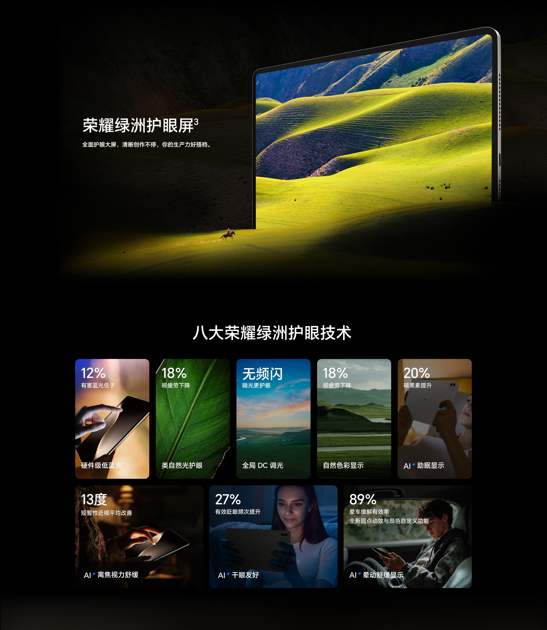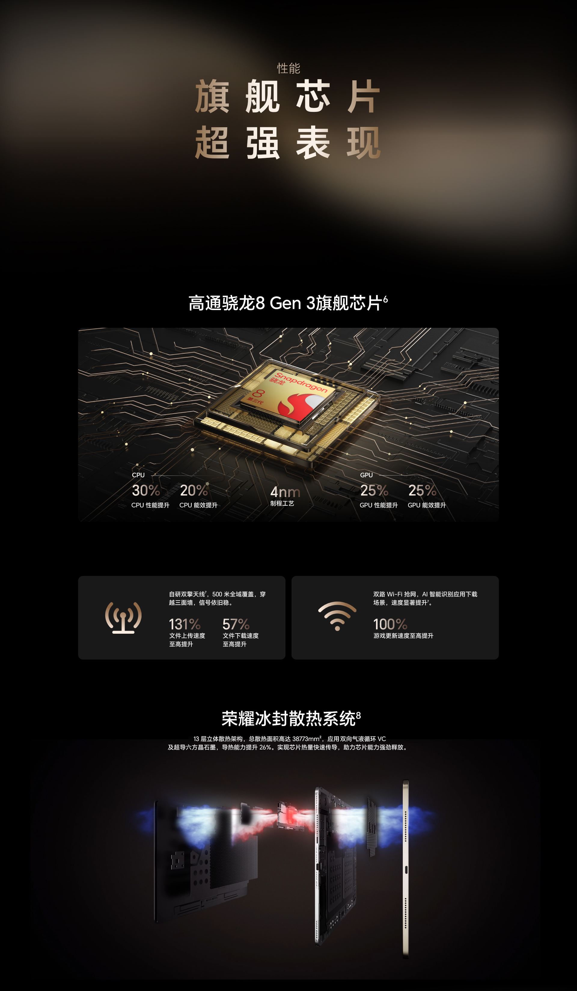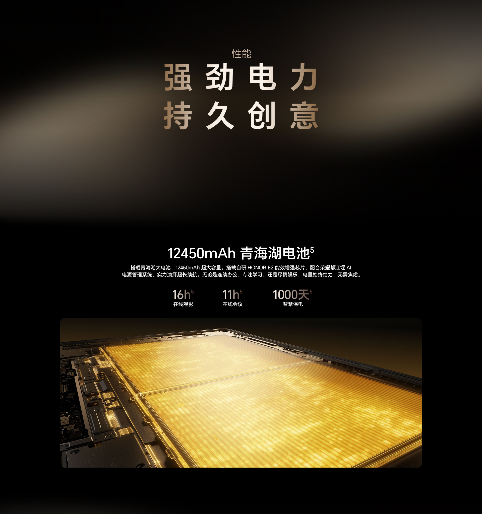 *以上页面中的数据为理论值,均来自荣耀内部实验室,于特定测试环境下所得(请见各项具体说明),实际使用中可能因产品个体差异、软件版本、使用条件和环境因素不同略有不同,请以实际使用的情况为准。