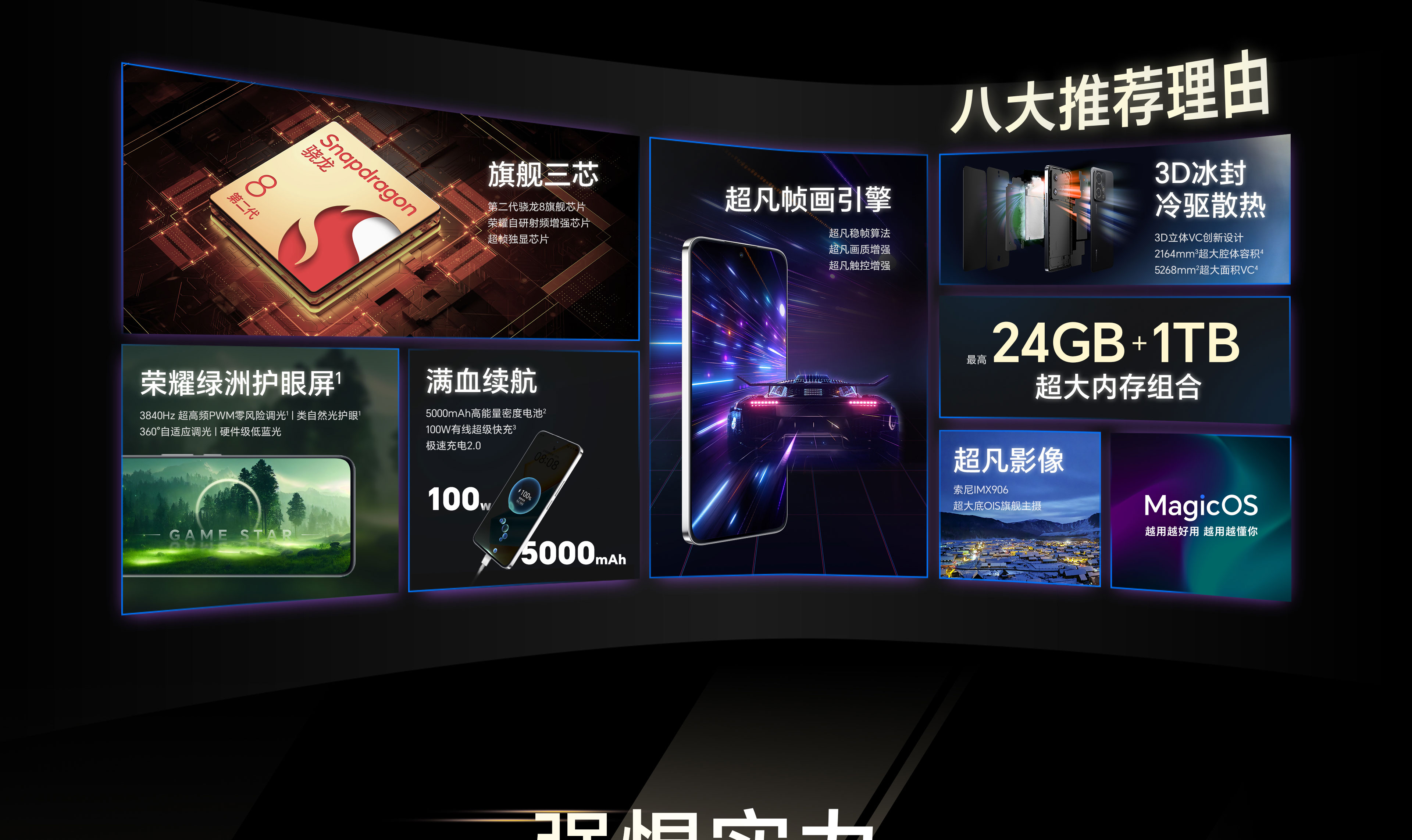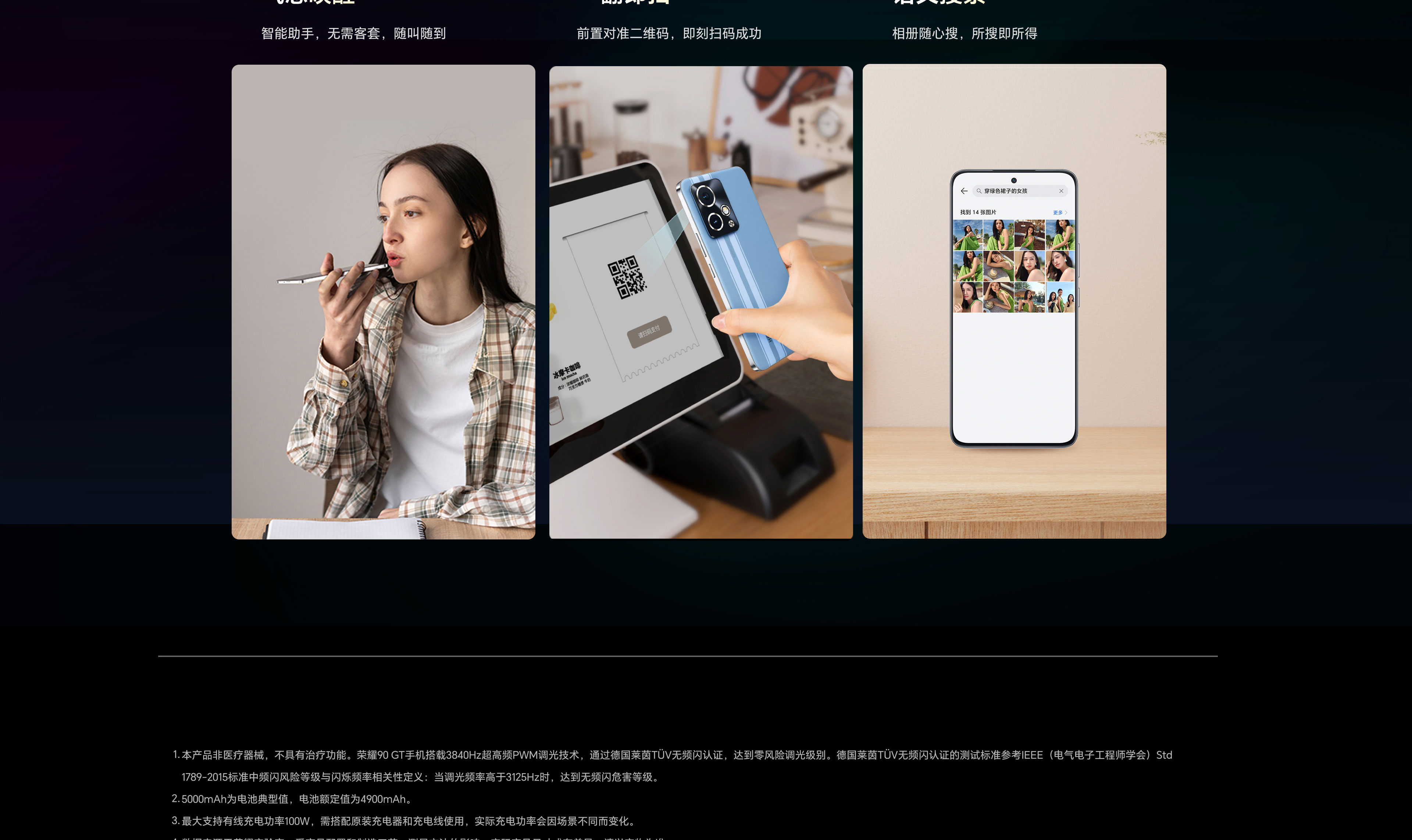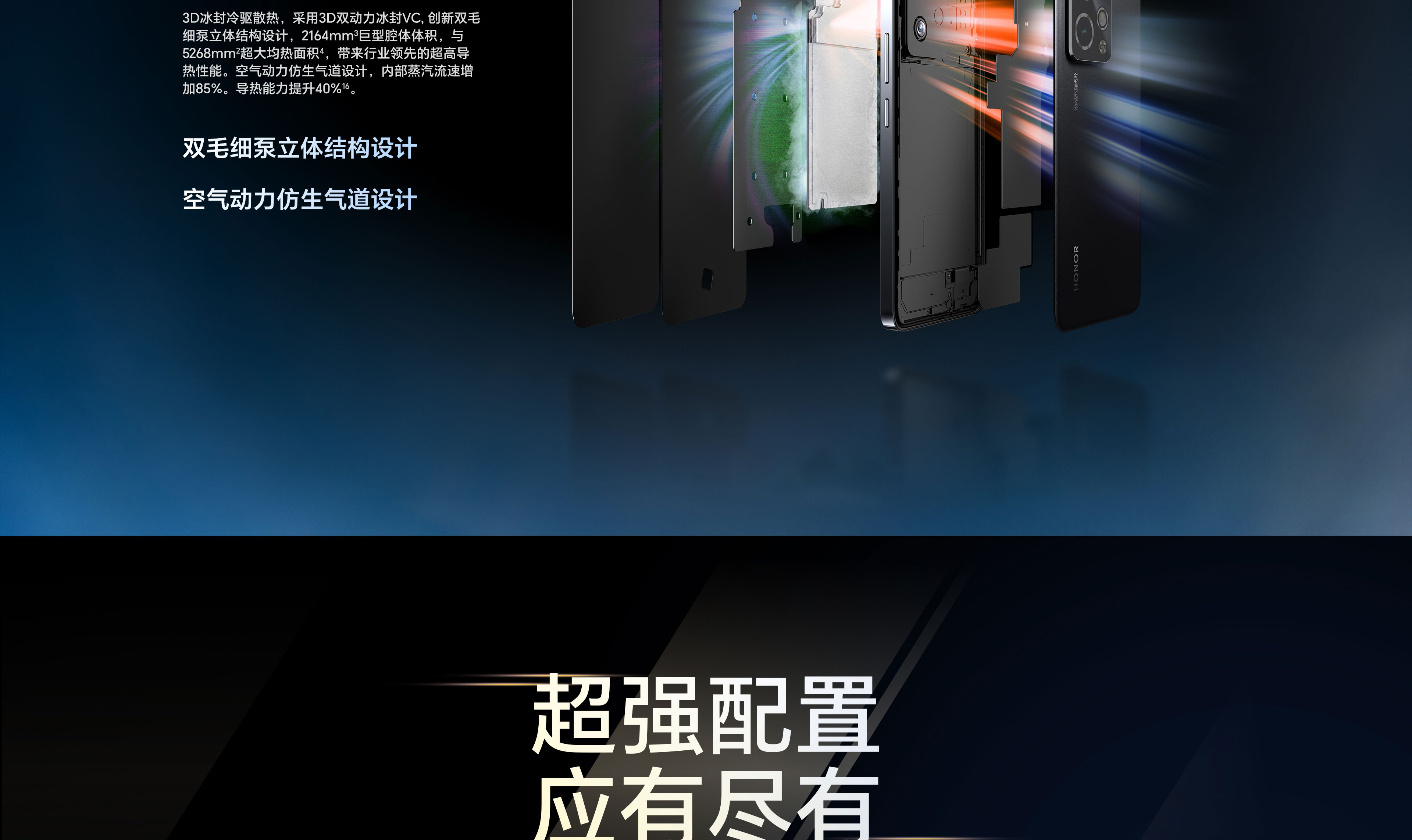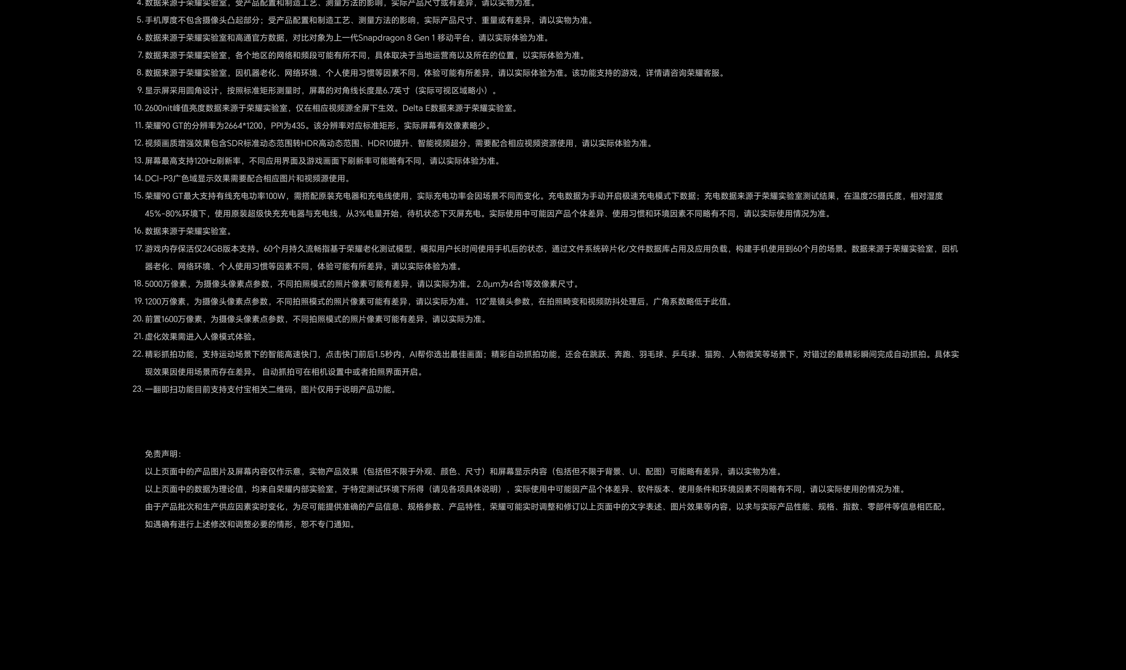 *以上页面中的数据为理论值,均来自荣耀内部实验室,于特定测试环境下所得(请见各项具体说明),实际使用中可能因产品个体差异、软件版本、使用条件和环境因素不同略有不同,请以实际使用的情况为准。