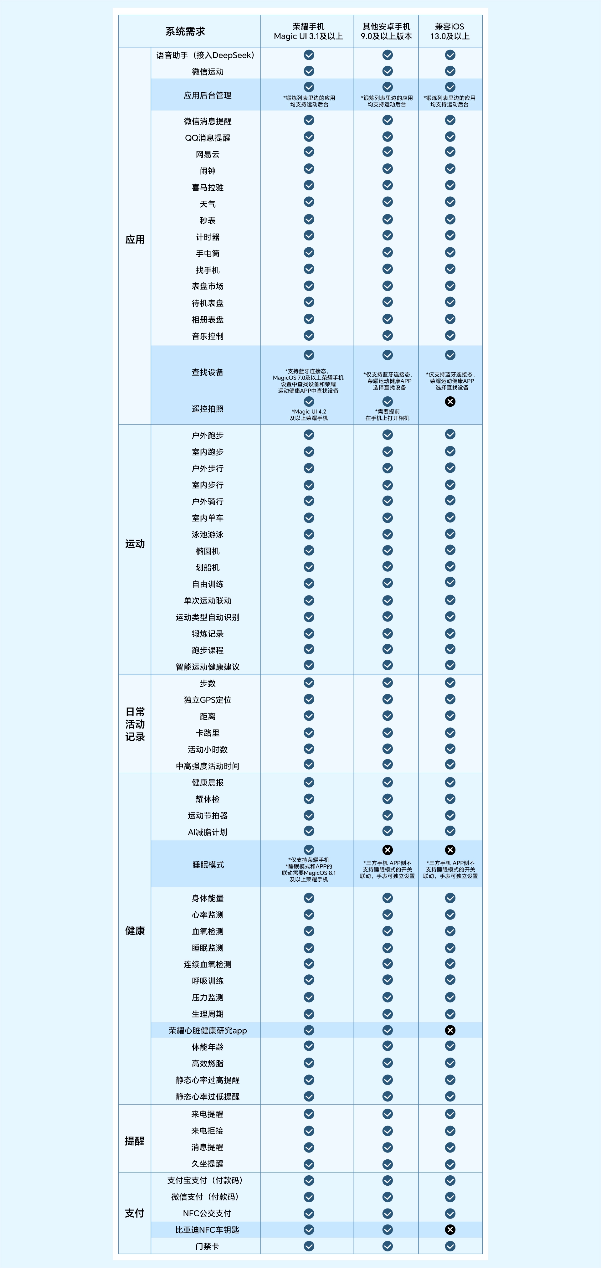 *为提供尽可能准确的产品信息、规格参数、产品特性,荣耀可能实时调整和修订以上页面中的文字表述、图片效果等内容,以求与实际产品性能、规格、指数、零部件等信息相匹配,由于产品批次和生产供应因素实时变化,如遇确有进行上述修改和调整必要的情形,恕不专门通知。