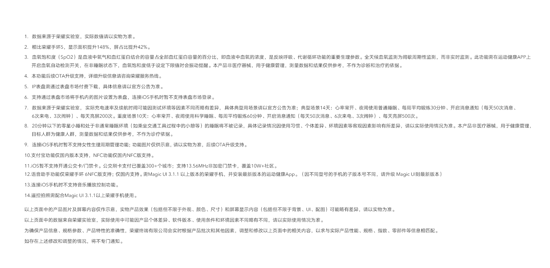 *以上页面中的数据为理论值,均来自荣耀内部实验室,于特定测试环境下所得(请见各项具体说明),实际使用中可能因产品个体差异、软件版本、使用条件和环境因素不同略有不同,请以实际使用的情况为准。