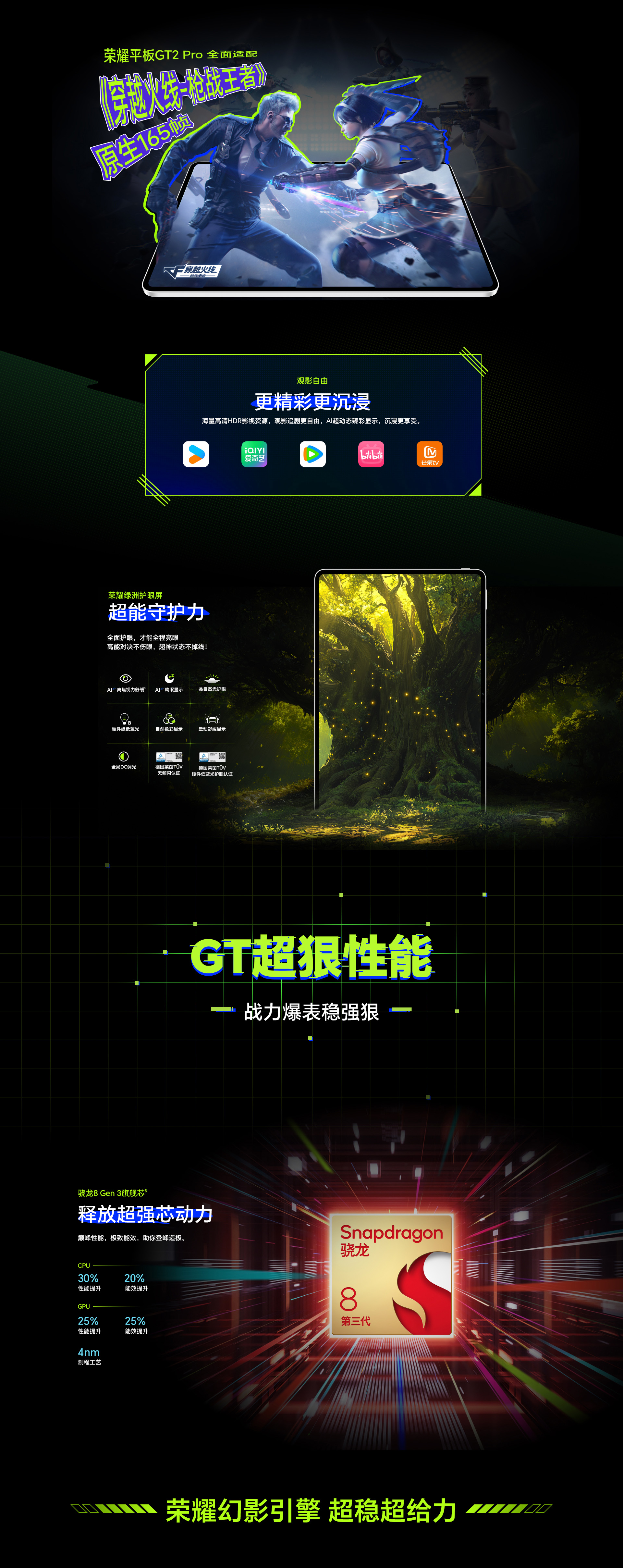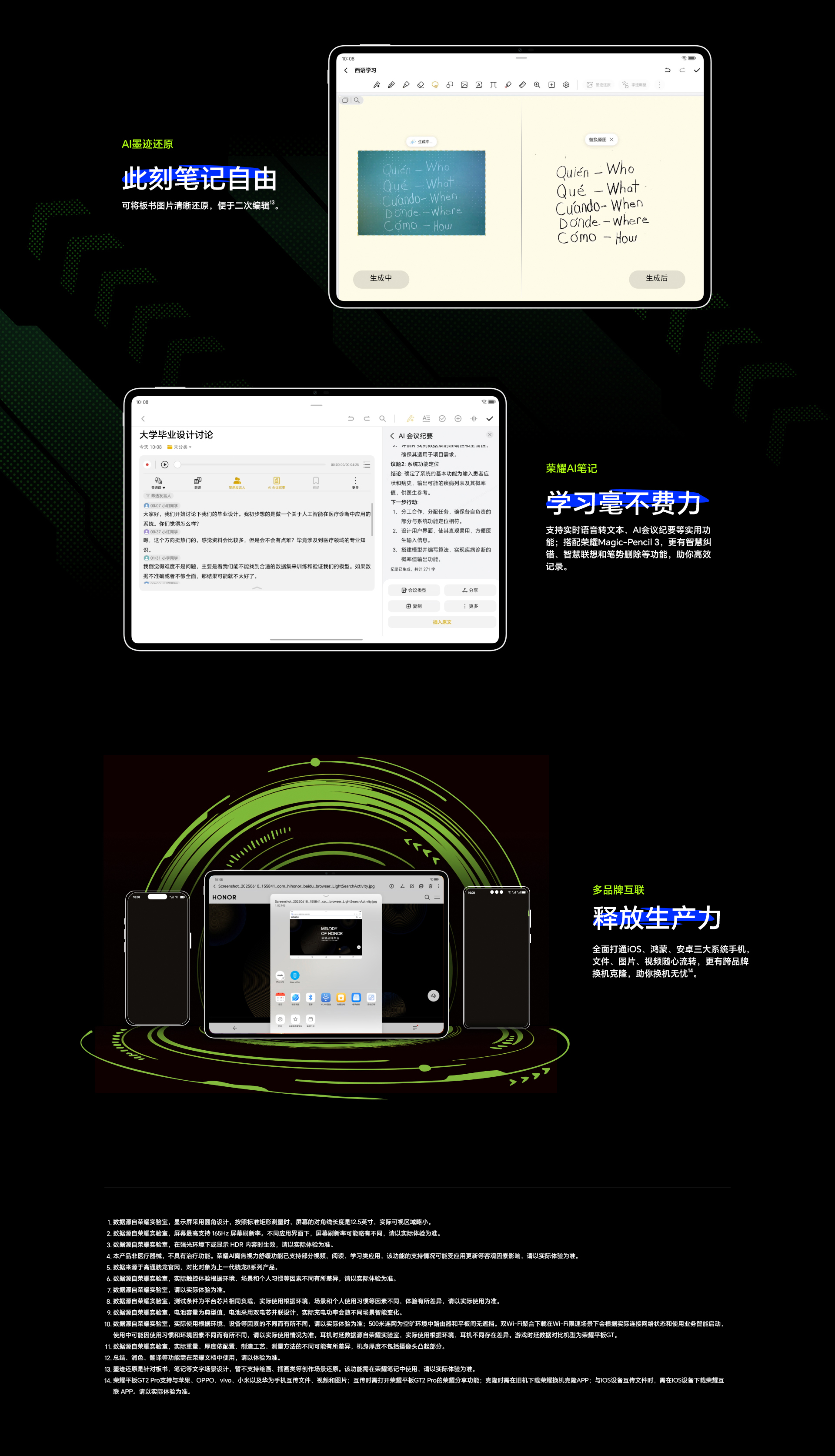 *以上页面中的数据为理论值,均来自荣耀内部实验室,于特定测试环境下所得(请见各项具体说明),实际使用中可能因产品个体差异、软件版本、使用条件和环境因素不同略有不同,请以实际使用的情况为准。