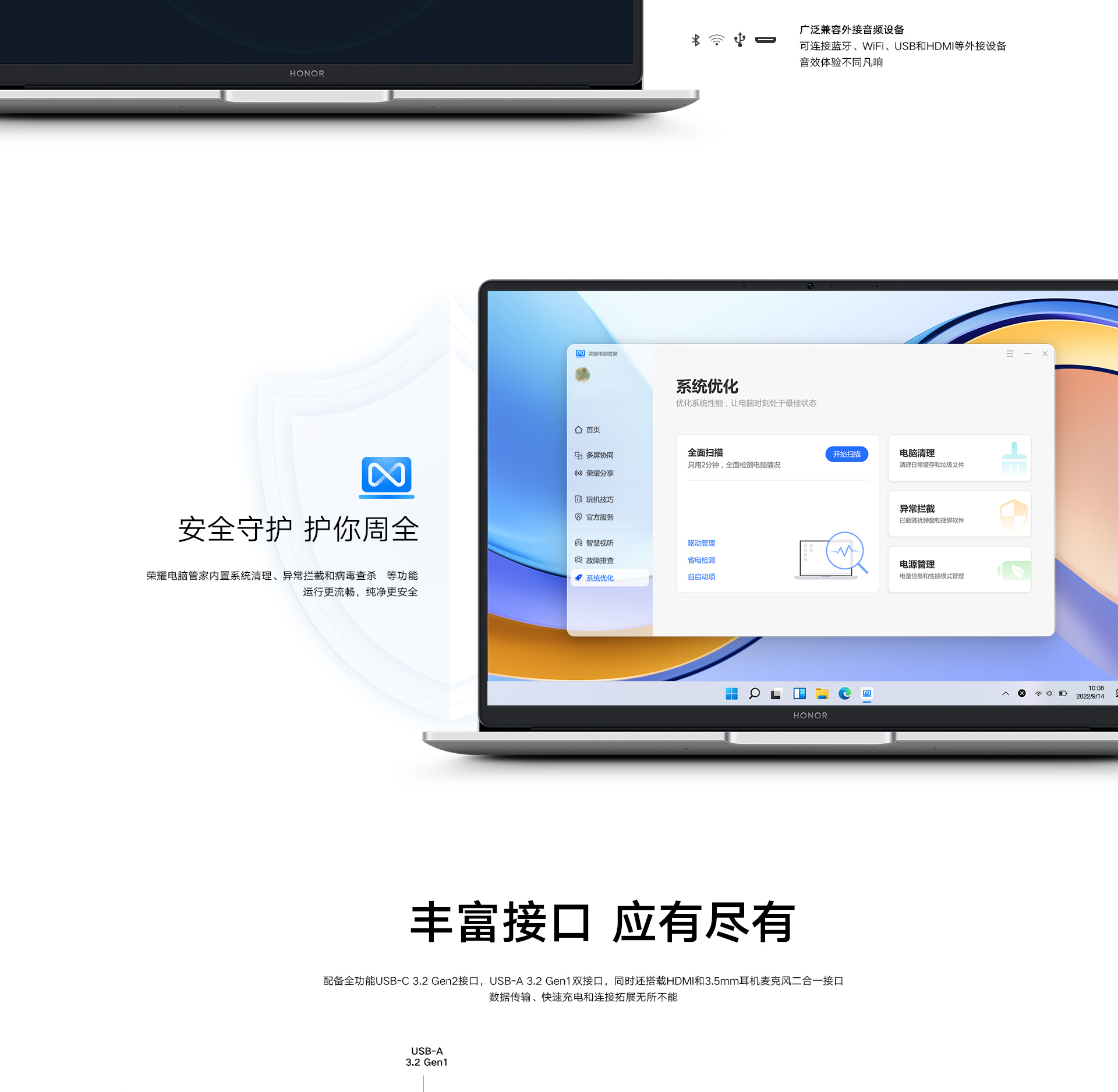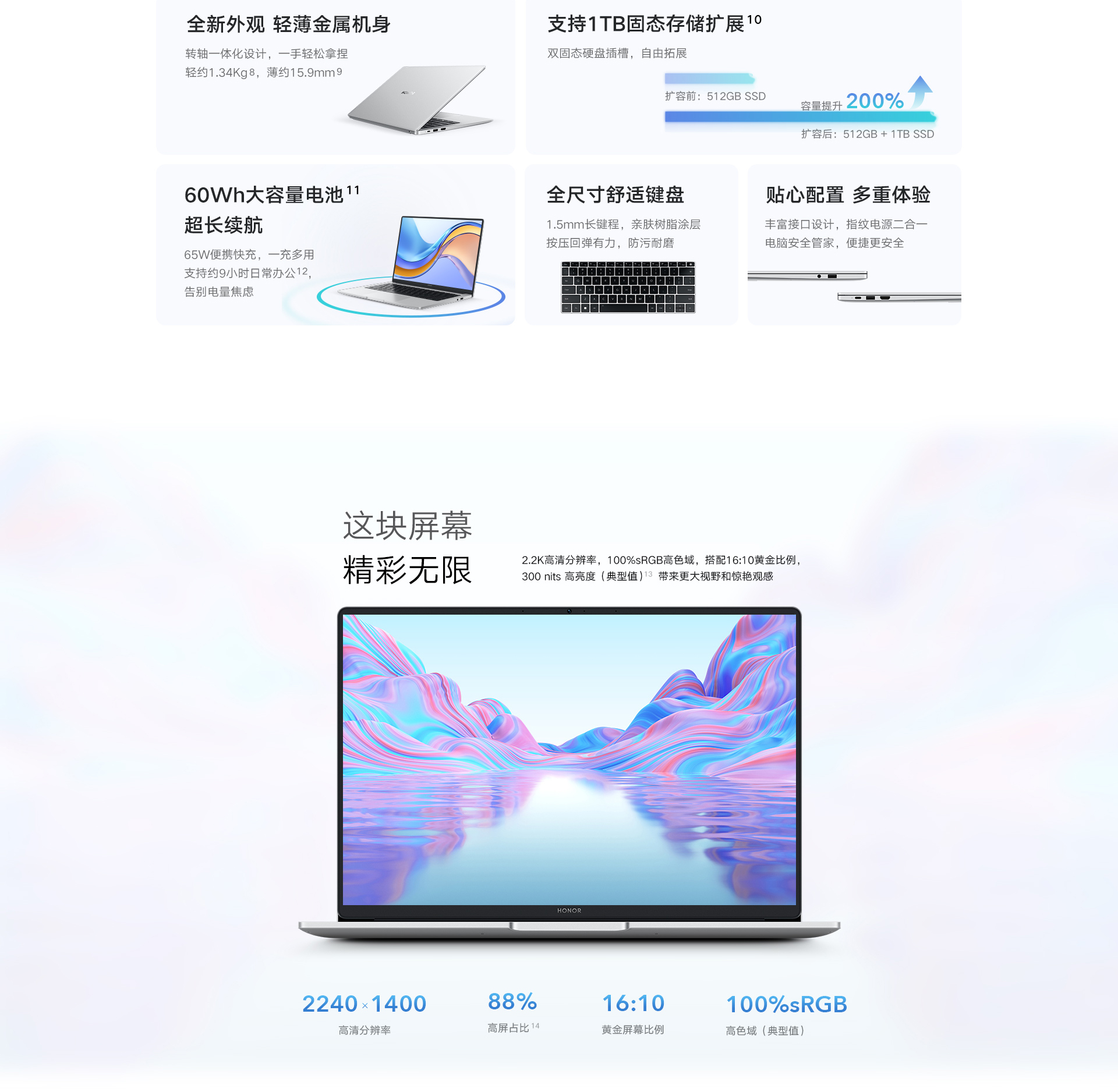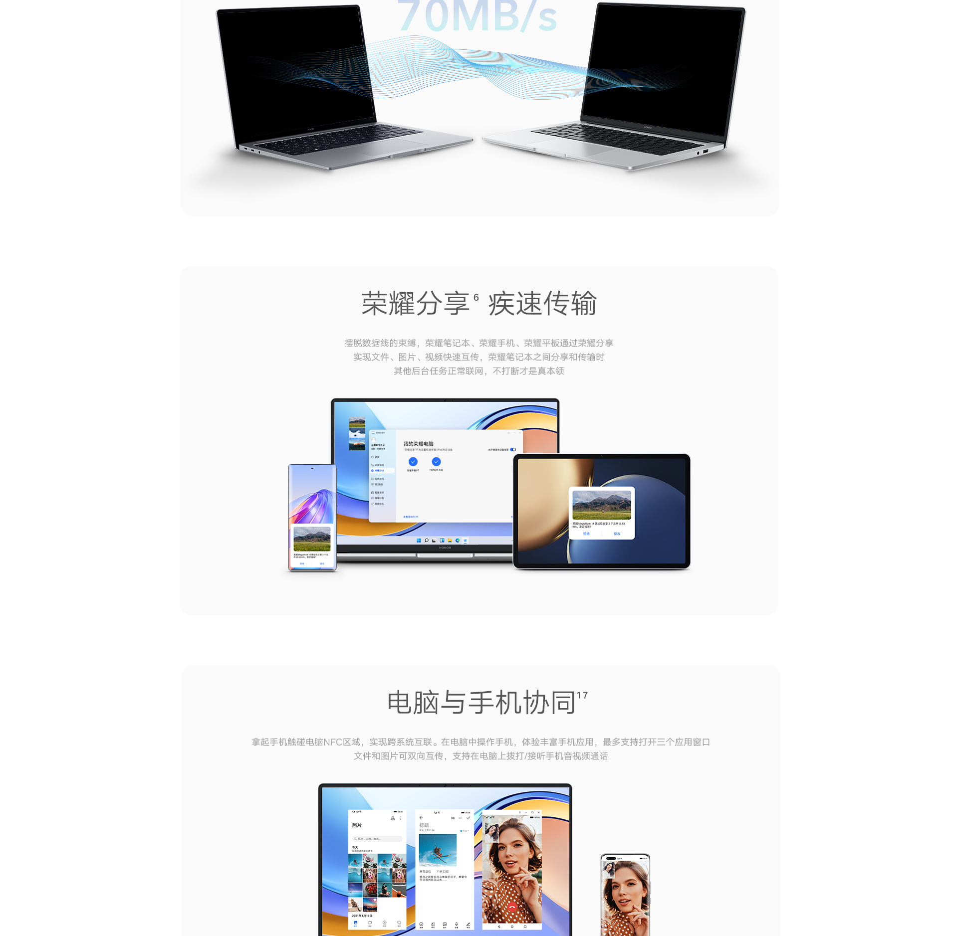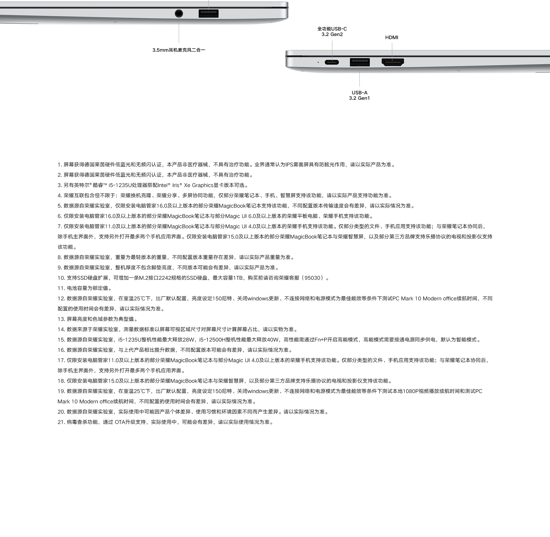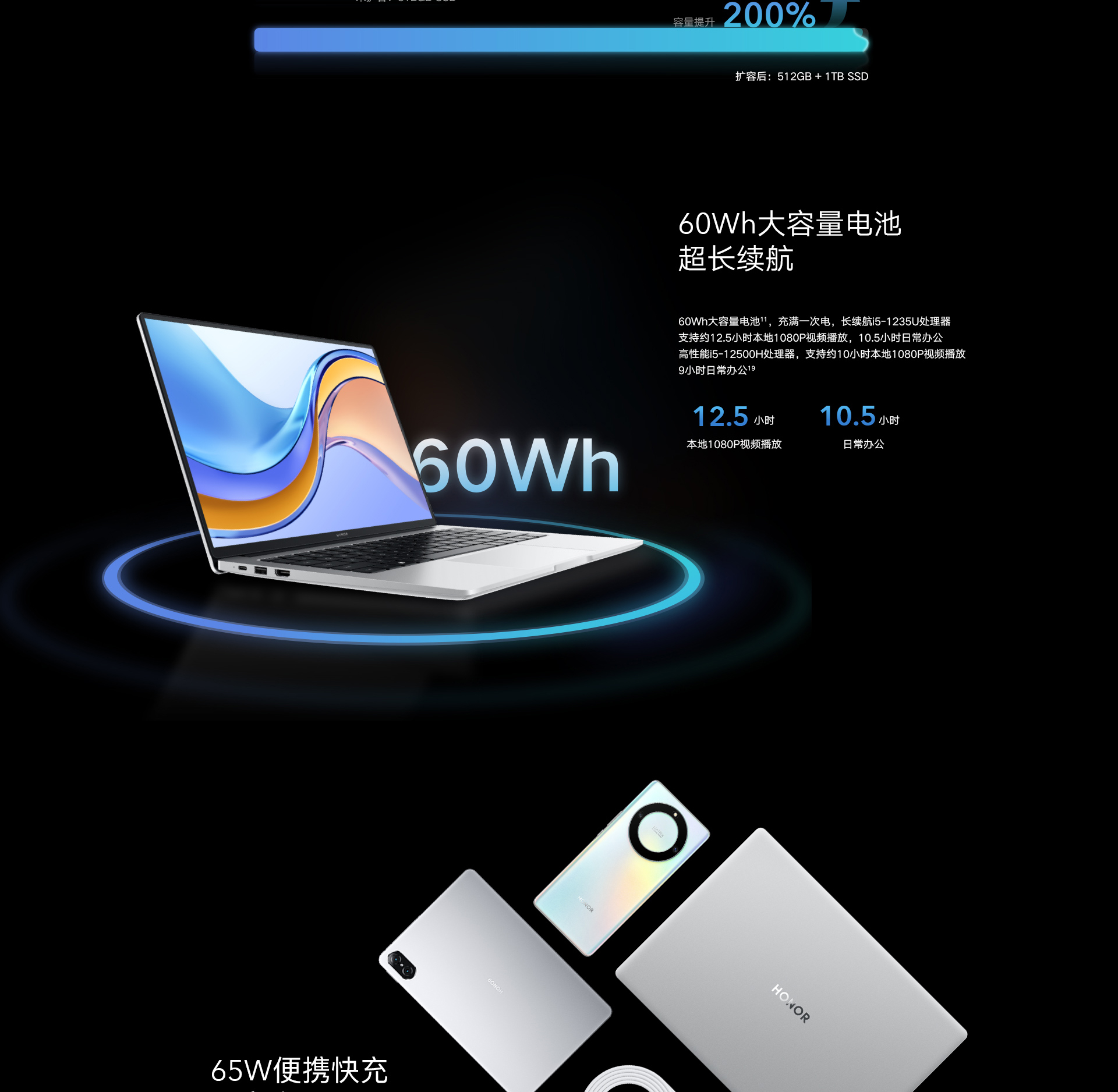 *以上页面中的数据为理论值,均来自荣耀内部实验室,于特定测试环境下所得(请见各项具体说明),实际使用中可能因产品个体差异、软件版本、使用条件和环境因素不同略有不同,请以实际使用的情况为准。