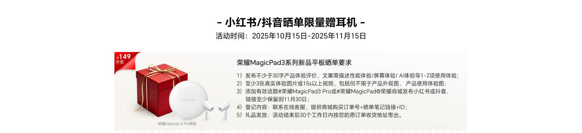 *为提供尽可能准确的产品信息、规格参数、产品特性,荣耀可能实时调整和修订以上页面中的文字表述、图片效果等内容,以求与实际产品性能、规格、指数、零部件等信息相匹配,由于产品批次和生产供应因素实时变化,如遇确有进行上述修改和调整必要的情形,恕不专门通知。