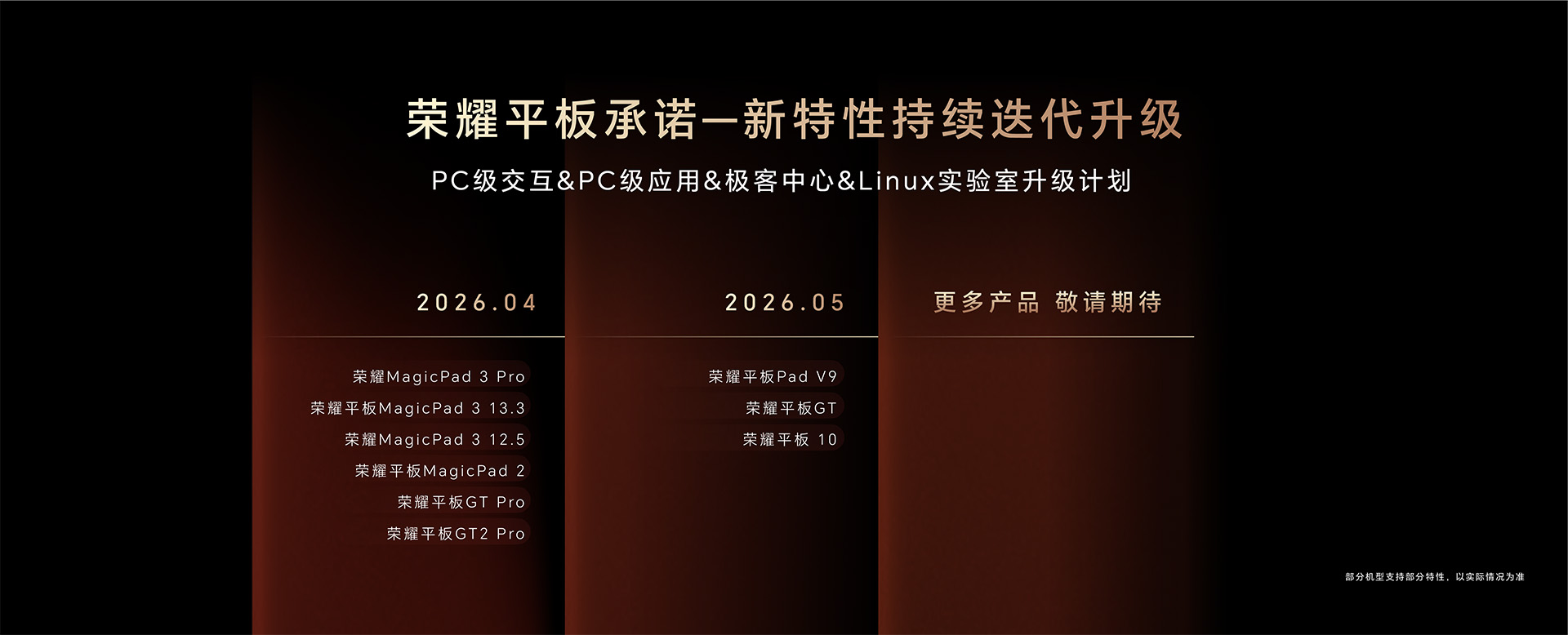 *为提供尽可能准确的产品信息、规格参数、产品特性,荣耀可能实时调整和修订以上页面中的文字表述、图片效果等内容,以求与实际产品性能、规格、指数、零部件等信息相匹配,由于产品批次和生产供应因素实时变化,如遇确有进行上述修改和调整必要的情形,恕不专门通知。