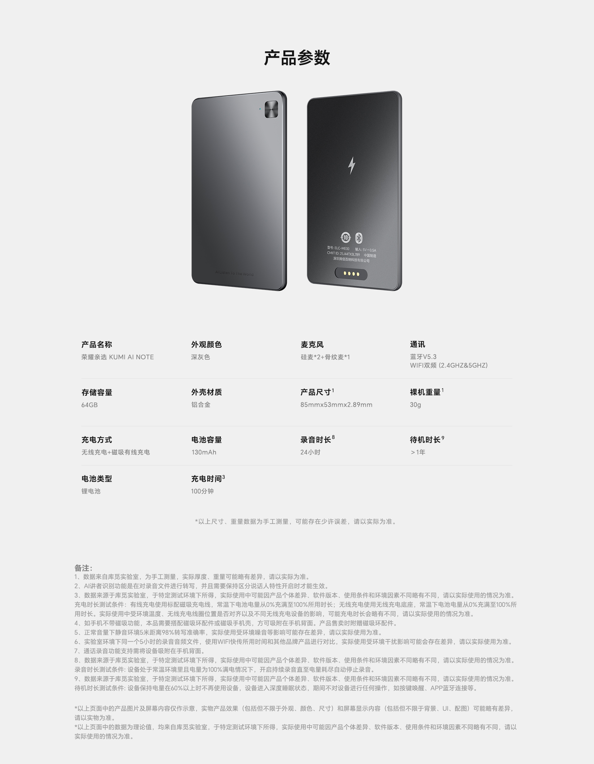 录音卡*1磁吸环*1充电线*1说明书*1