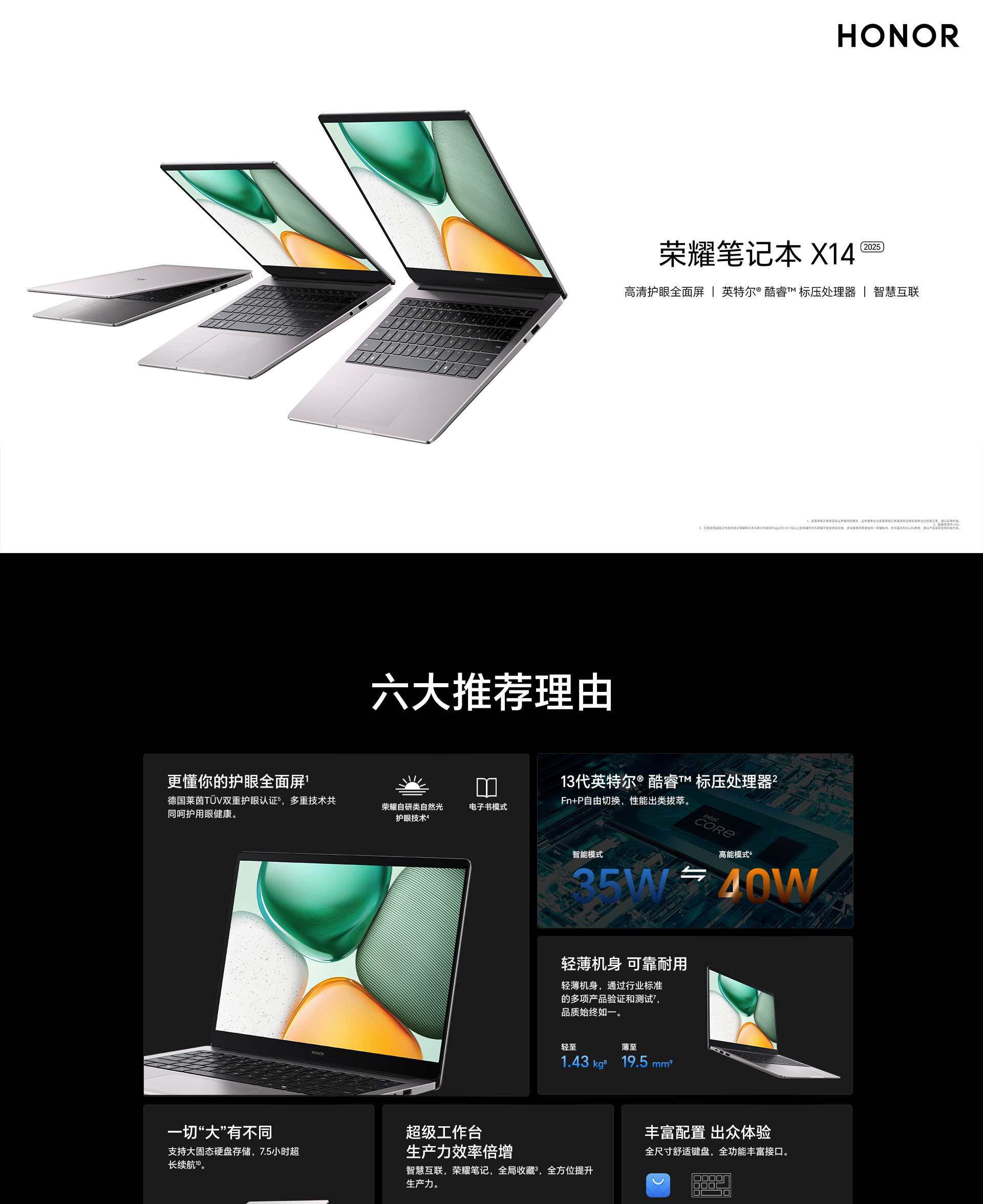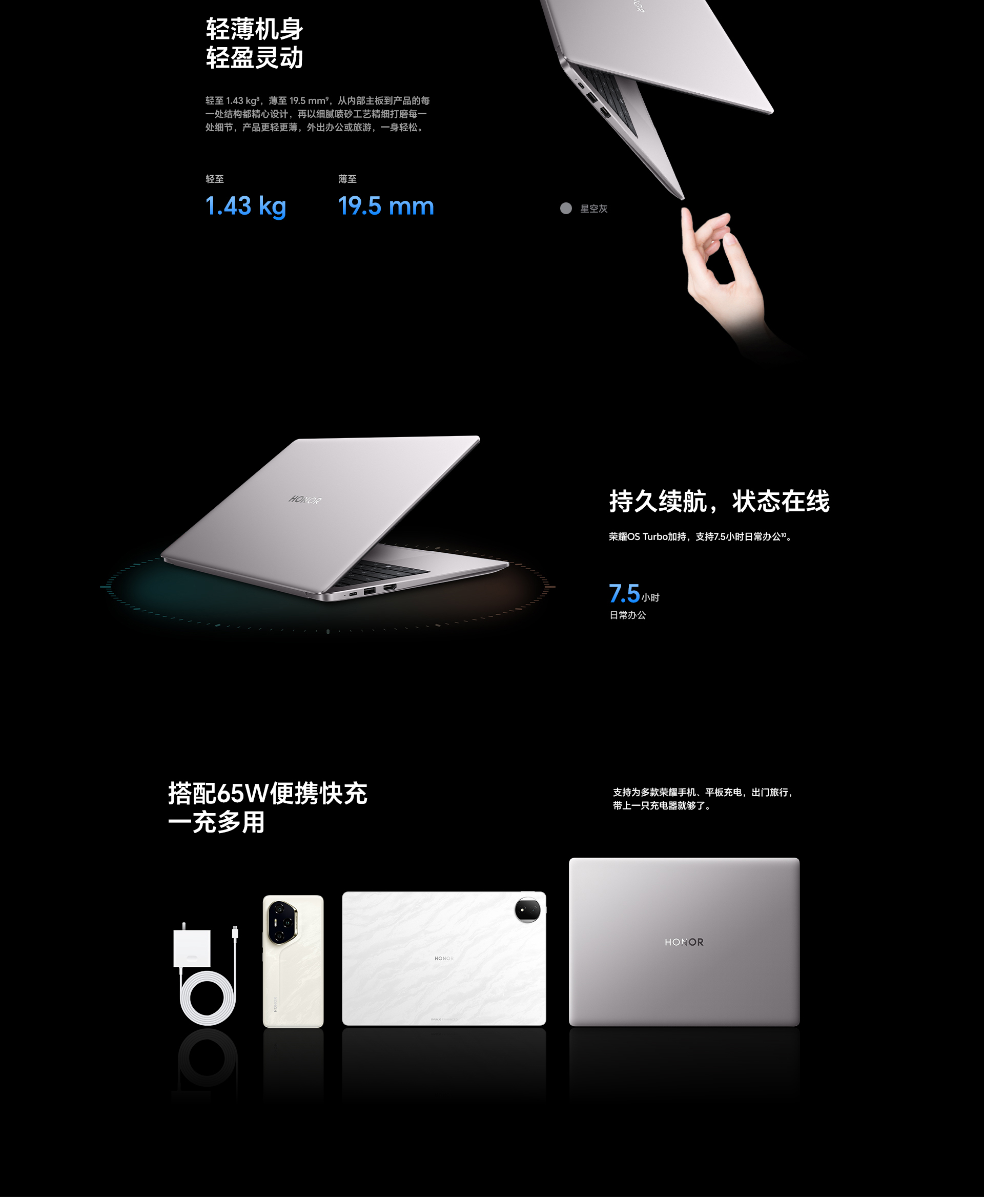 荣耀笔记本 X14 2025 战斗版 14英寸 i5 Windows 11 家庭中文版 16GB 512GB 星空灰