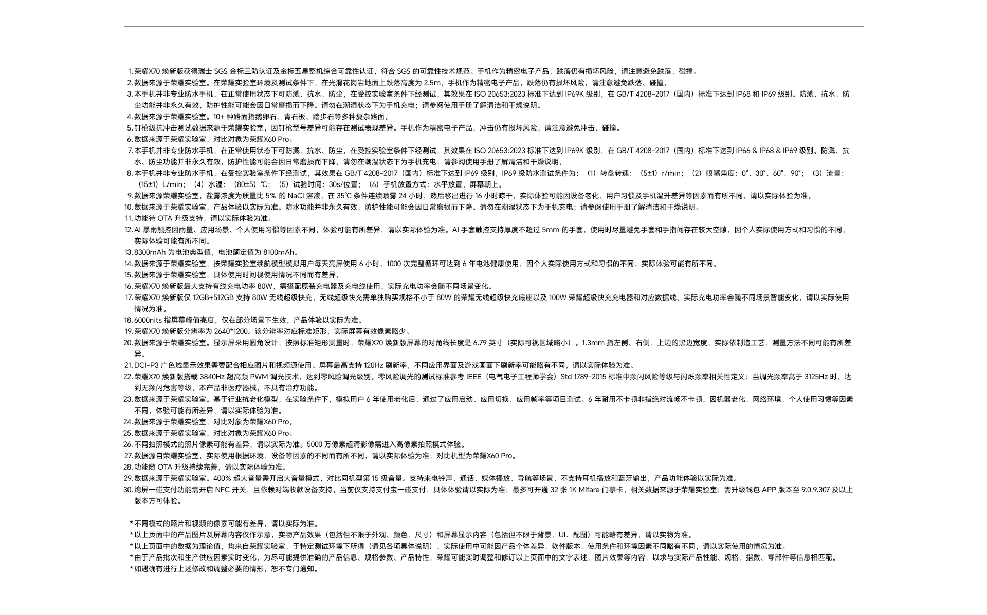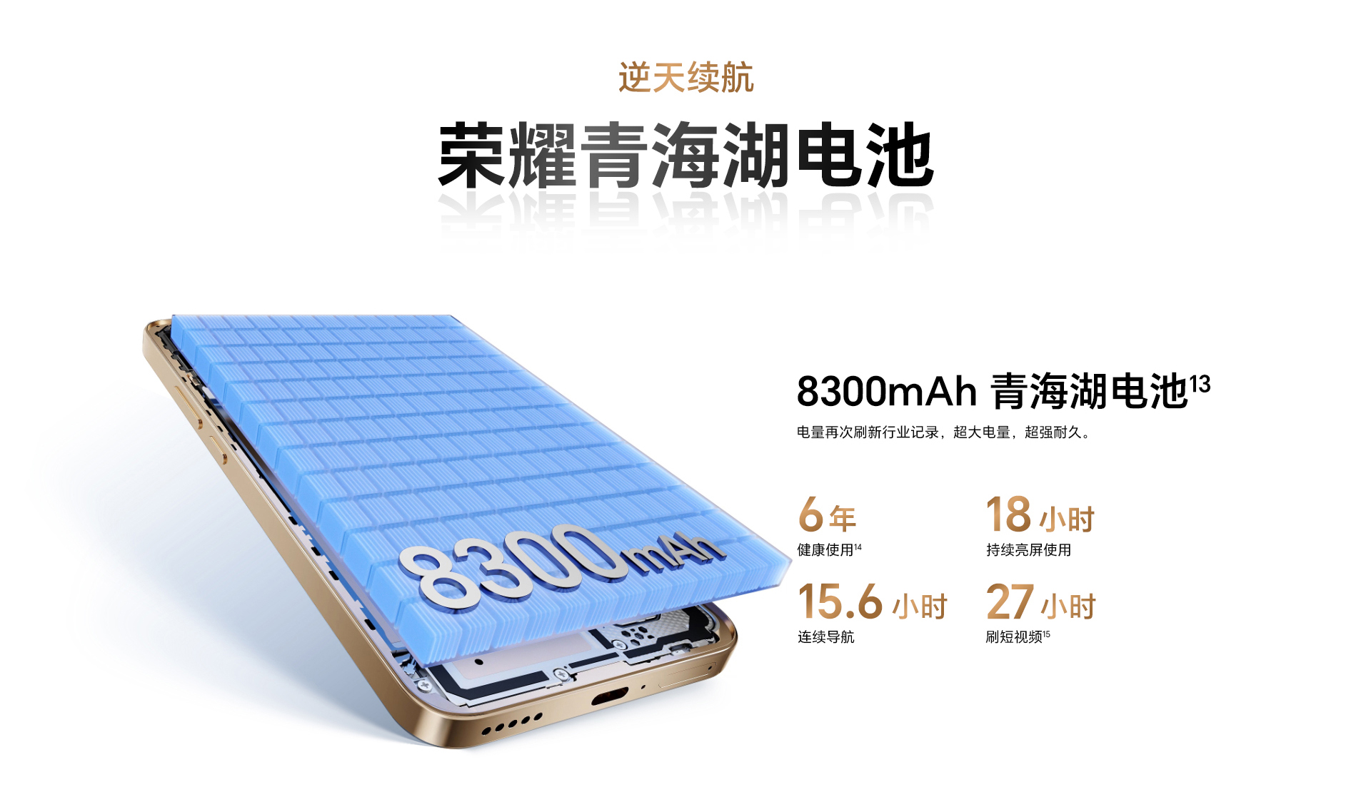 *以上页面中的数据为理论值,均来自荣耀内部实验室,于特定测试环境下所得(请见各项具体说明),实际使用中可能因产品个体差异、软件版本、使用条件和环境因素不同略有不同,请以实际使用的情况为准。