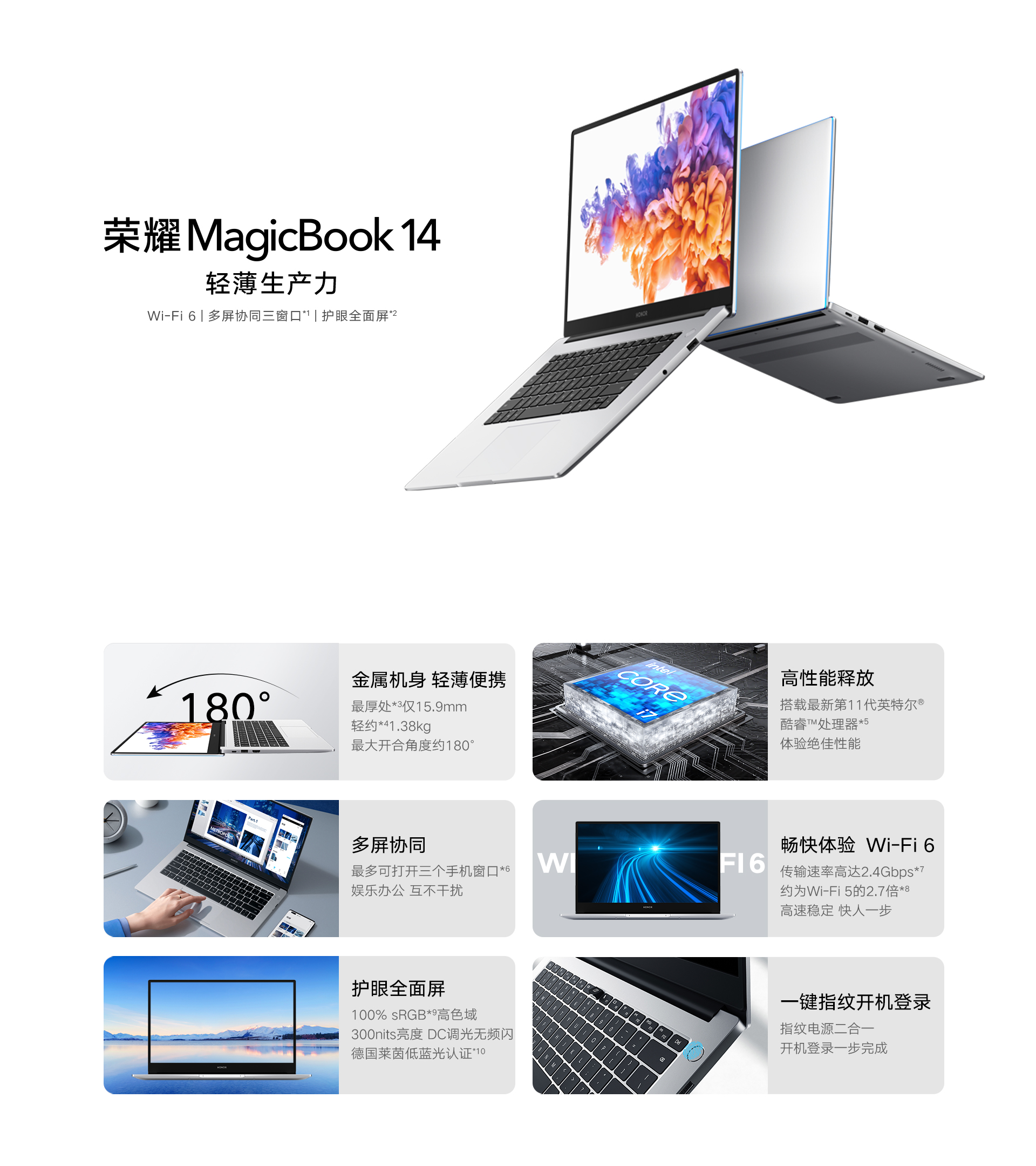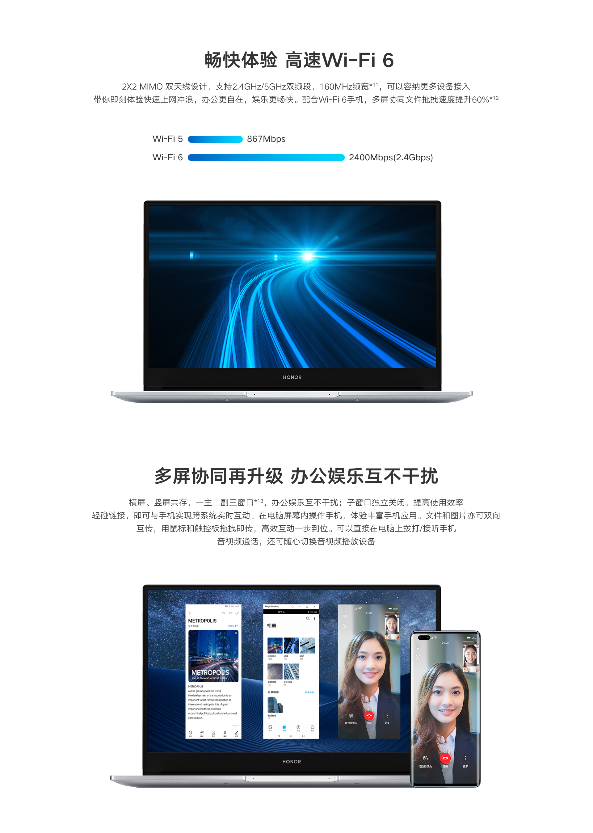 *以上页面中的数据为理论值,均来自荣耀内部实验室,于特定测试环境下所得(请见各项具体说明),实际使用中可能因产品个体差异、软件版本、使用条件和环境因素不同略有不同,请以实际使用的情况为准。