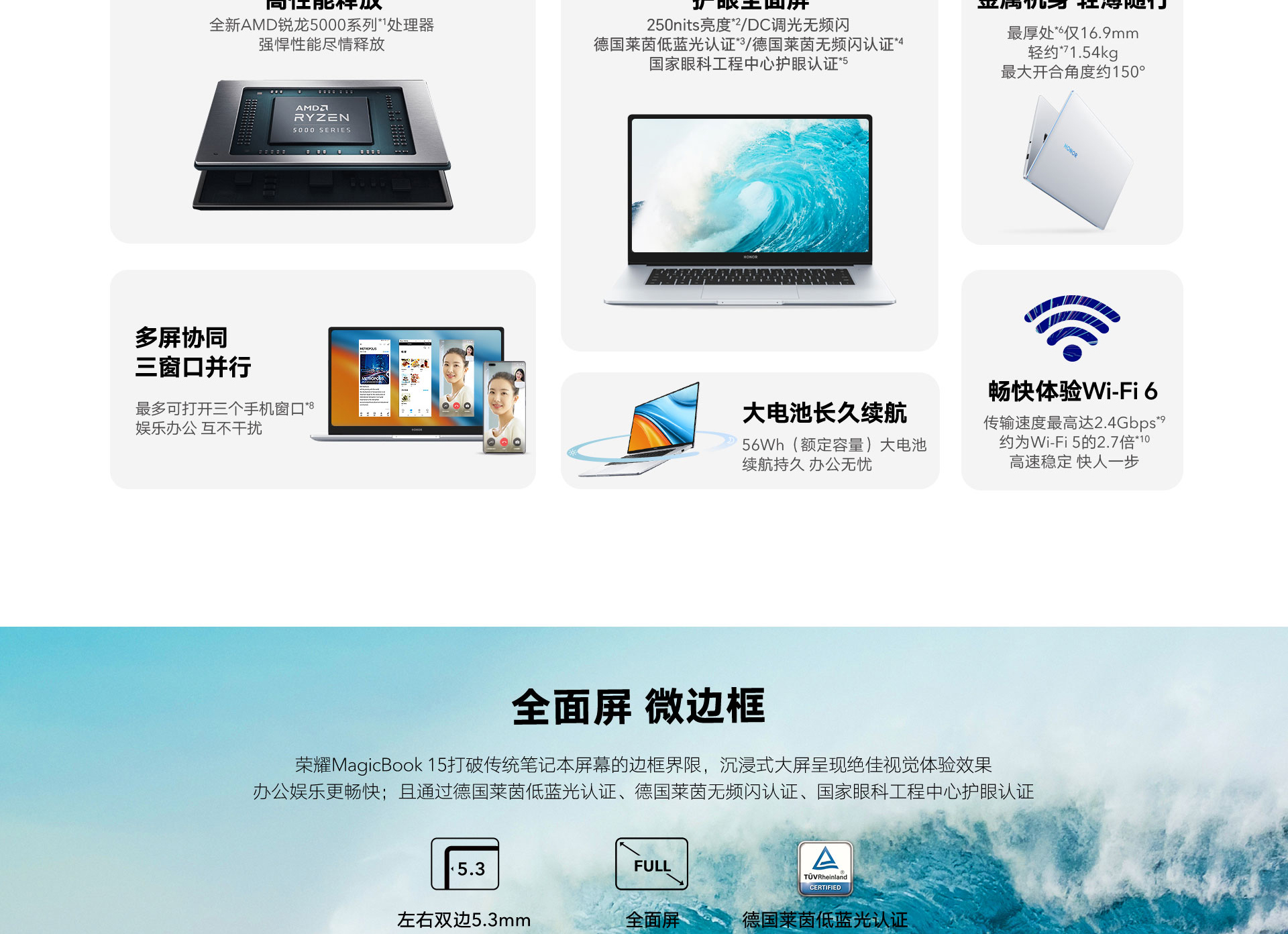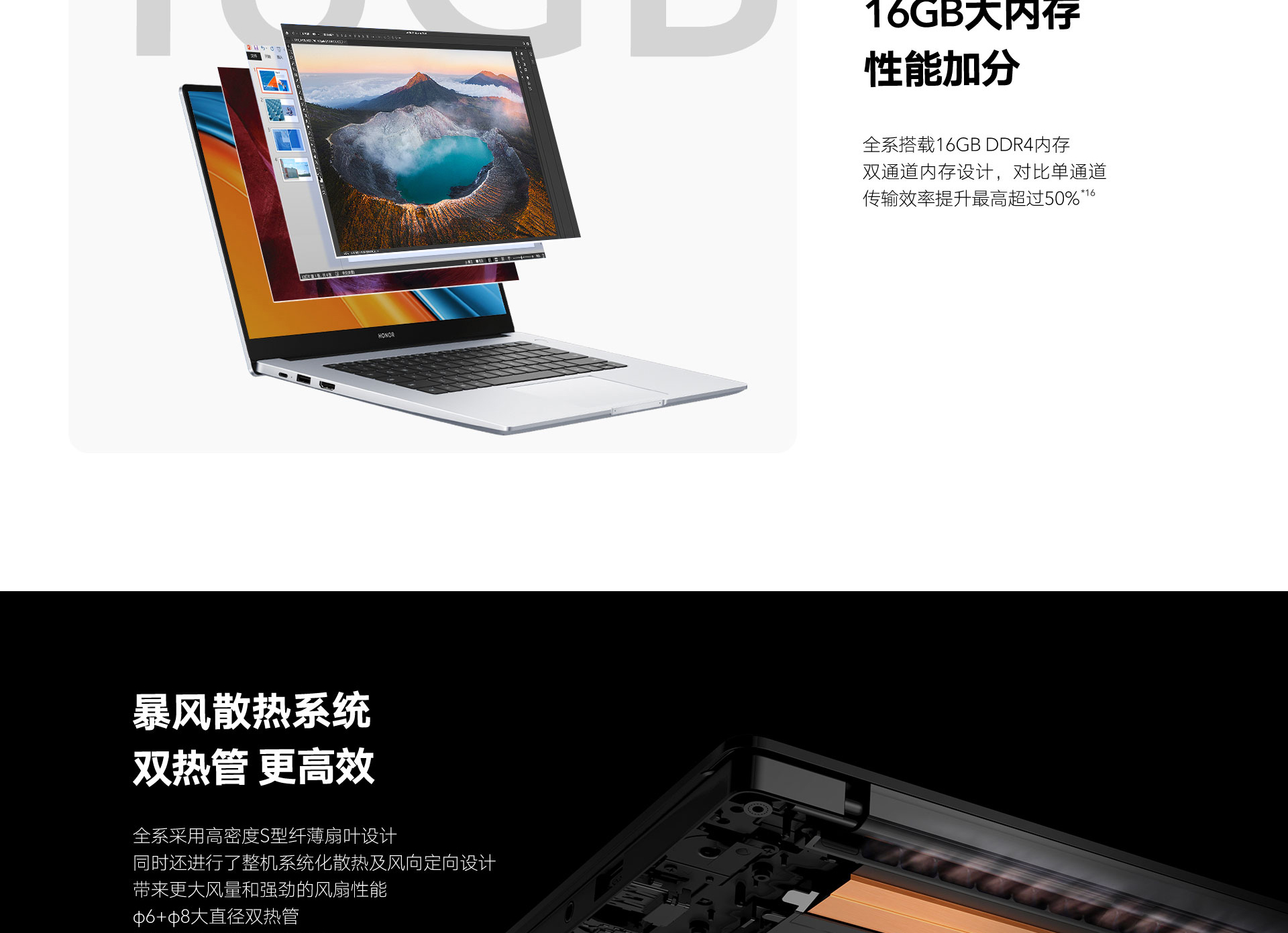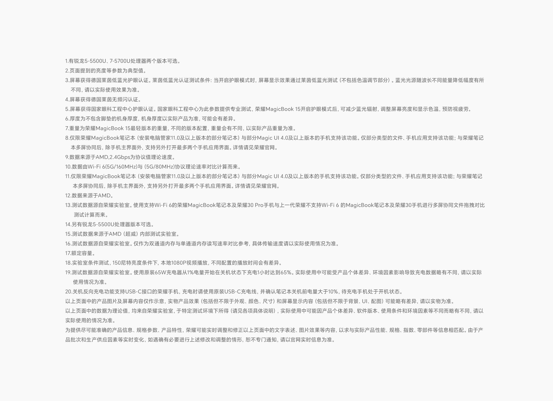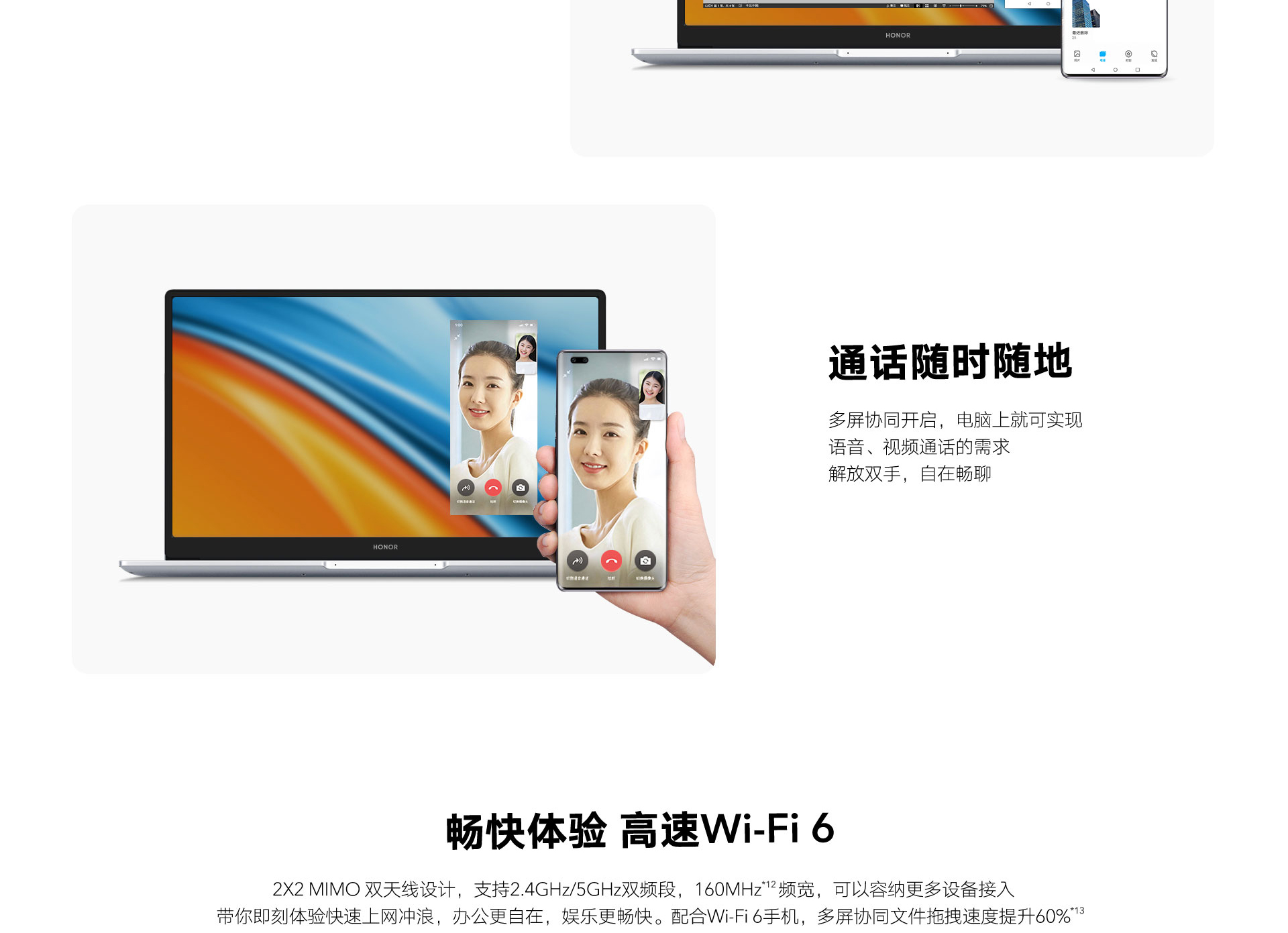 *以上页面中的数据为理论值,均来自荣耀内部实验室,于特定测试环境下所得(请见各项具体说明),实际使用中可能因产品个体差异、软件版本、使用条件和环境因素不同略有不同,请以实际使用的情况为准。