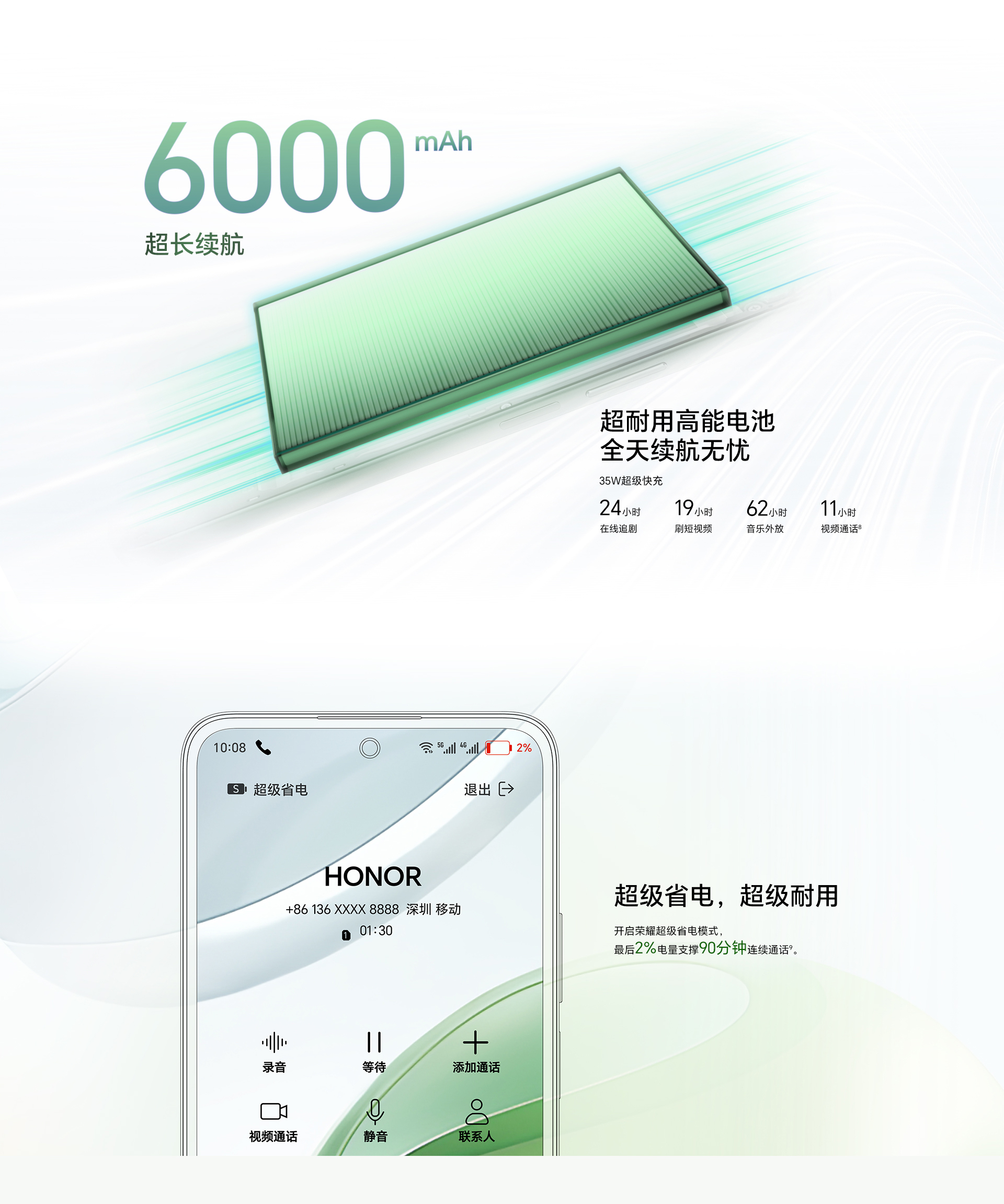 *以上页面中的数据为理论值,均来自荣耀内部实验室,于特定测试环境下所得(请见各项具体说明),实际使用中可能因产品个体差异、软件版本、使用条件和环境因素不同略有不同,请以实际使用的情况为准。