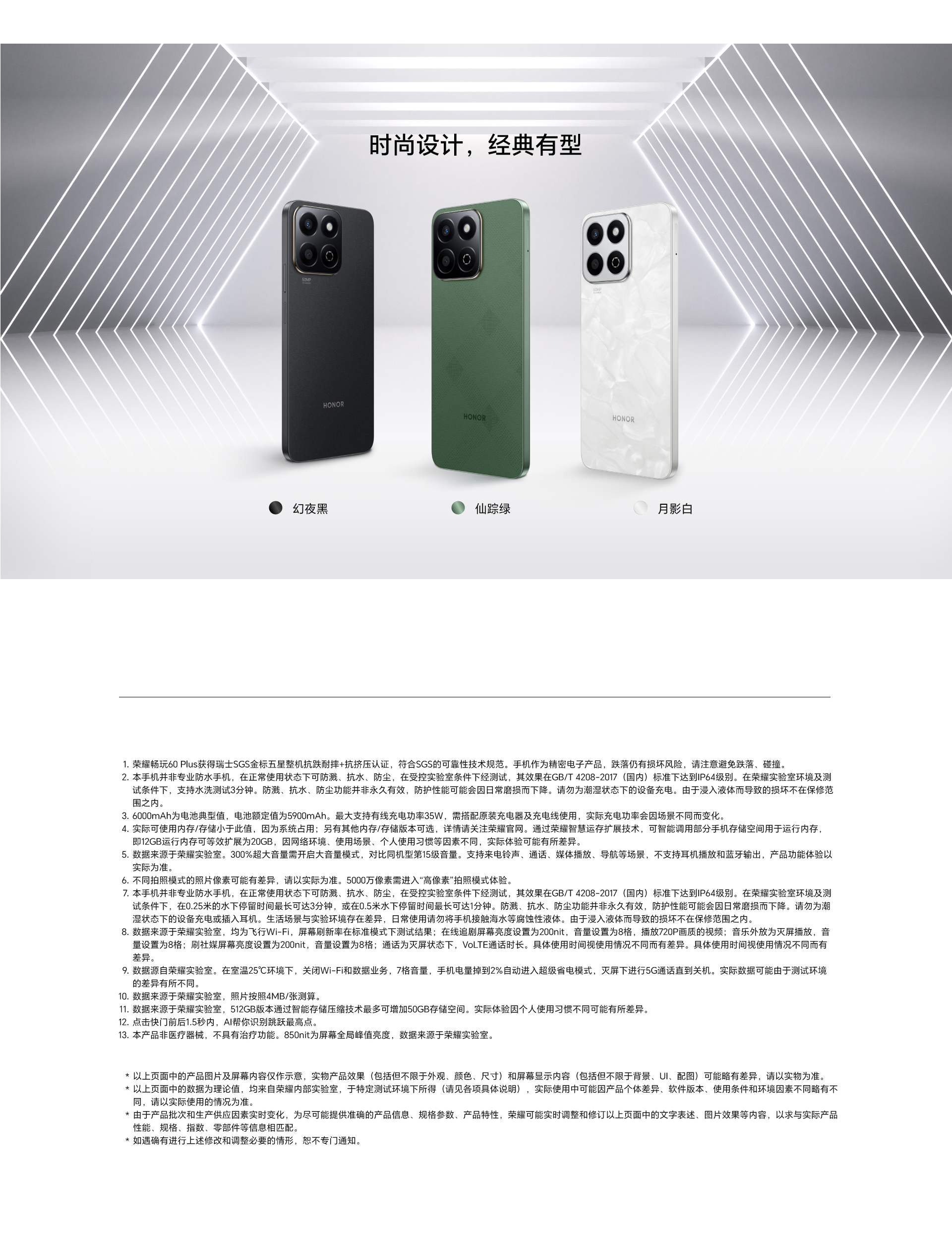 *为提供尽可能准确的产品信息、规格参数、产品特性,荣耀可能实时调整和修订以上页面中的文字表述、图片效果等内容,以求与实际产品性能、规格、指数、零部件等信息相匹配,由于产品批次和生产供应因素实时变化,如遇确有进行上述修改和调整必要的情形,恕不专门通知。