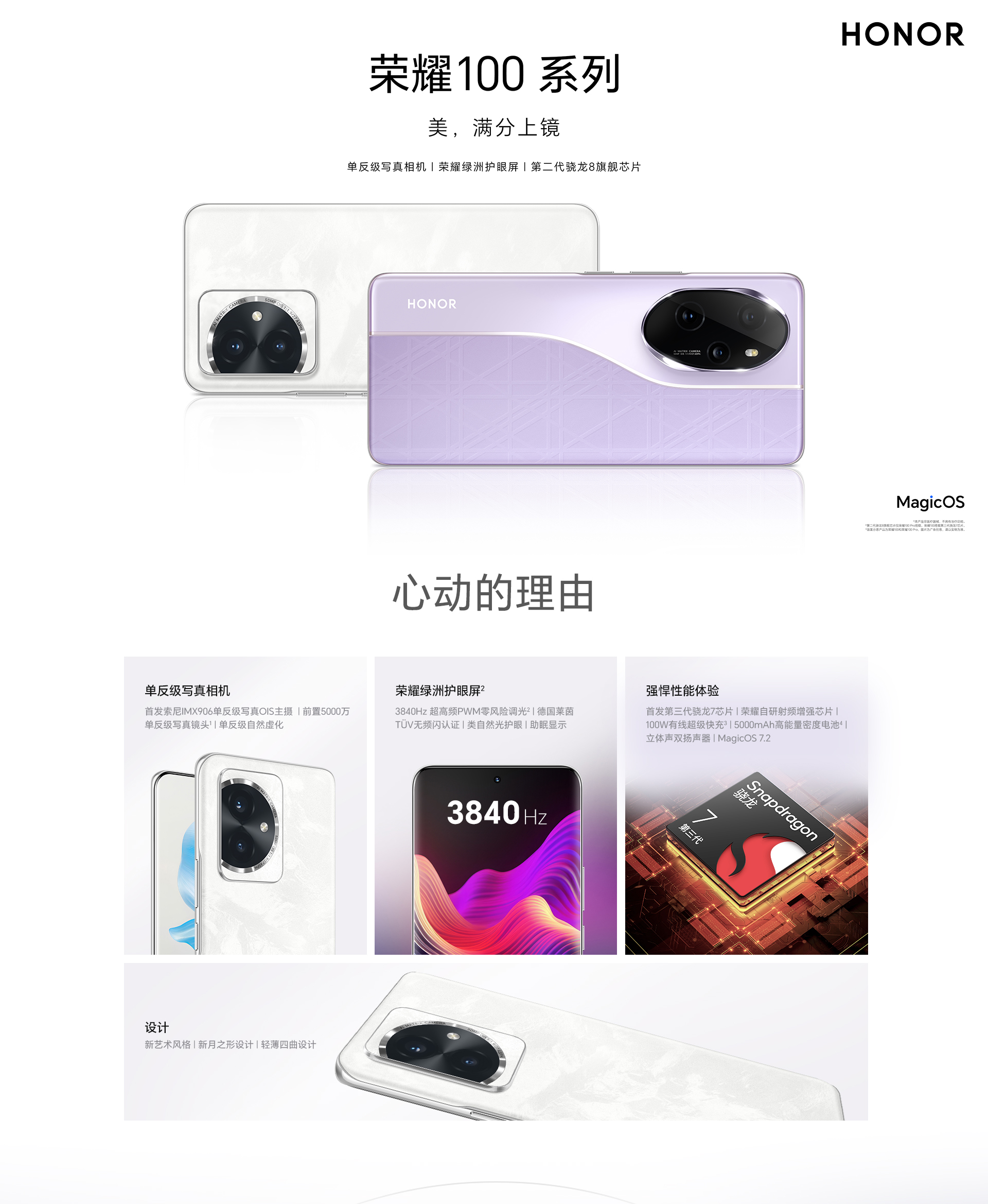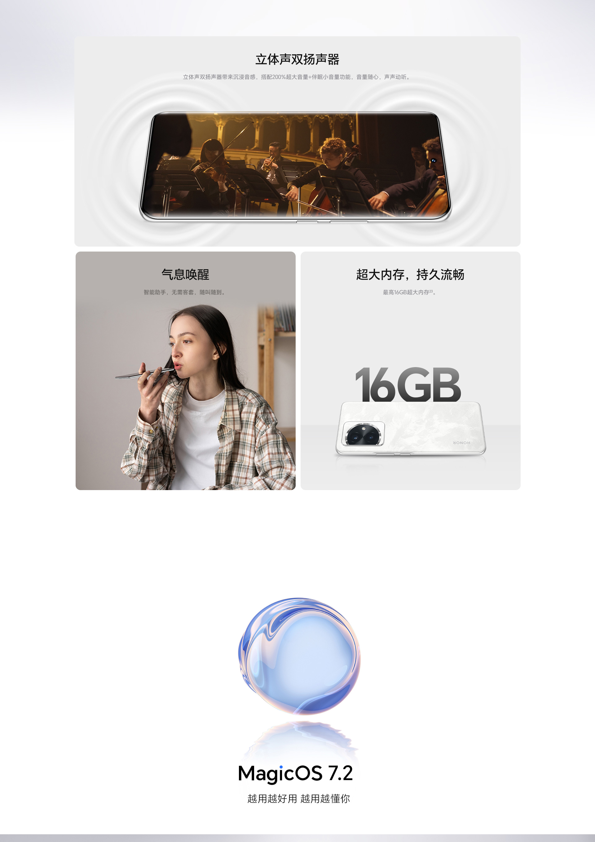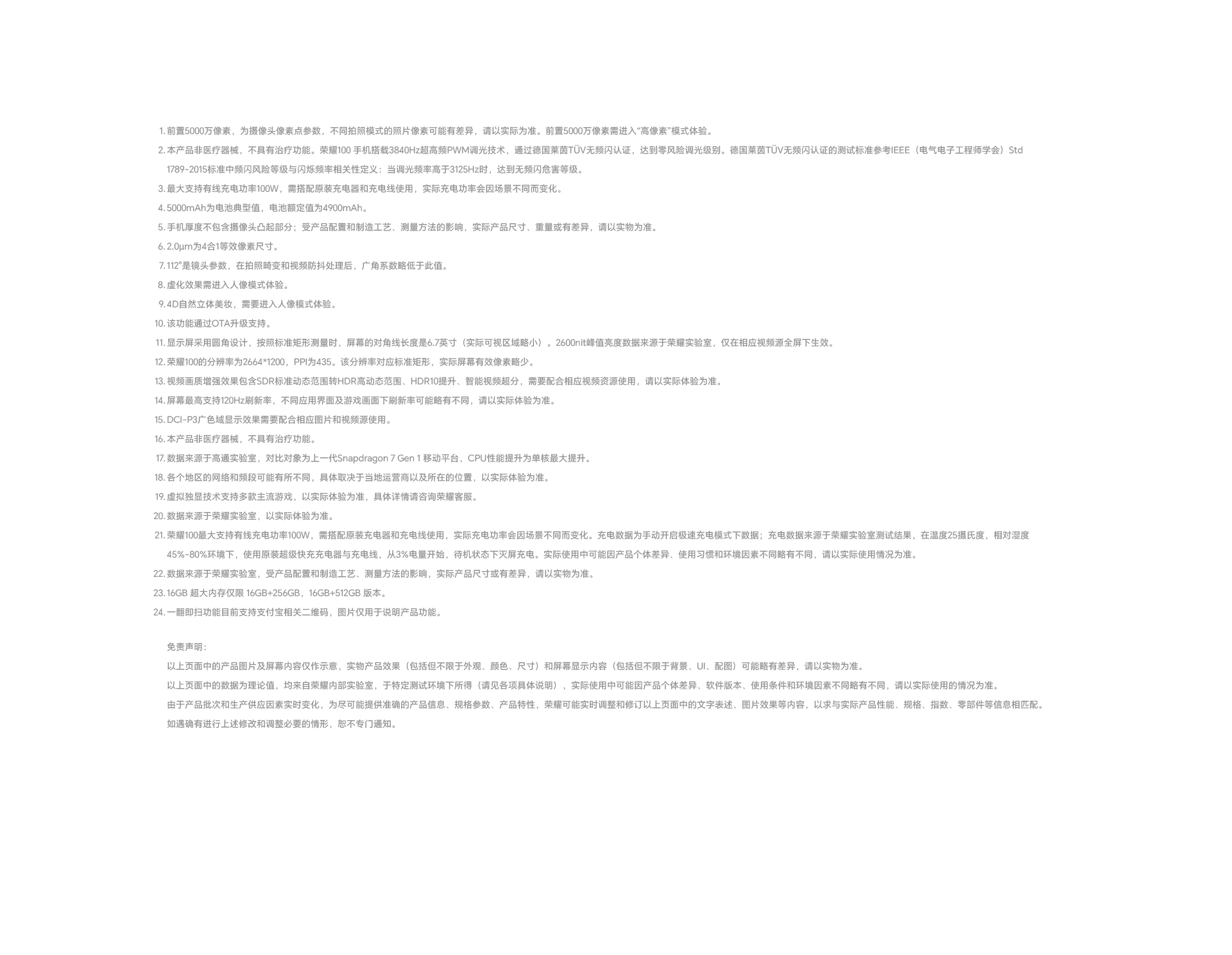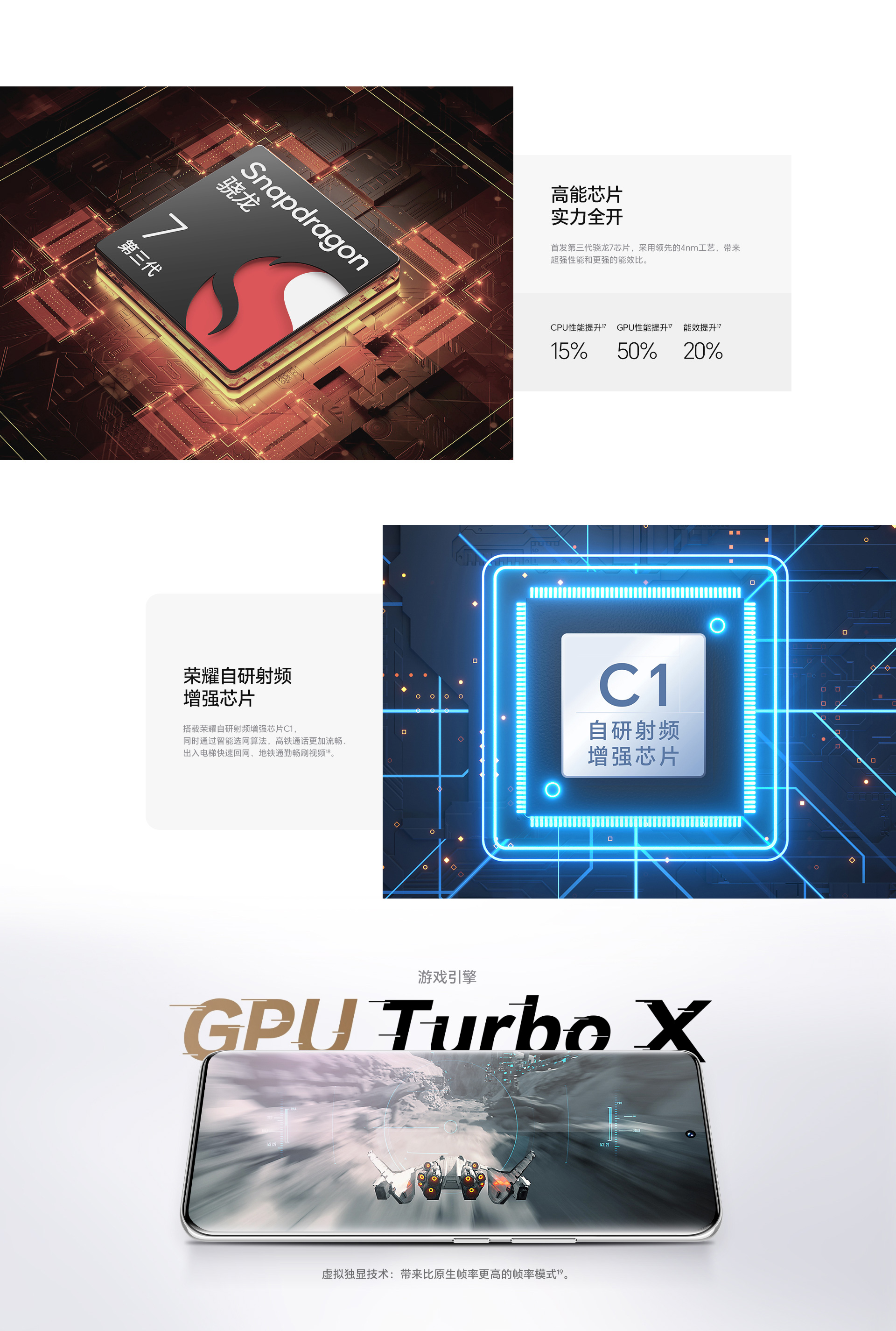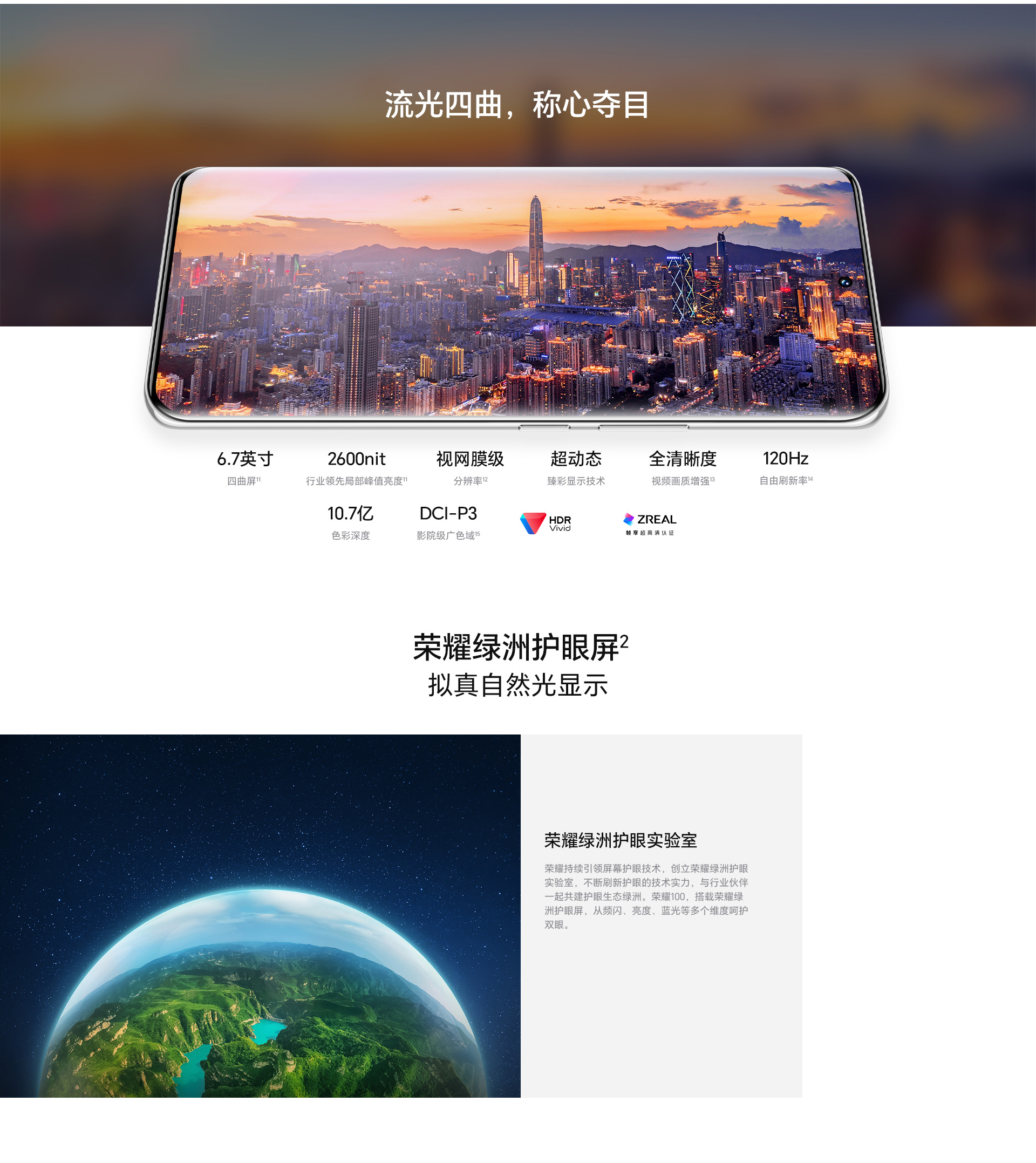 *以上页面中的数据为理论值,均来自荣耀内部实验室,于特定测试环境下所得(请见各项具体说明),实际使用中可能因产品个体差异、软件版本、使用条件和环境因素不同略有不同,请以实际使用的情况为准。