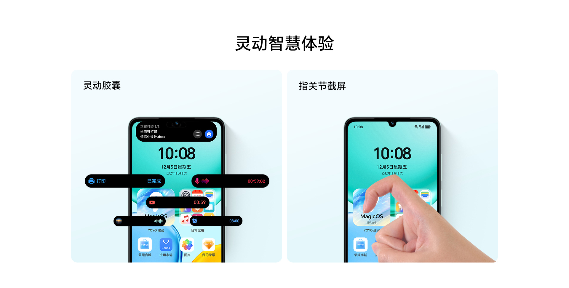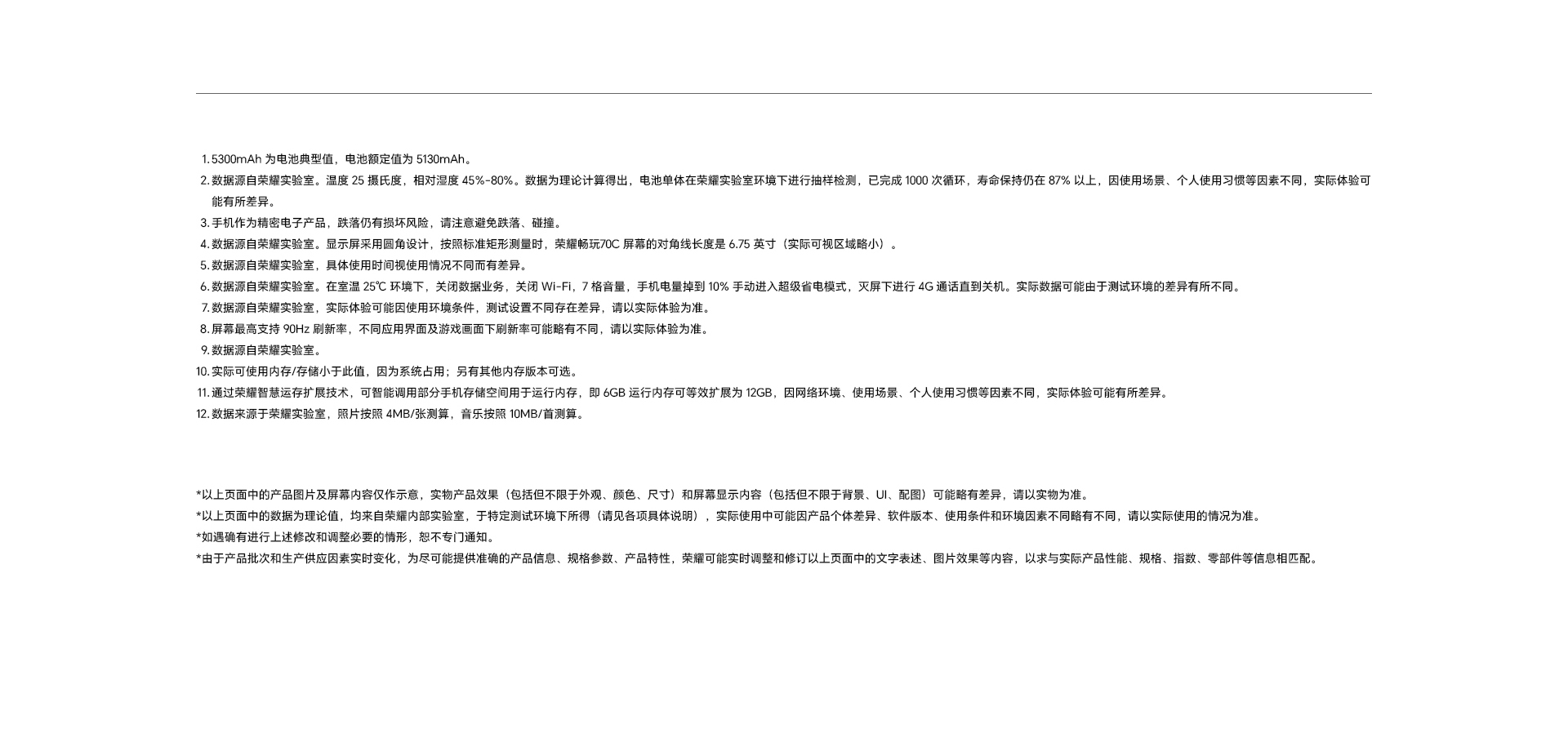 *以上页面中的数据为理论值,均来自荣耀内部实验室,于特定测试环境下所得(请见各项具体说明),实际使用中可能因产品个体差异、软件版本、使用条件和环境因素不同略有不同,请以实际使用的情况为准。