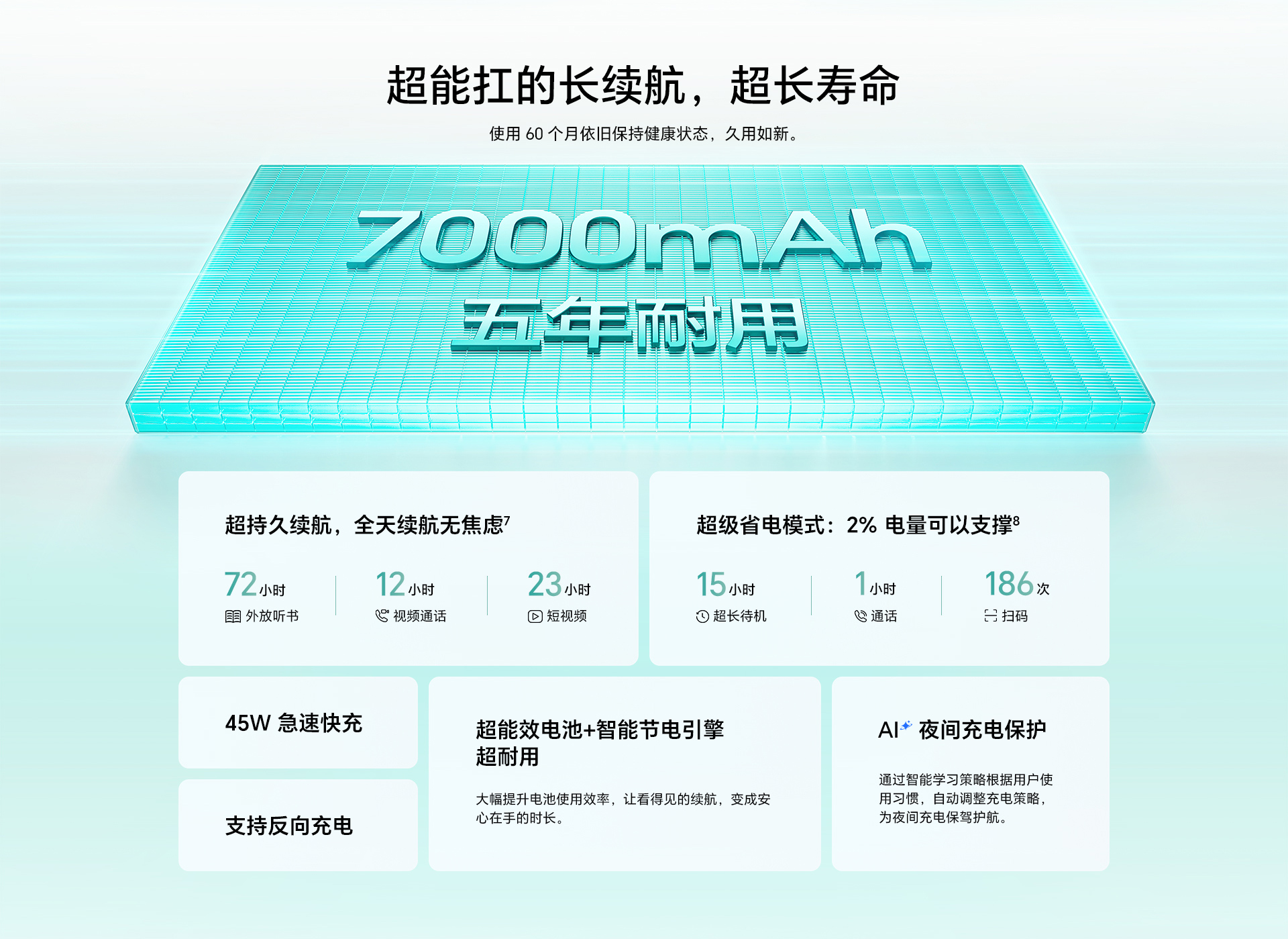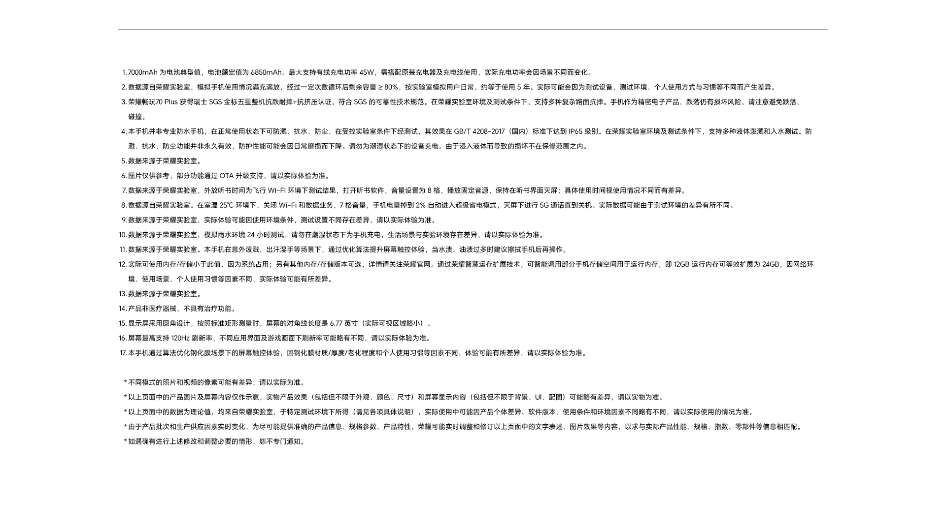 *以上页面中的数据为理论值,均来自荣耀内部实验室,于特定测试环境下所得(请见各项具体说明),实际使用中可能因产品个体差异、软件版本、使用条件和环境因素不同略有不同,请以实际使用的情况为准。