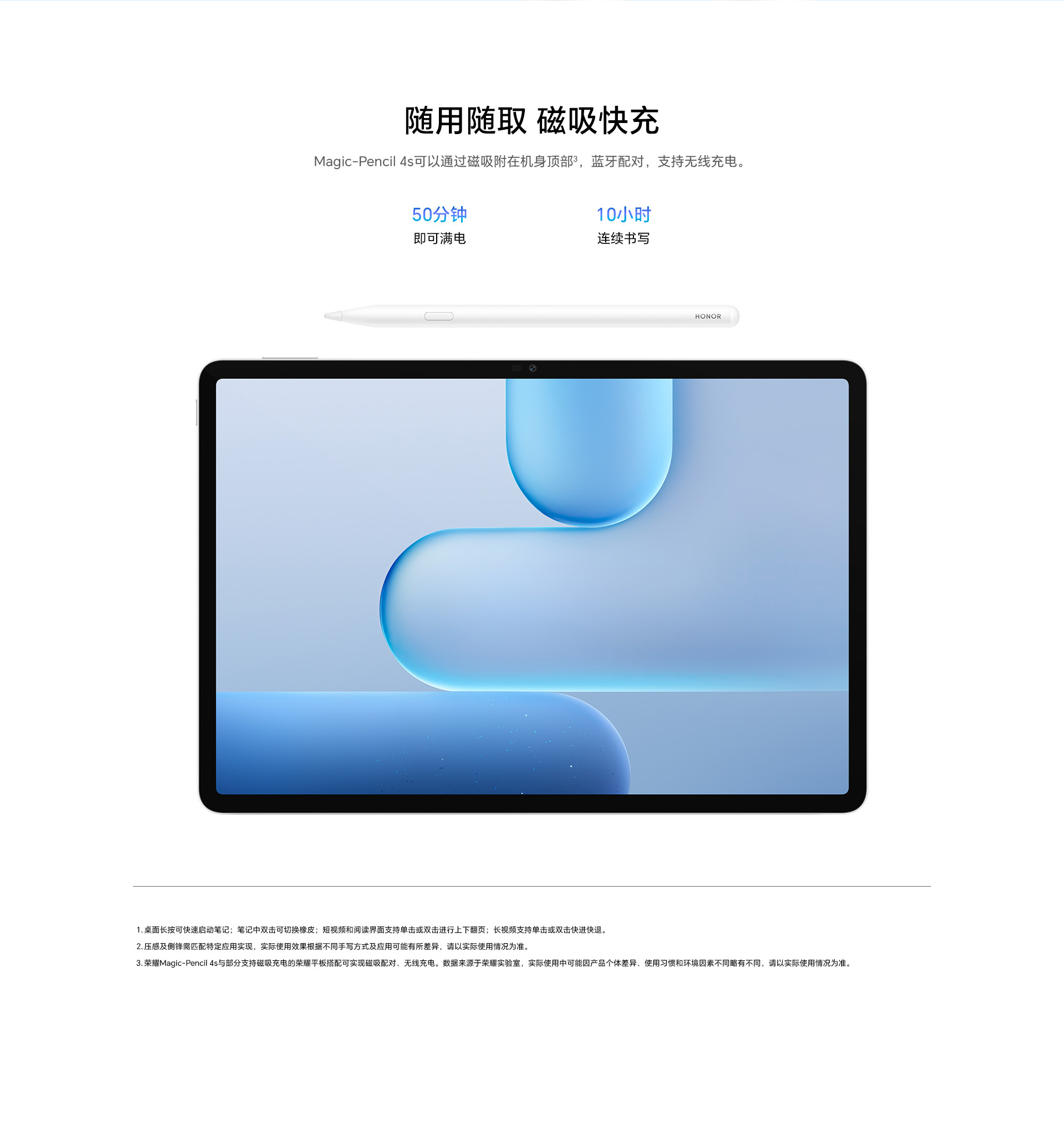 *以上页面中的数据为理论值,均来自荣耀内部实验室,于特定测试环境下所得(请见各项具体说明),实际使用中可能因产品个体差异、软件版本、使用条件和环境因素不同略有不同,请以实际使用的情况为准。