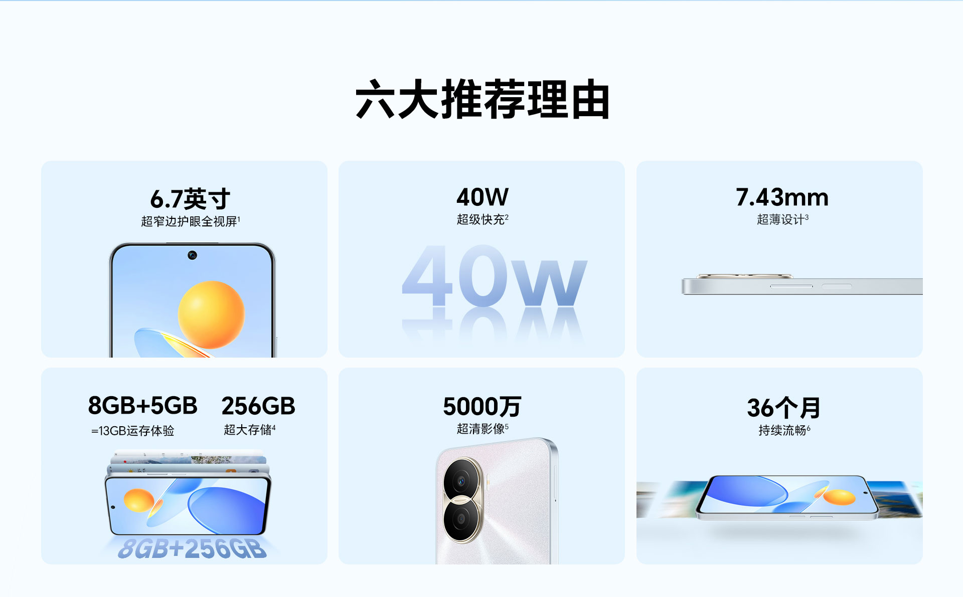 *以上页面中的数据为理论值,均来自荣耀内部实验室,于特定测试环境下所得(请见各项具体说明),实际使用中可能因产品个体差异、软件版本、使用条件和环境因素不同略有不同,请以实际使用的情况为准。