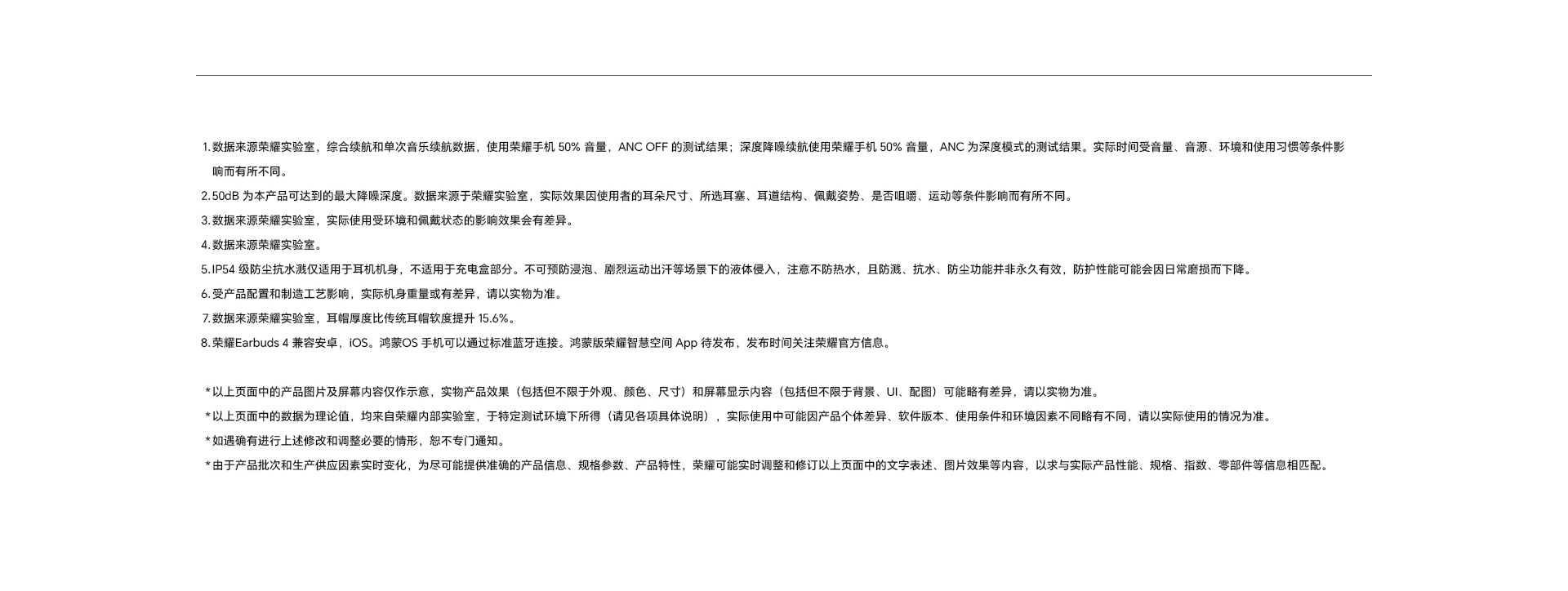 *为提供尽可能准确的产品信息、规格参数、产品特性,荣耀可能实时调整和修订以上页面中的文字表述、图片效果等内容,以求与实际产品性能、规格、指数、零部件等信息相匹配,由于产品批次和生产供应因素实时变化,如遇确有进行上述修改和调整必要的情形,恕不专门通知。
