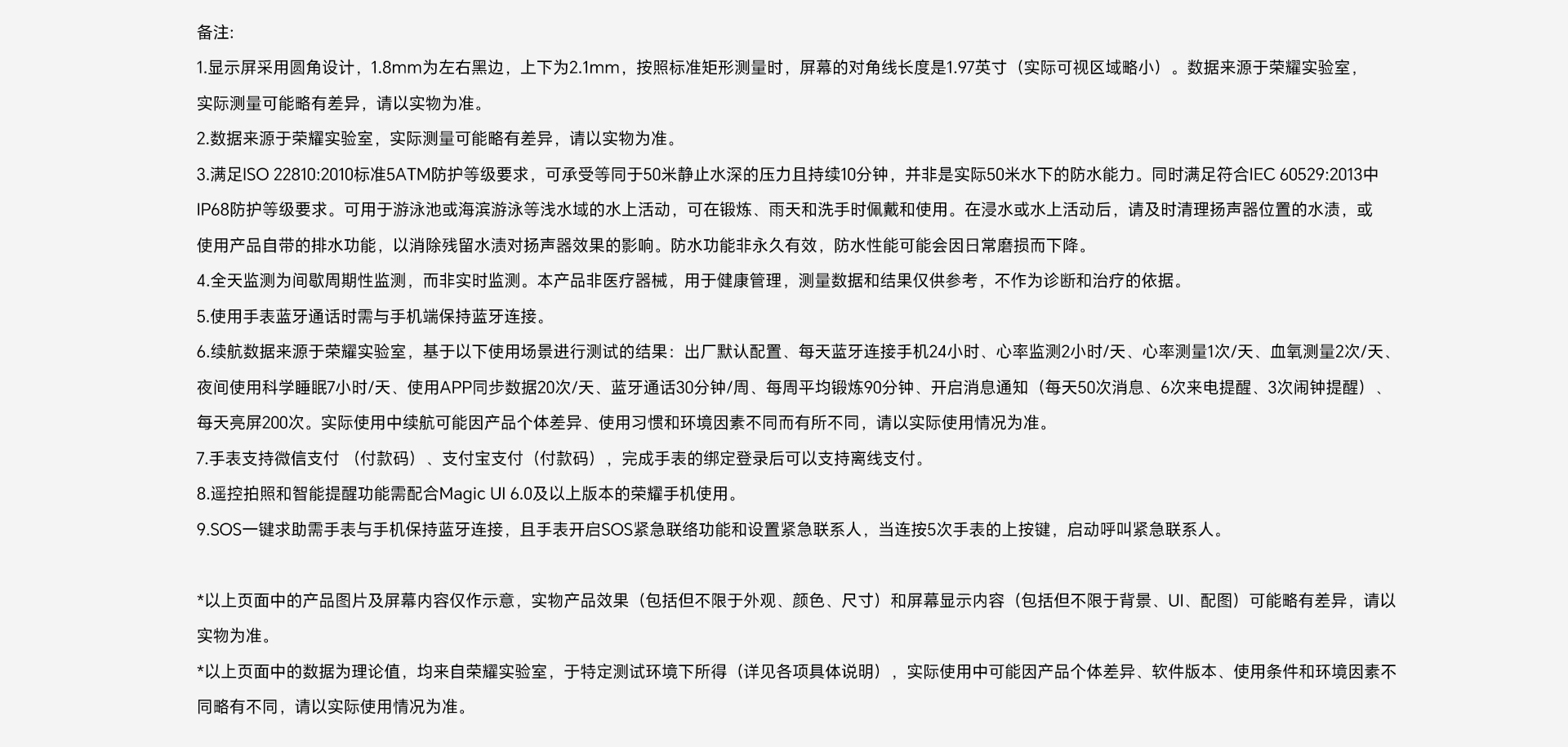 *以上页面中的数据为理论值,均来自荣耀内部实验室,于特定测试环境下所得(请见各项具体说明),实际使用中可能因产品个体差异、软件版本、使用条件和环境因素不同略有不同,请以实际使用的情况为准。