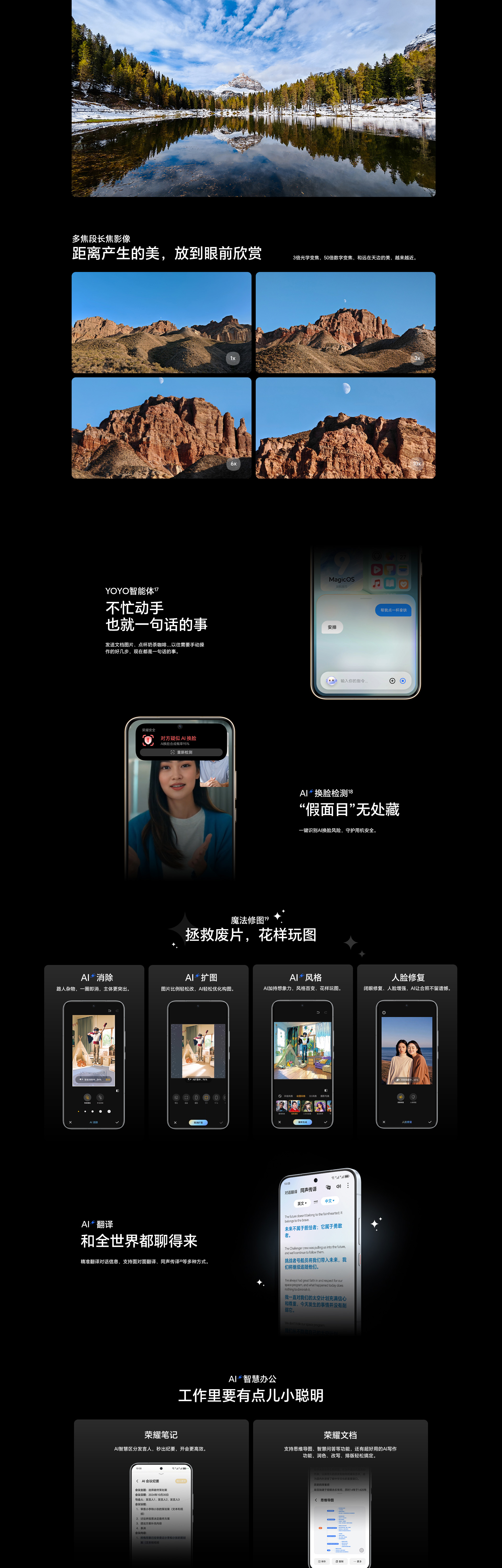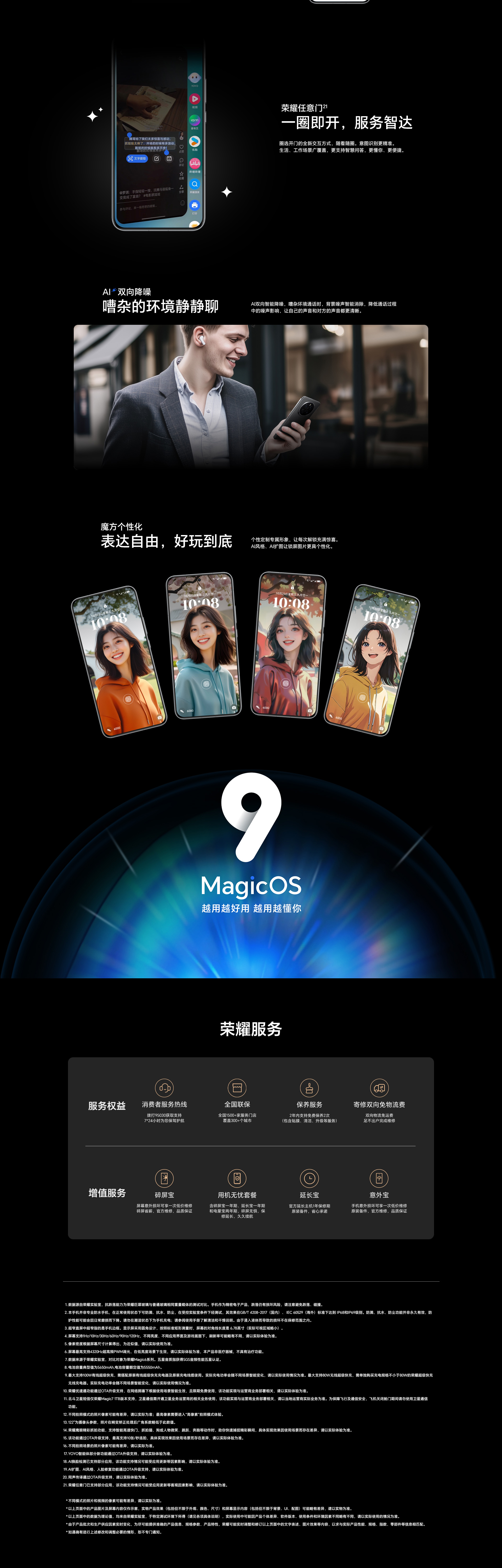 *为提供尽可能准确的产品信息、规格参数、产品特性,荣耀可能实时调整和修订以上页面中的文字表述、图片效果等内容,以求与实际产品性能、规格、指数、零部件等信息相匹配,由于产品批次和生产供应因素实时变化,如遇确有进行上述修改和调整必要的情形,恕不专门通知。