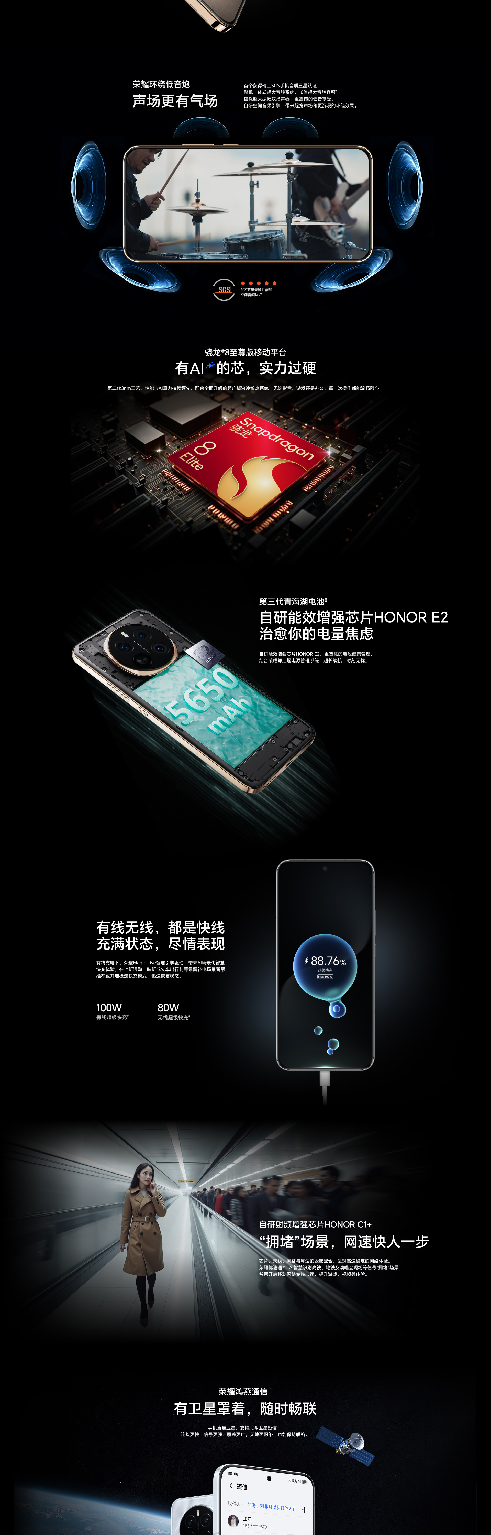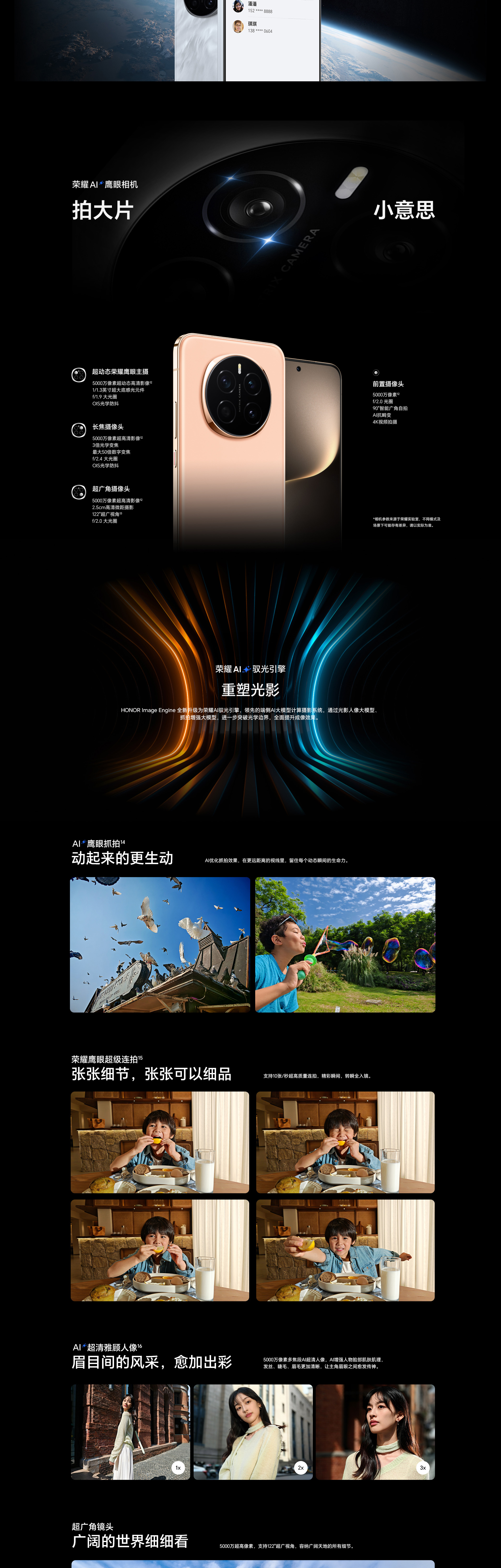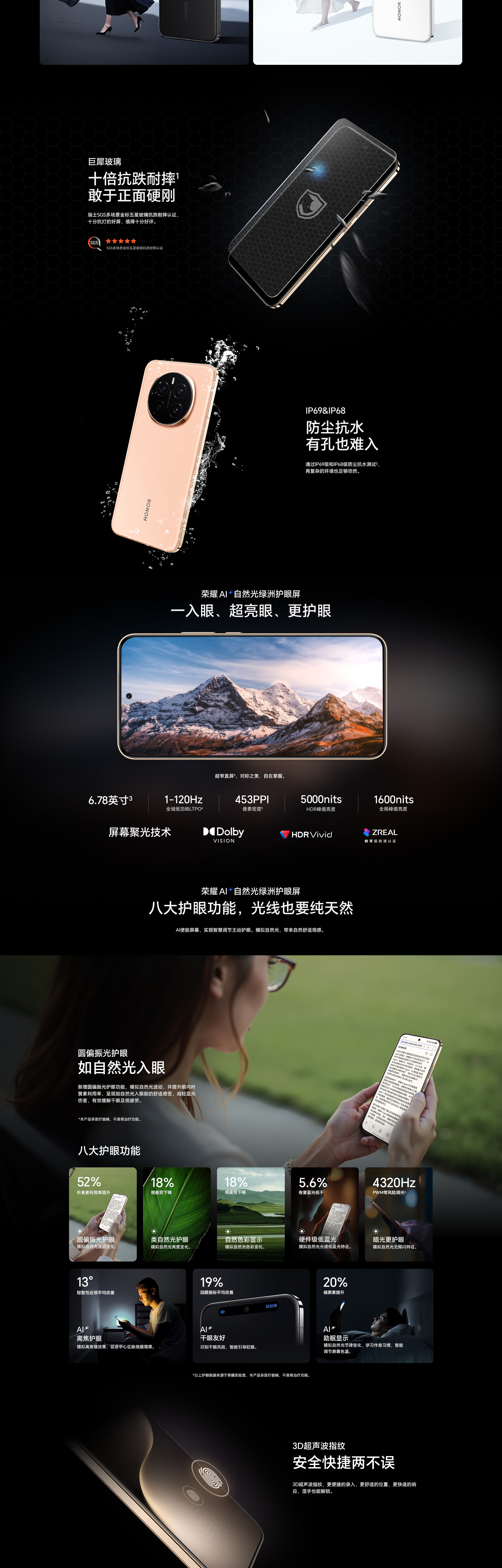 *以上页面中的数据为理论值,均来自荣耀内部实验室,于特定测试环境下所得(请见各项具体说明),实际使用中可能因产品个体差异、软件版本、使用条件和环境因素不同略有不同,请以实际使用的情况为准。