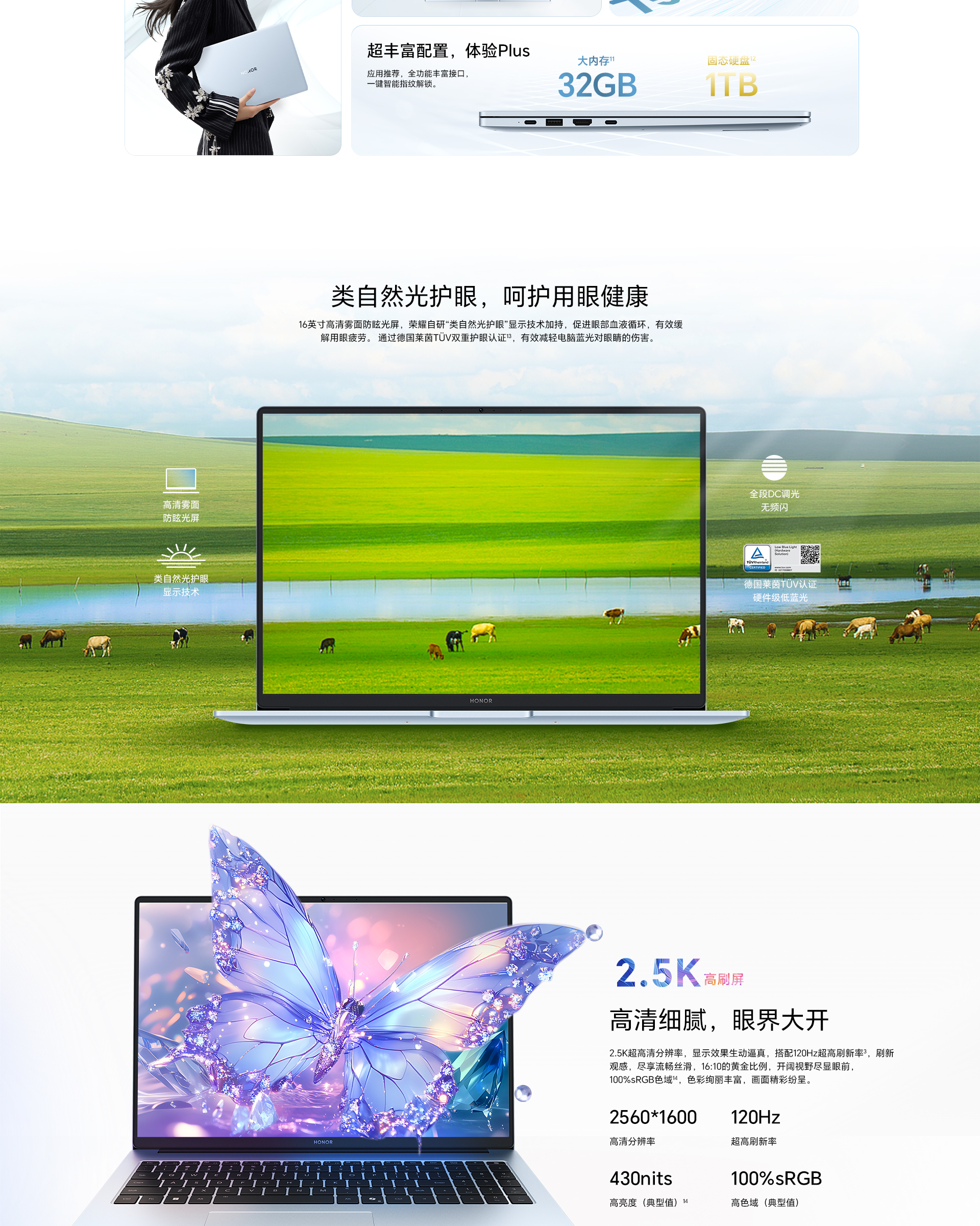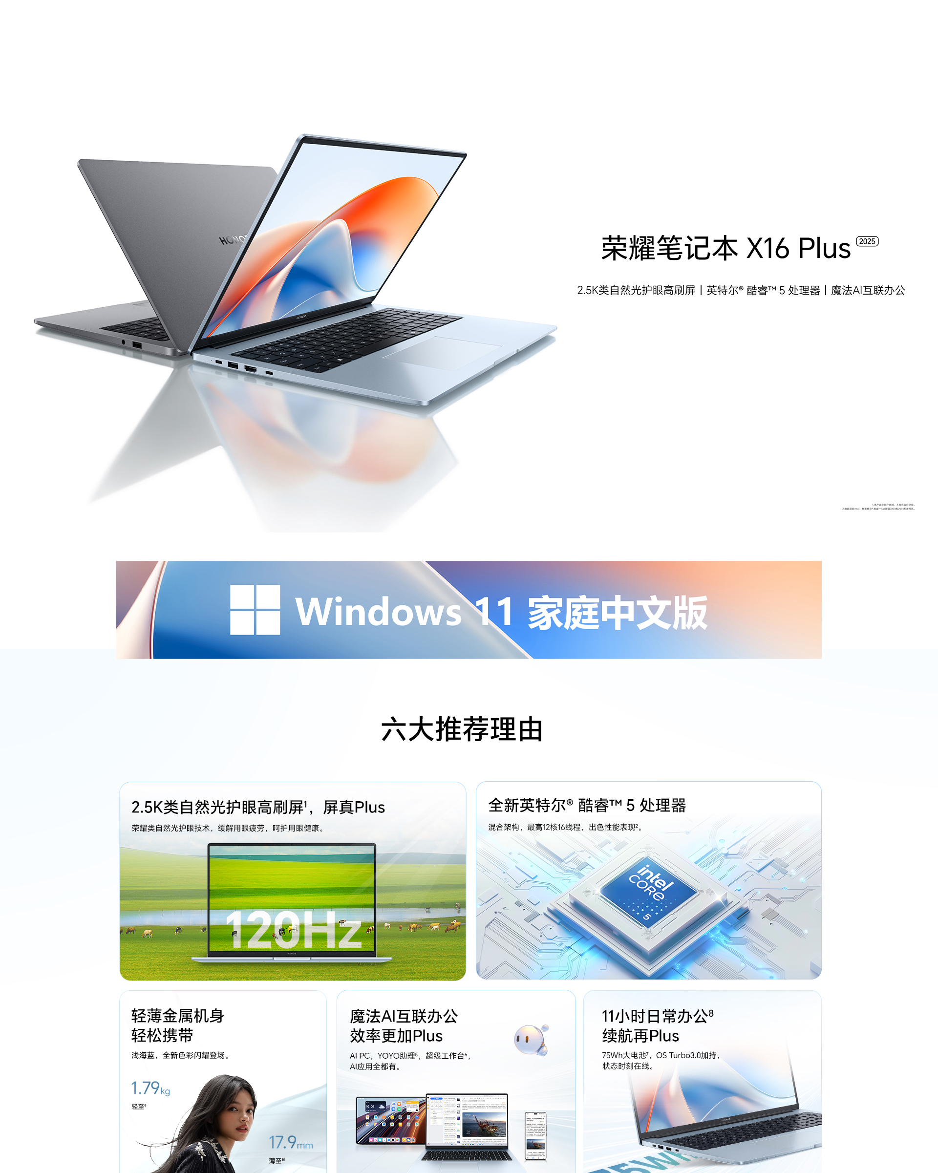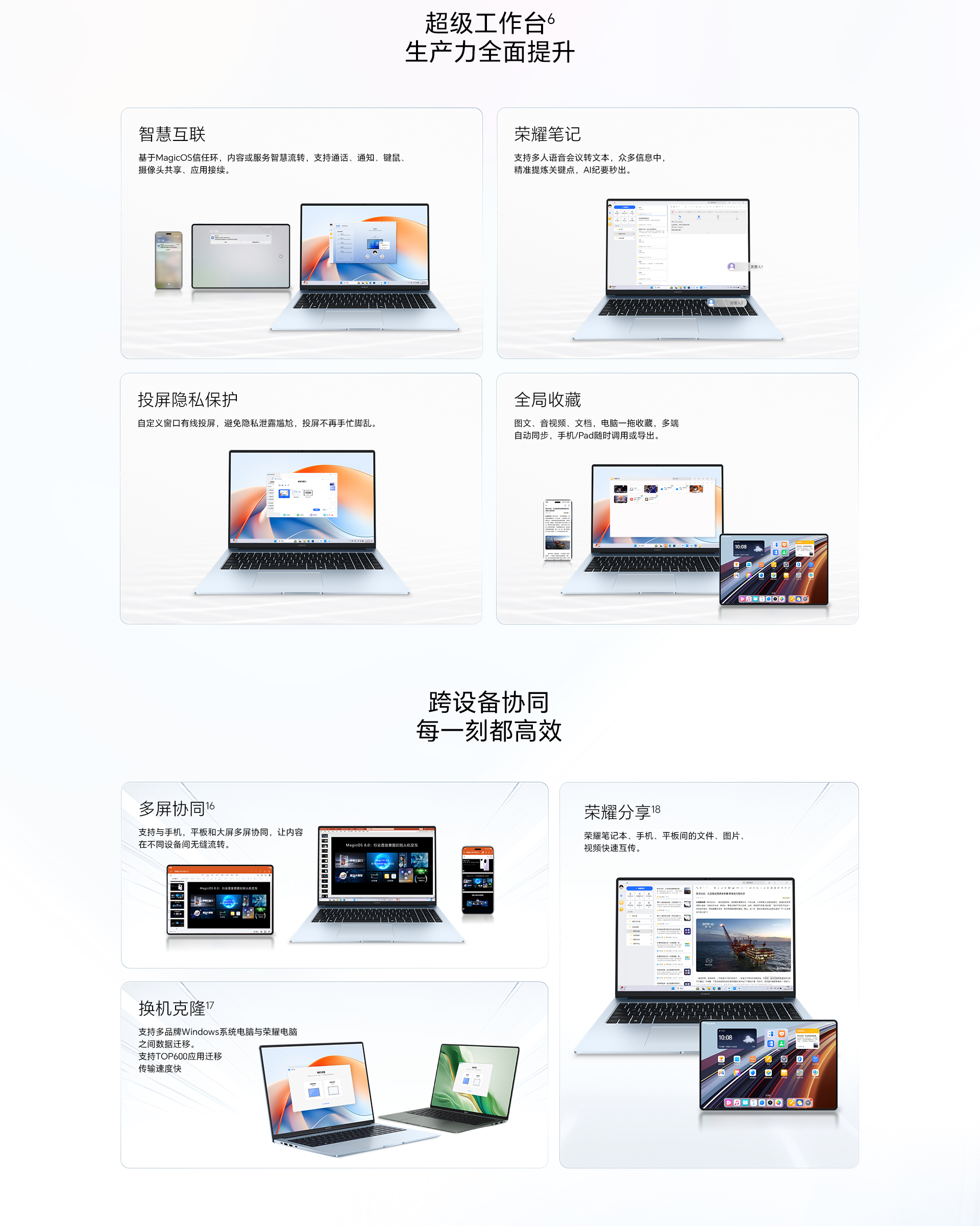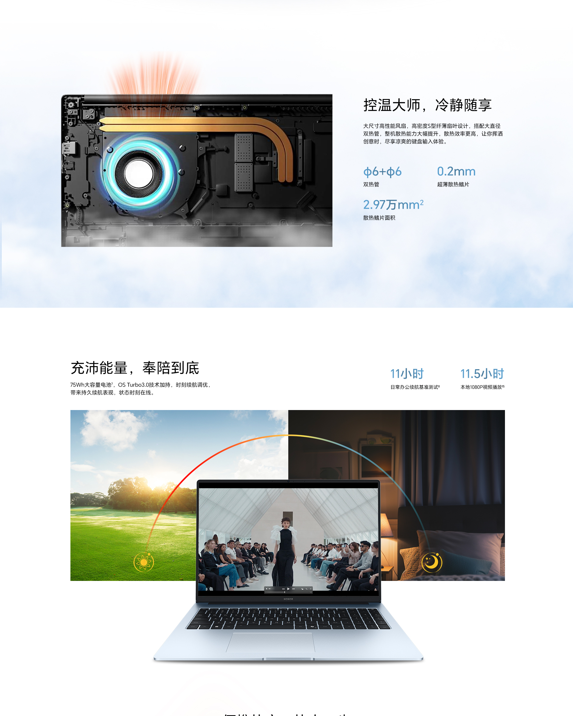 *以上页面中的数据为理论值,均来自荣耀内部实验室,于特定测试环境下所得(请见各项具体说明),实际使用中可能因产品个体差异、软件版本、使用条件和环境因素不同略有不同,请以实际使用的情况为准。