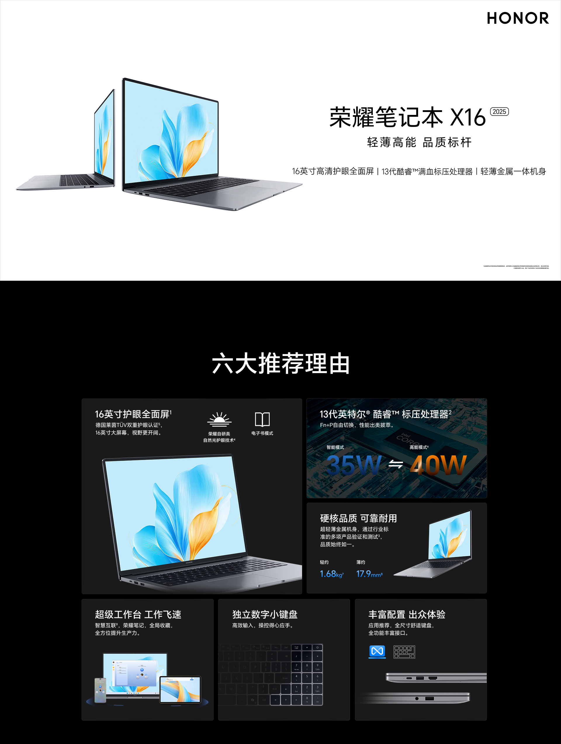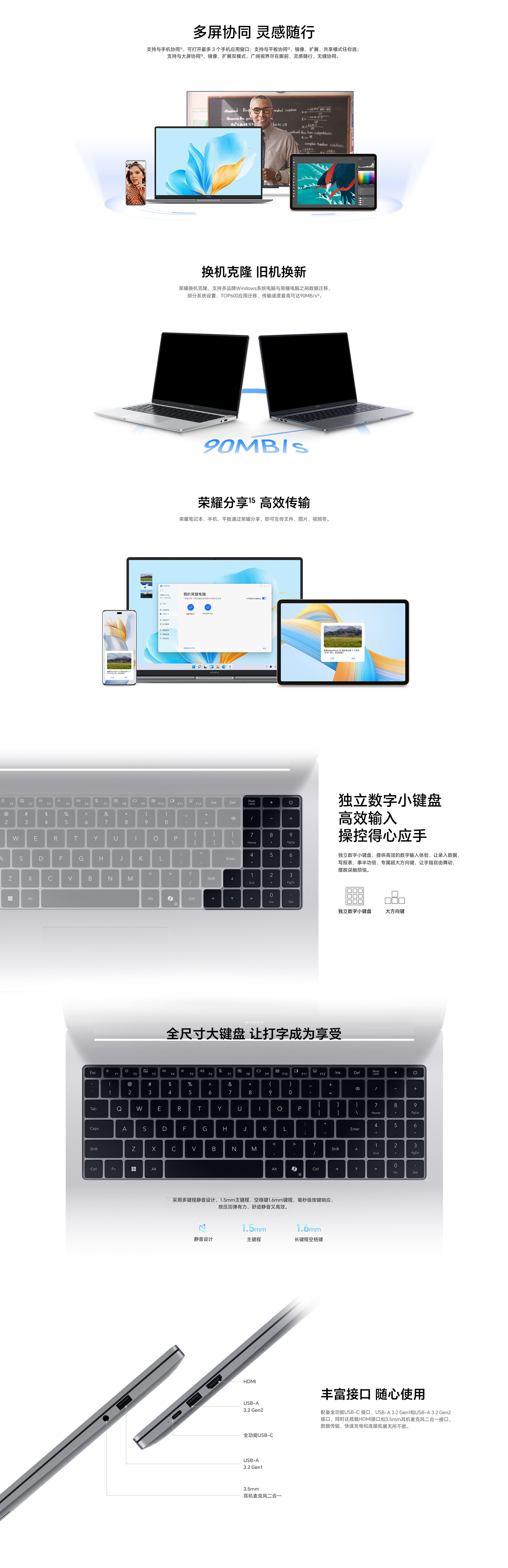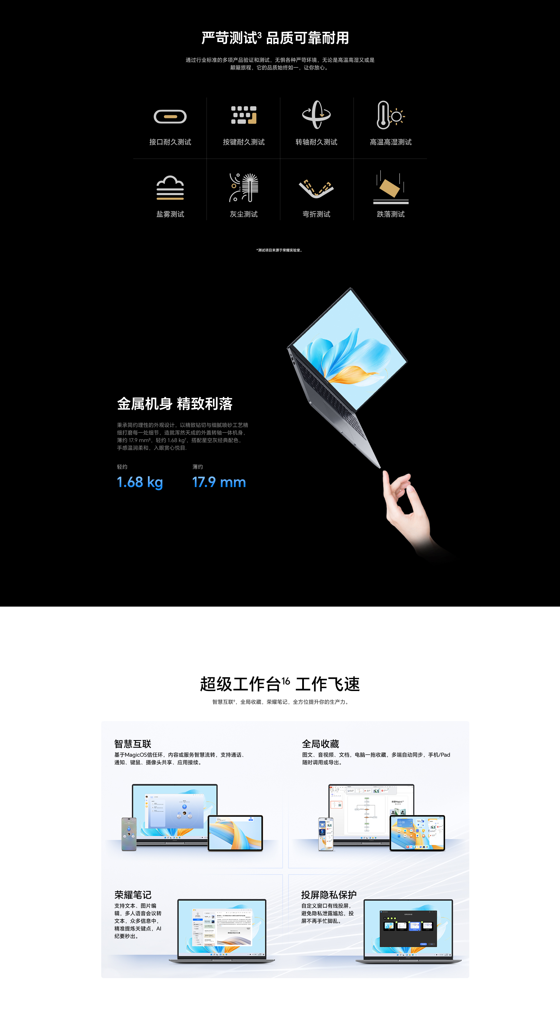 *以上页面中的数据为理论值,均来自荣耀内部实验室,于特定测试环境下所得(请见各项具体说明),实际使用中可能因产品个体差异、软件版本、使用条件和环境因素不同略有不同,请以实际使用的情况为准。