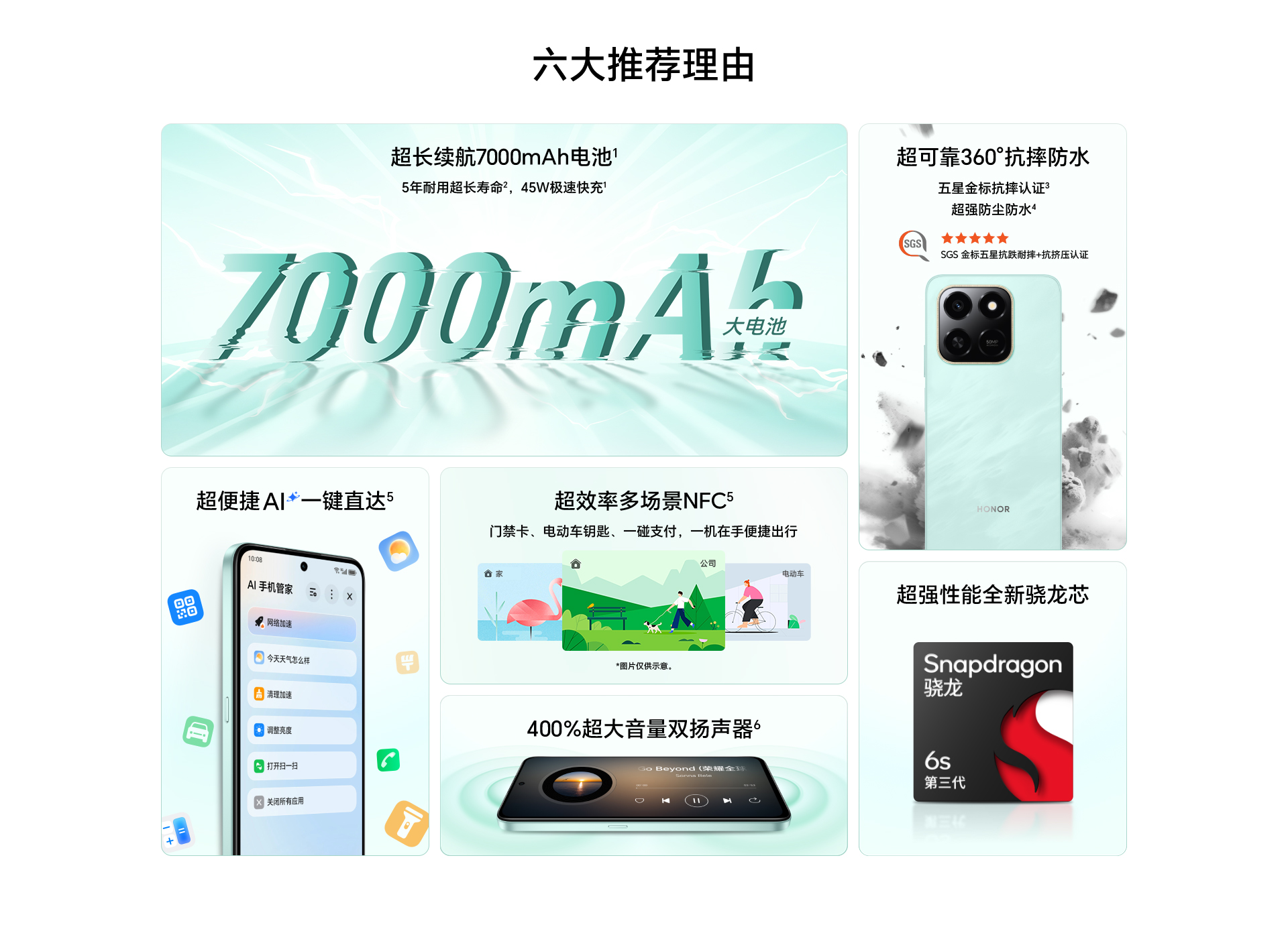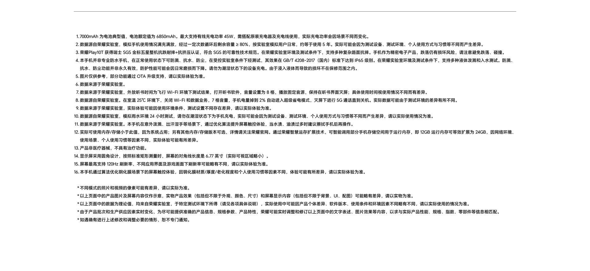 *以上页面中的数据为理论值,均来自荣耀内部实验室,于特定测试环境下所得(请见各项具体说明),实际使用中可能因产品个体差异、软件版本、使用条件和环境因素不同略有不同,请以实际使用的情况为准。