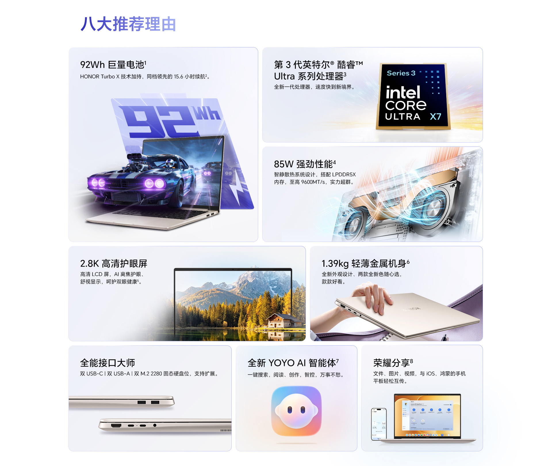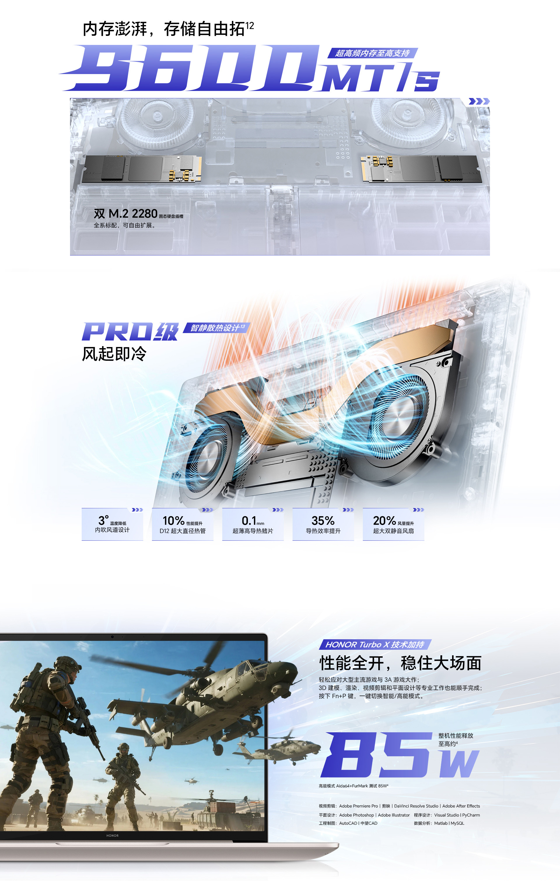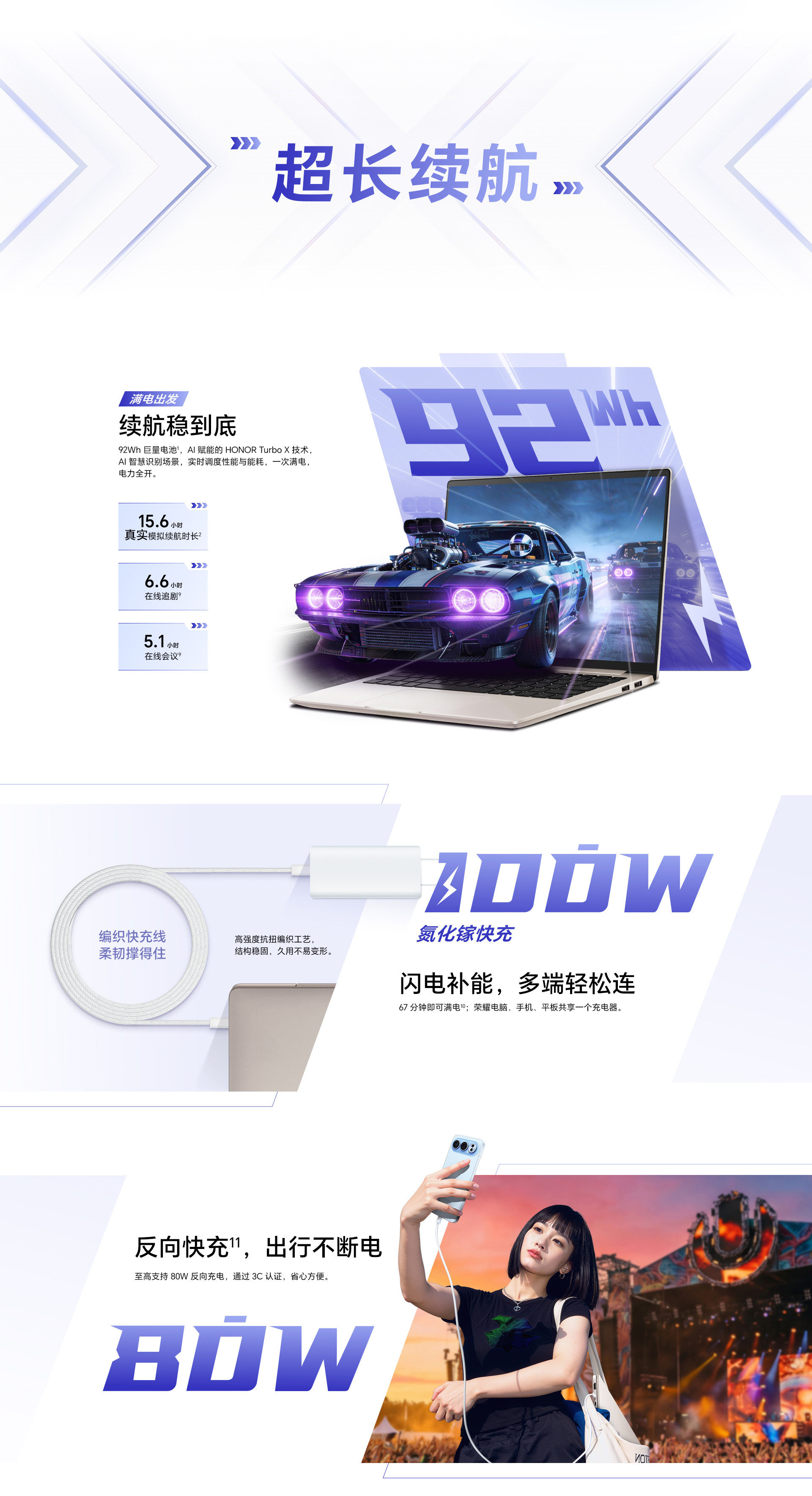 *以上页面中的数据为理论值,均来自荣耀内部实验室,于特定测试环境下所得(请见各项具体说明),实际使用中可能因产品个体差异、软件版本、使用条件和环境因素不同略有不同,请以实际使用的情况为准。