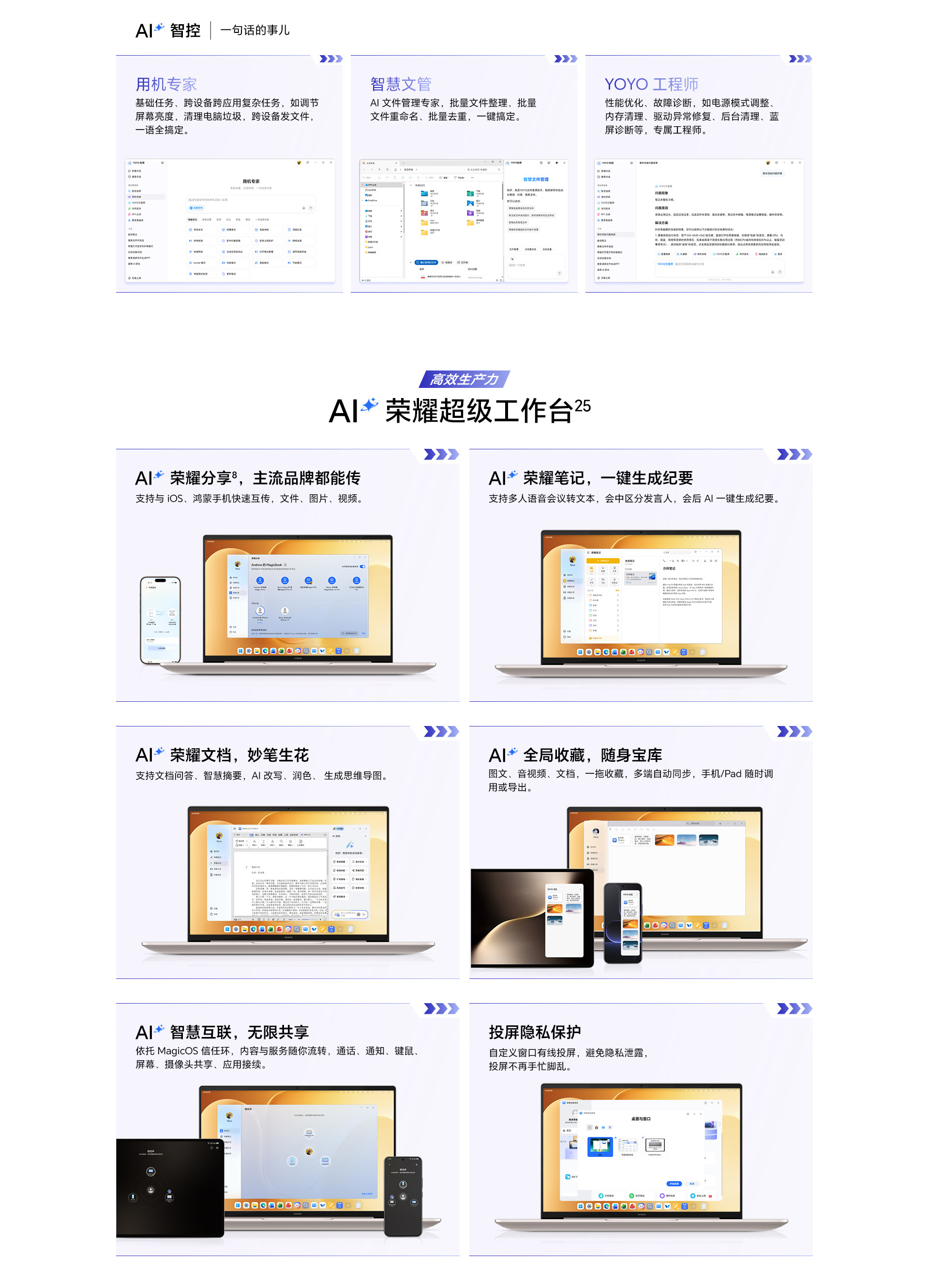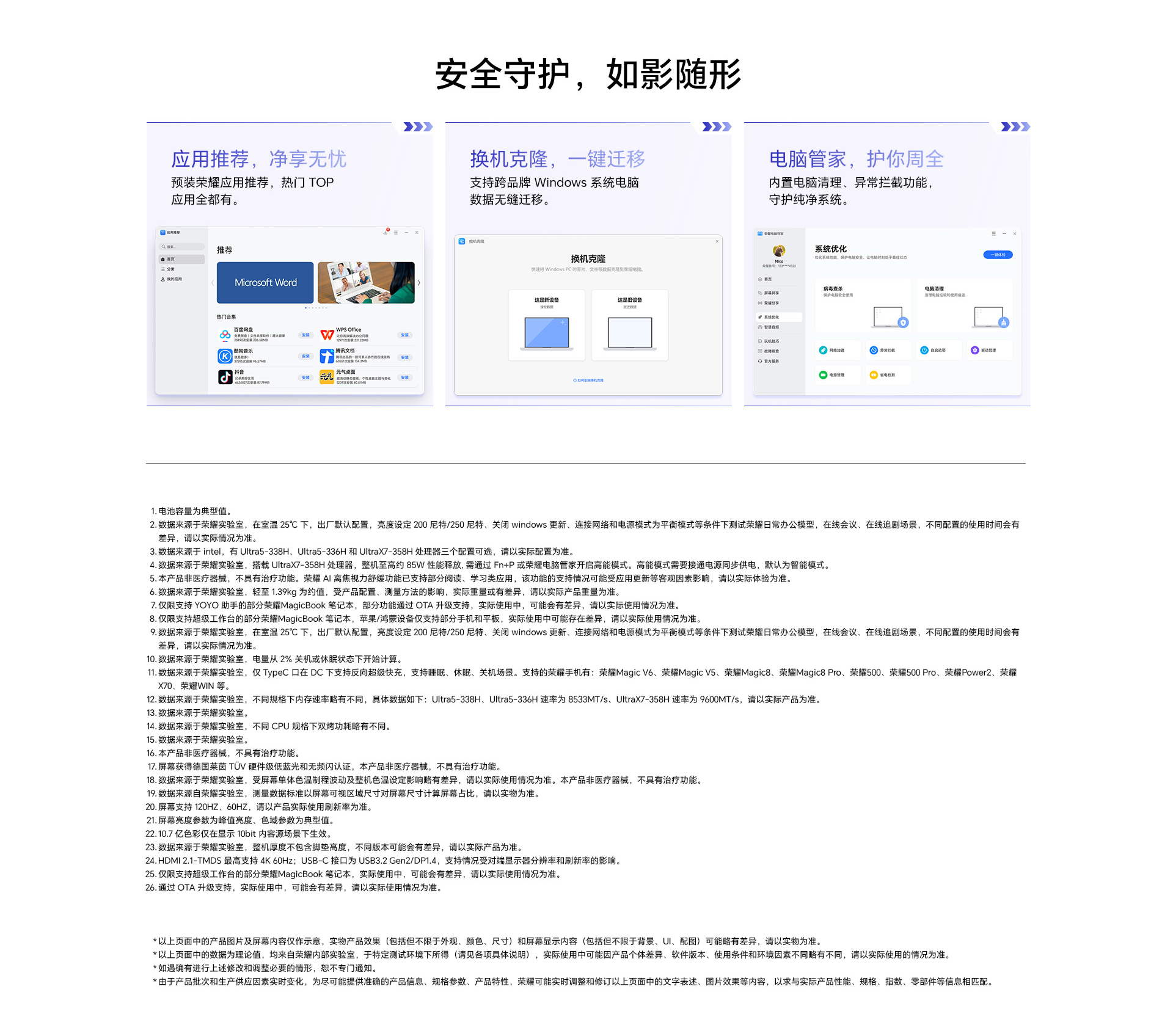 *为提供尽可能准确的产品信息、规格参数、产品特性,荣耀可能实时调整和修订以上页面中的文字表述、图片效果等内容,以求与实际产品性能、规格、指数、零部件等信息相匹配,由于产品批次和生产供应因素实时变化,如遇确有进行上述修改和调整必要的情形,恕不专门通知。