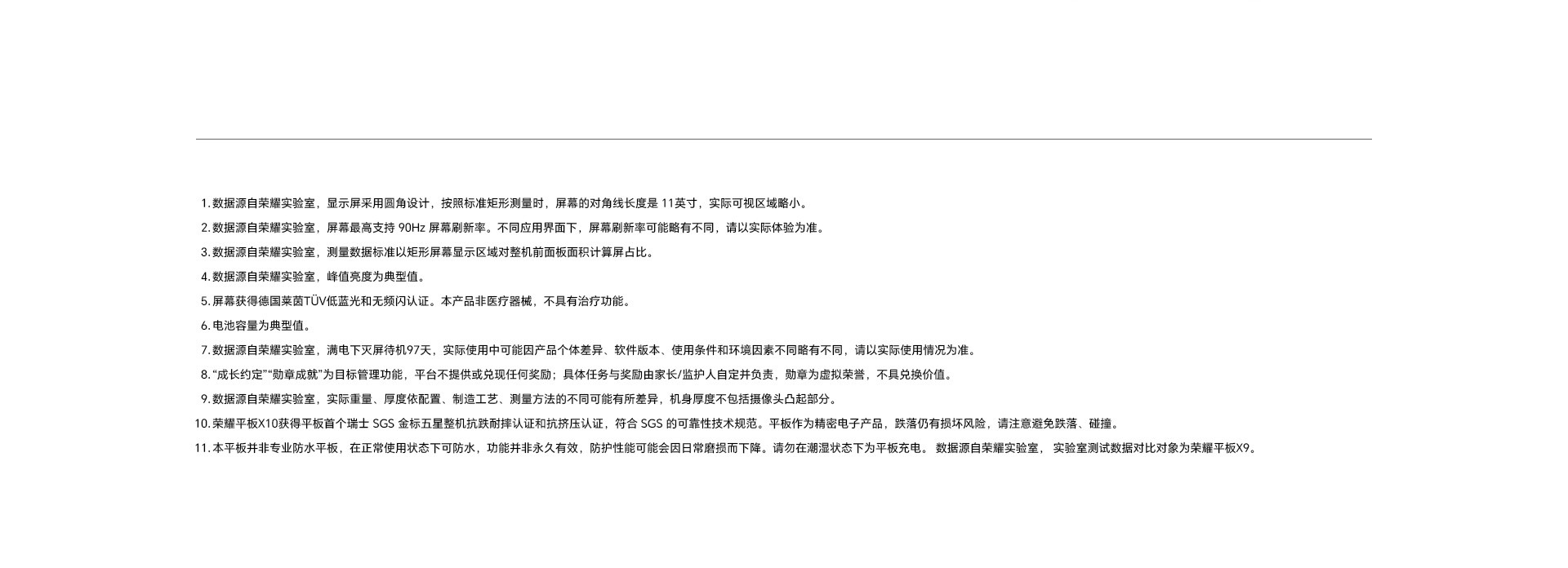 *以上页面中的数据为理论值,均来自荣耀内部实验室,于特定测试环境下所得(请见各项具体说明),实际使用中可能因产品个体差异、软件版本、使用条件和环境因素不同略有不同,请以实际使用的情况为准。