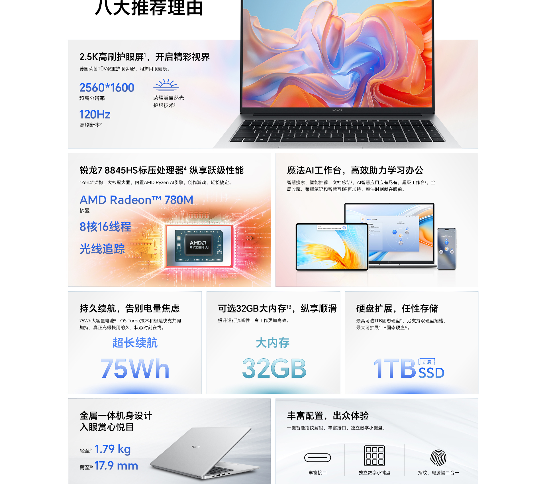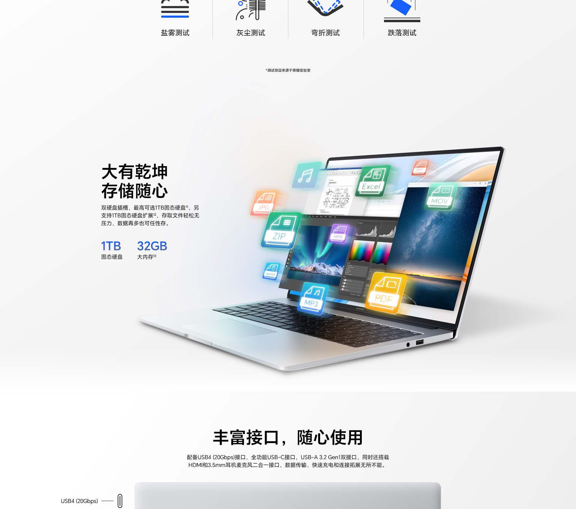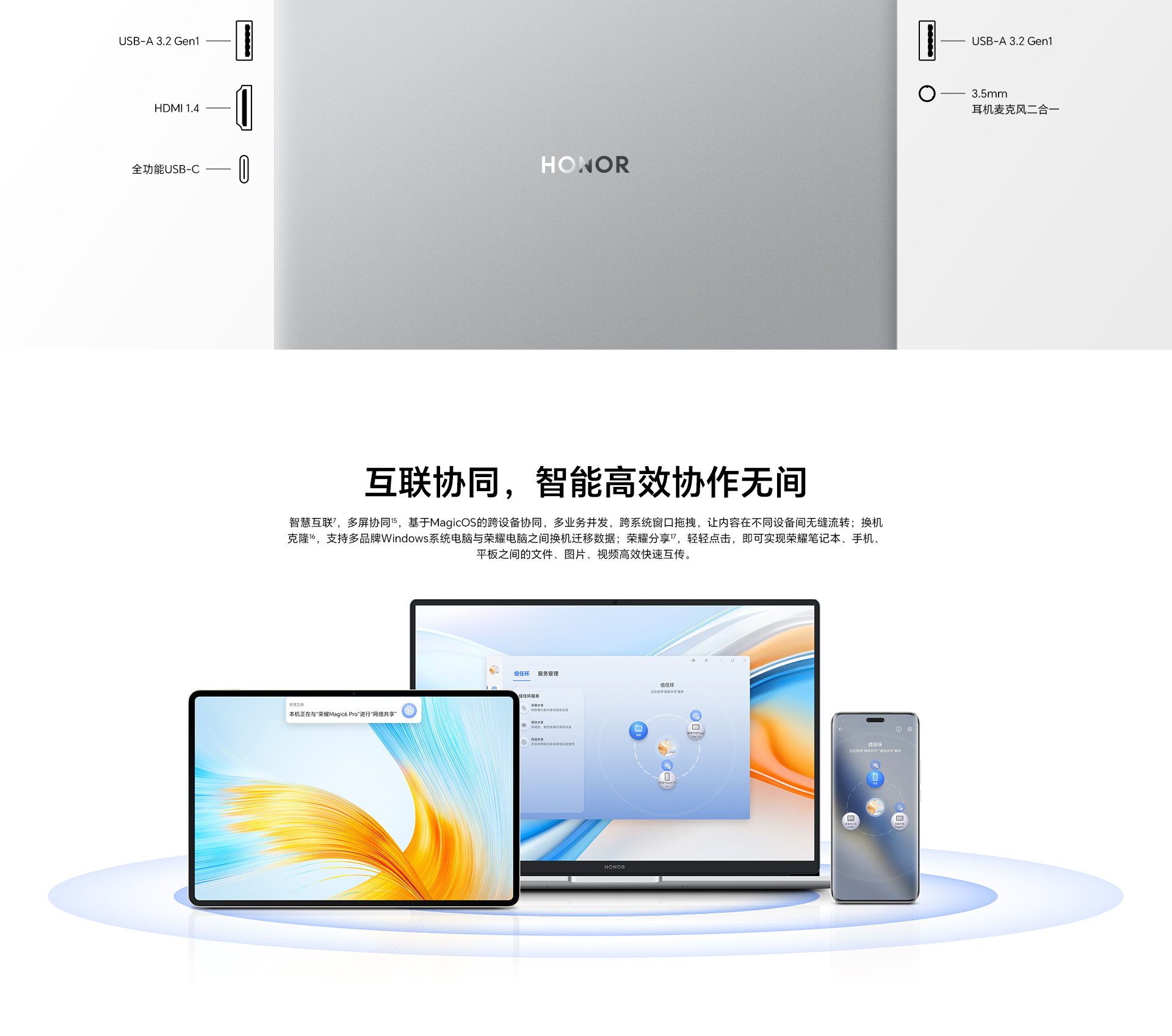 *以上页面中的数据为理论值,均来自荣耀内部实验室,于特定测试环境下所得(请见各项具体说明),实际使用中可能因产品个体差异、软件版本、使用条件和环境因素不同略有不同,请以实际使用的情况为准。