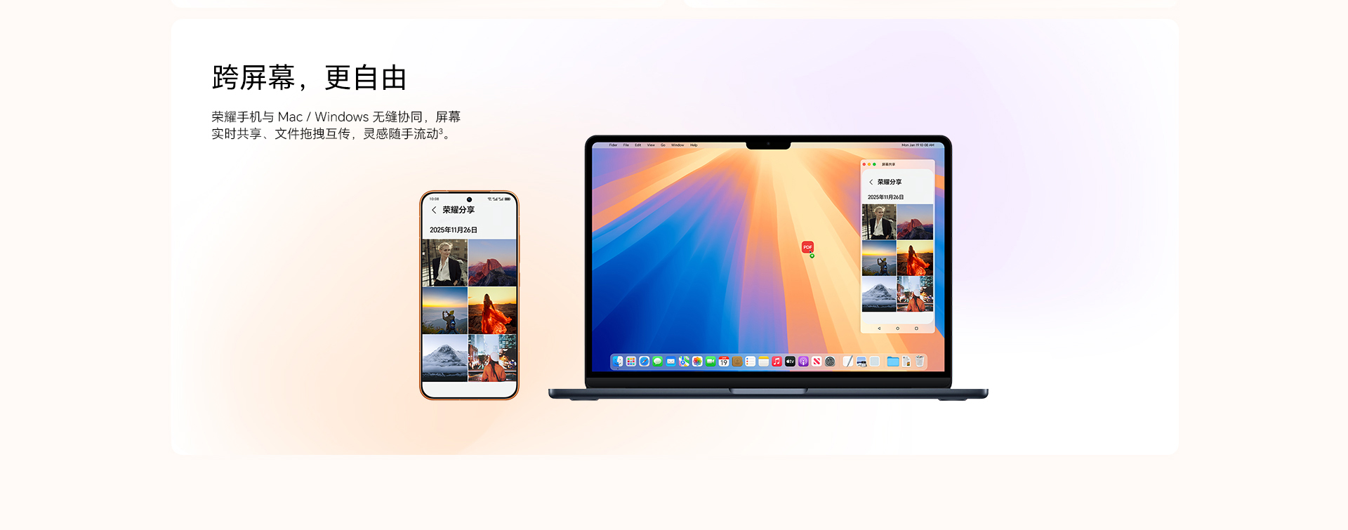 *为提供尽可能准确的产品信息、规格参数、产品特性,荣耀可能实时调整和修订以上页面中的文字表述、图片效果等内容,以求与实际产品性能、规格、指数、零部件等信息相匹配,由于产品批次和生产供应因素实时变化,如遇确有进行上述修改和调整必要的情形,恕不专门通知。