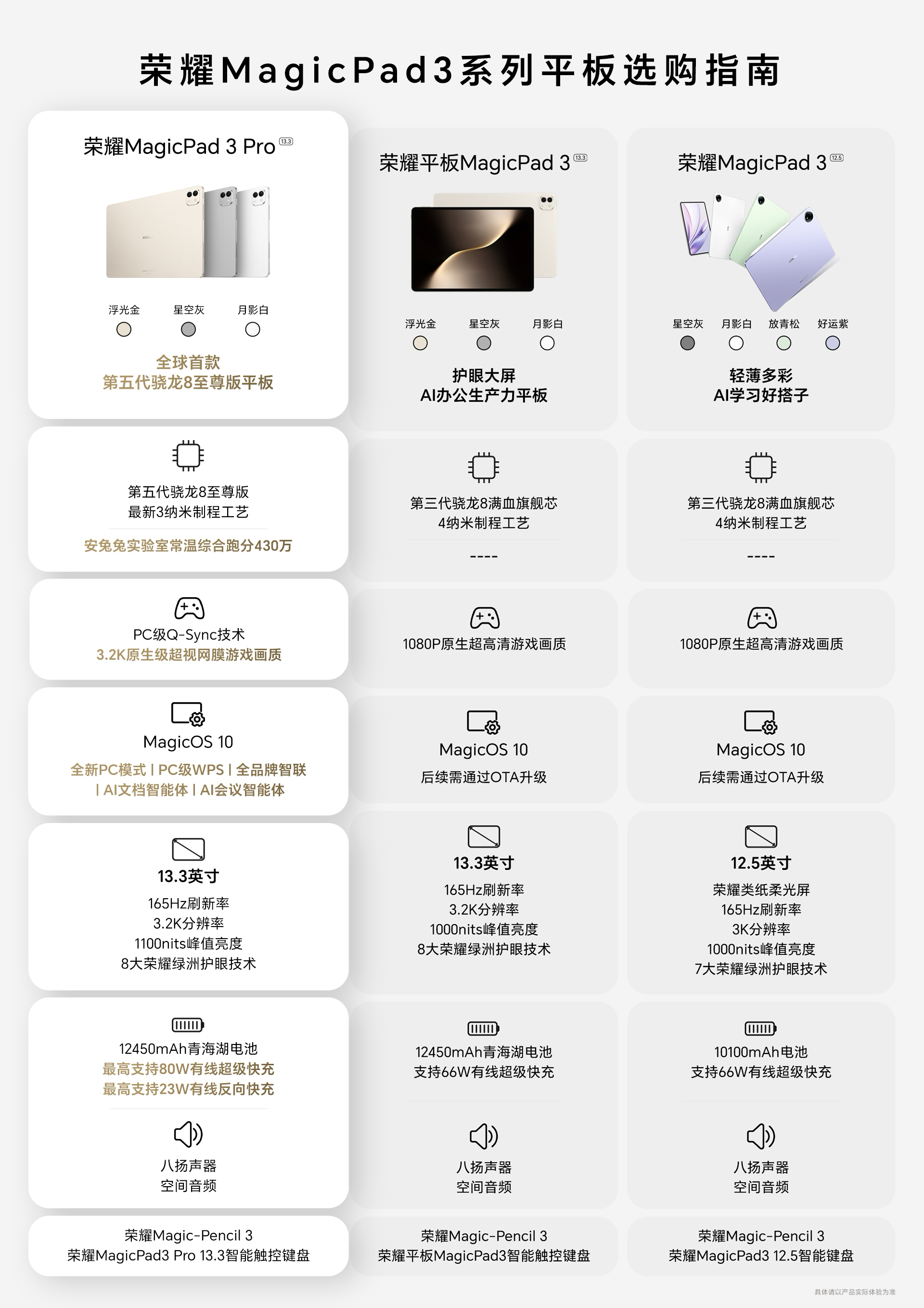 *为提供尽可能准确的产品信息、规格参数、产品特性,荣耀可能实时调整和修订以上页面中的文字表述、图片效果等内容,以求与实际产品性能、规格、指数、零部件等信息相匹配,由于产品批次和生产供应因素实时变化,如遇确有进行上述修改和调整必要的情形,恕不专门通知。