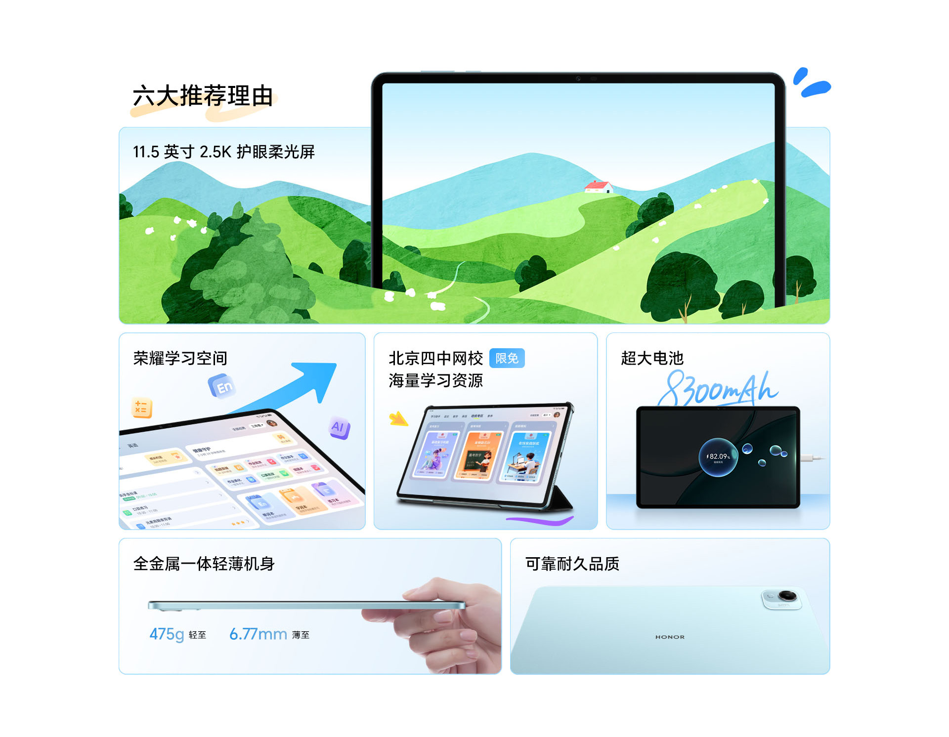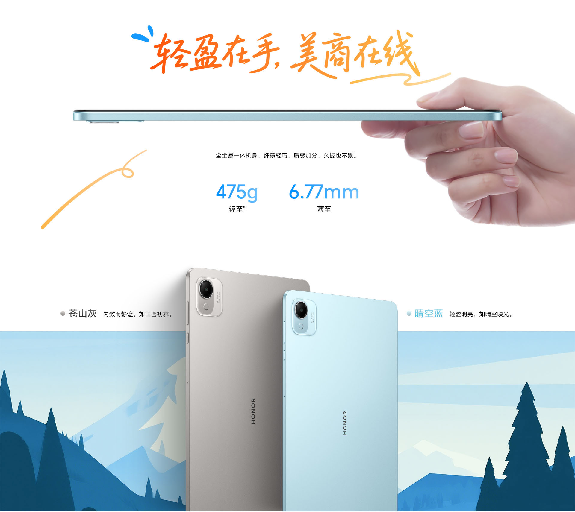 *以上页面中的数据为理论值,均来自荣耀内部实验室,于特定测试环境下所得(请见各项具体说明),实际使用中可能因产品个体差异、软件版本、使用条件和环境因素不同略有不同,请以实际使用的情况为准。