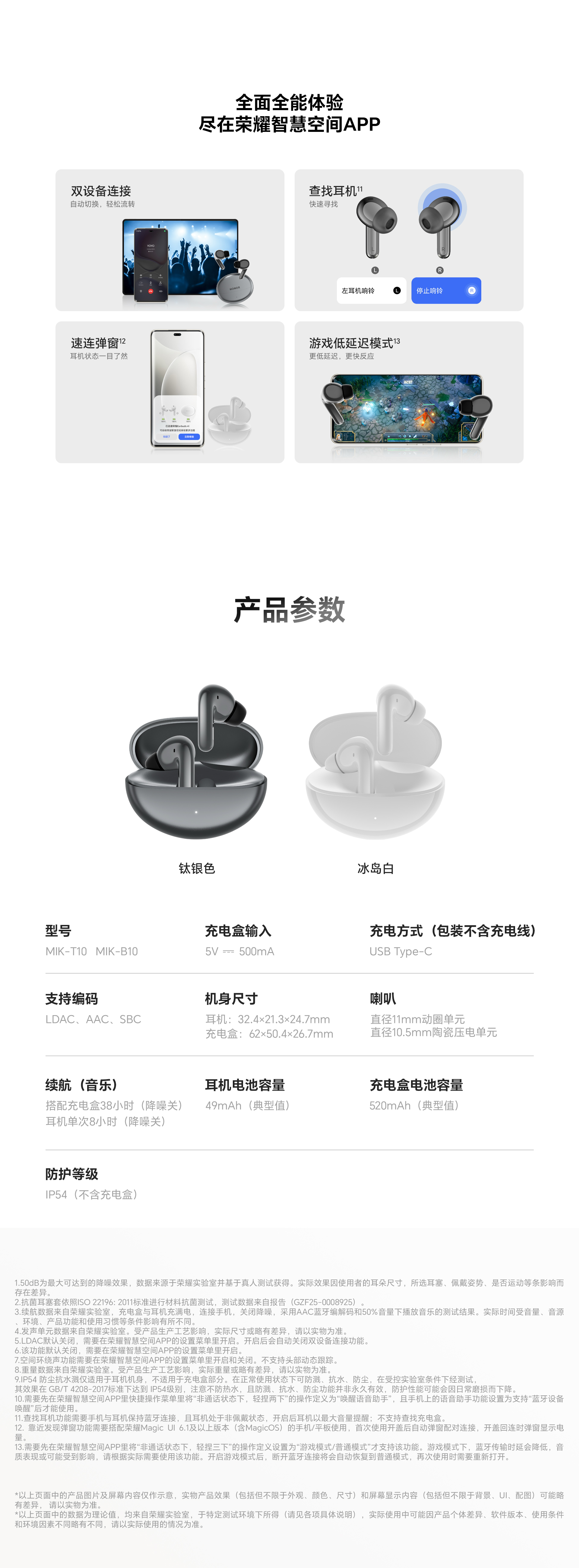 *以上页面中的数据为理论值,均来自荣耀内部实验室,于特定测试环境下所得(请见各项具体说明),实际使用中可能因产品个体差异、软件版本、使用条件和环境因素不同略有不同,请以实际使用的情况为准。