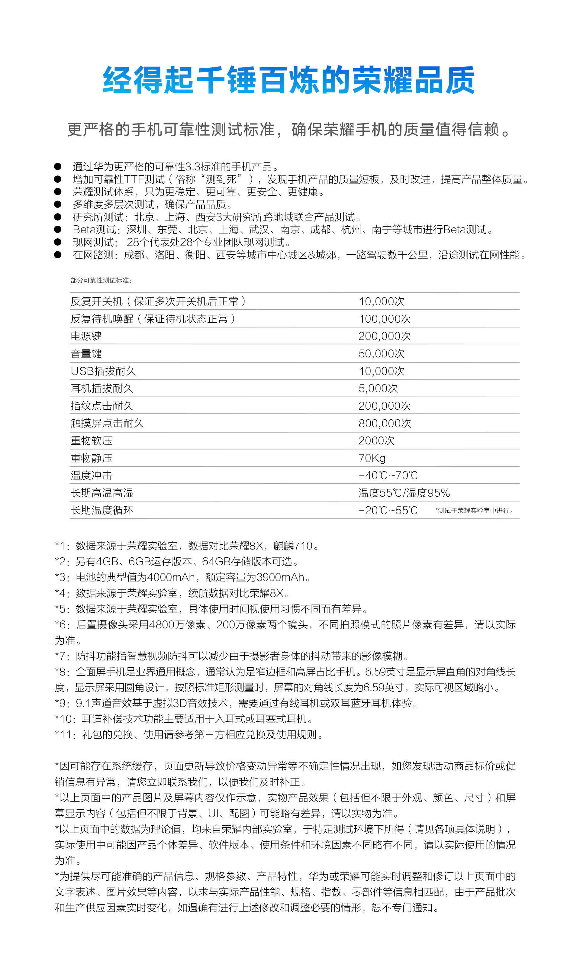 *以上页面中的数据为理论值,均来自荣耀内部实验室,于特定测试环境下所得(请见各项具体说明),实际使用中可能因产品个体差异、软件版本、使用条件和环境因素不同略有不同,请以实际使用的情况为准。