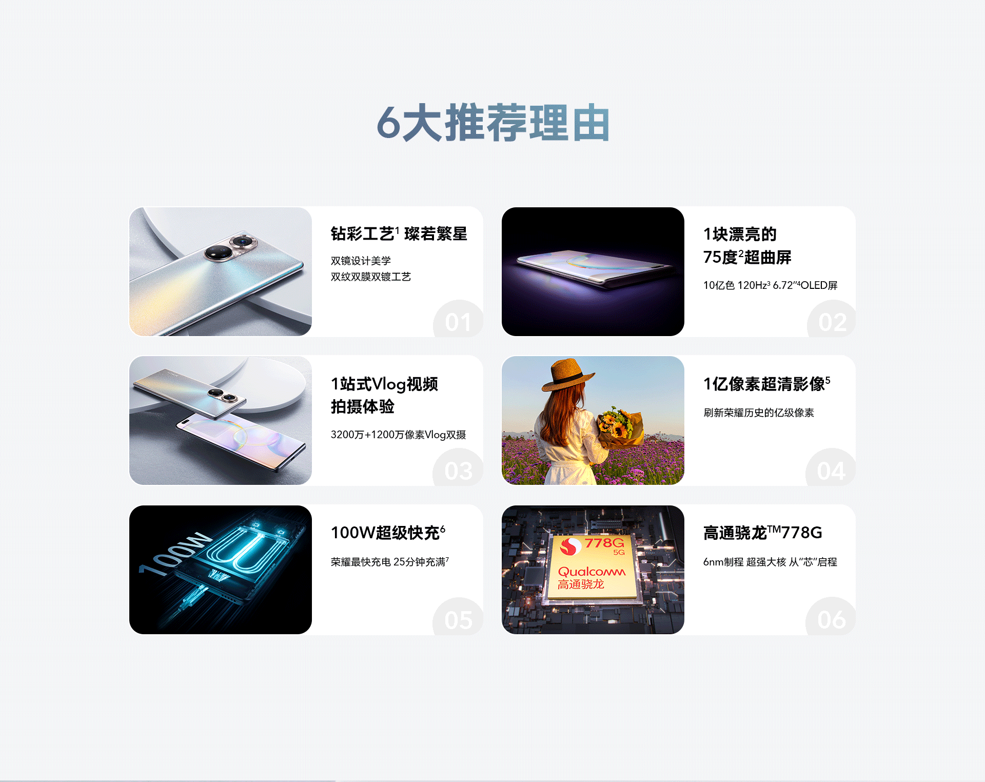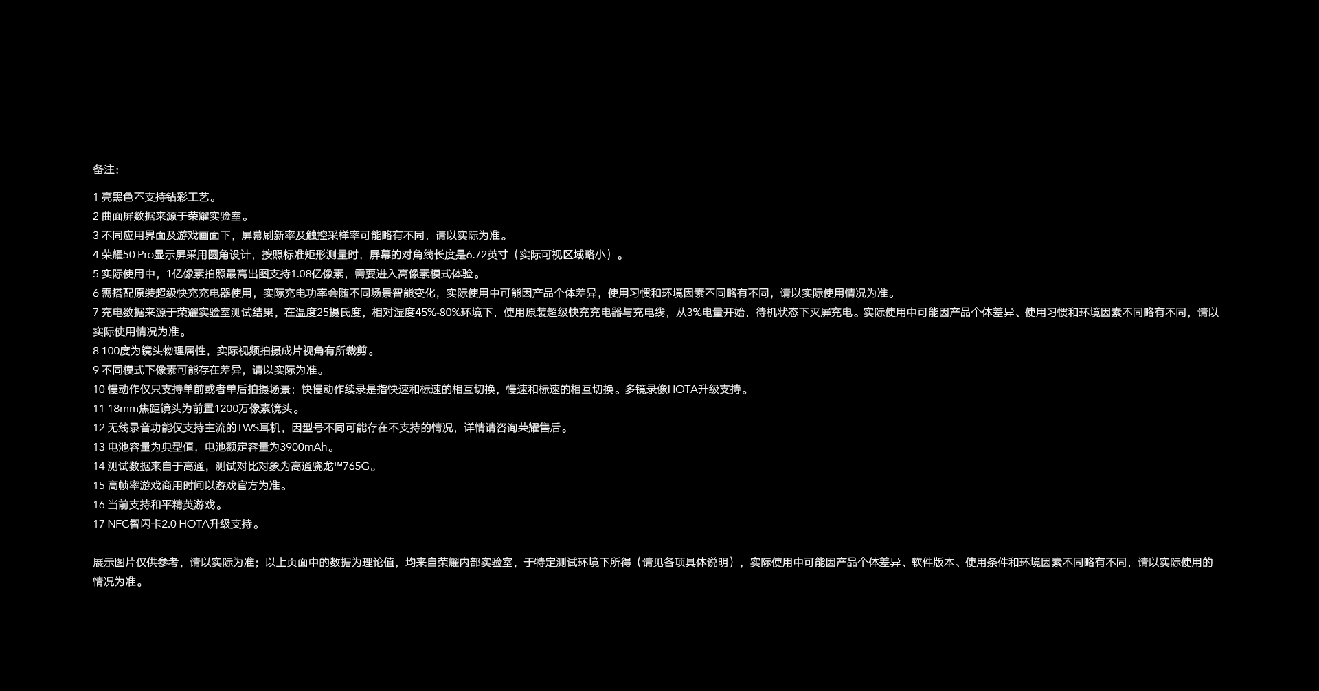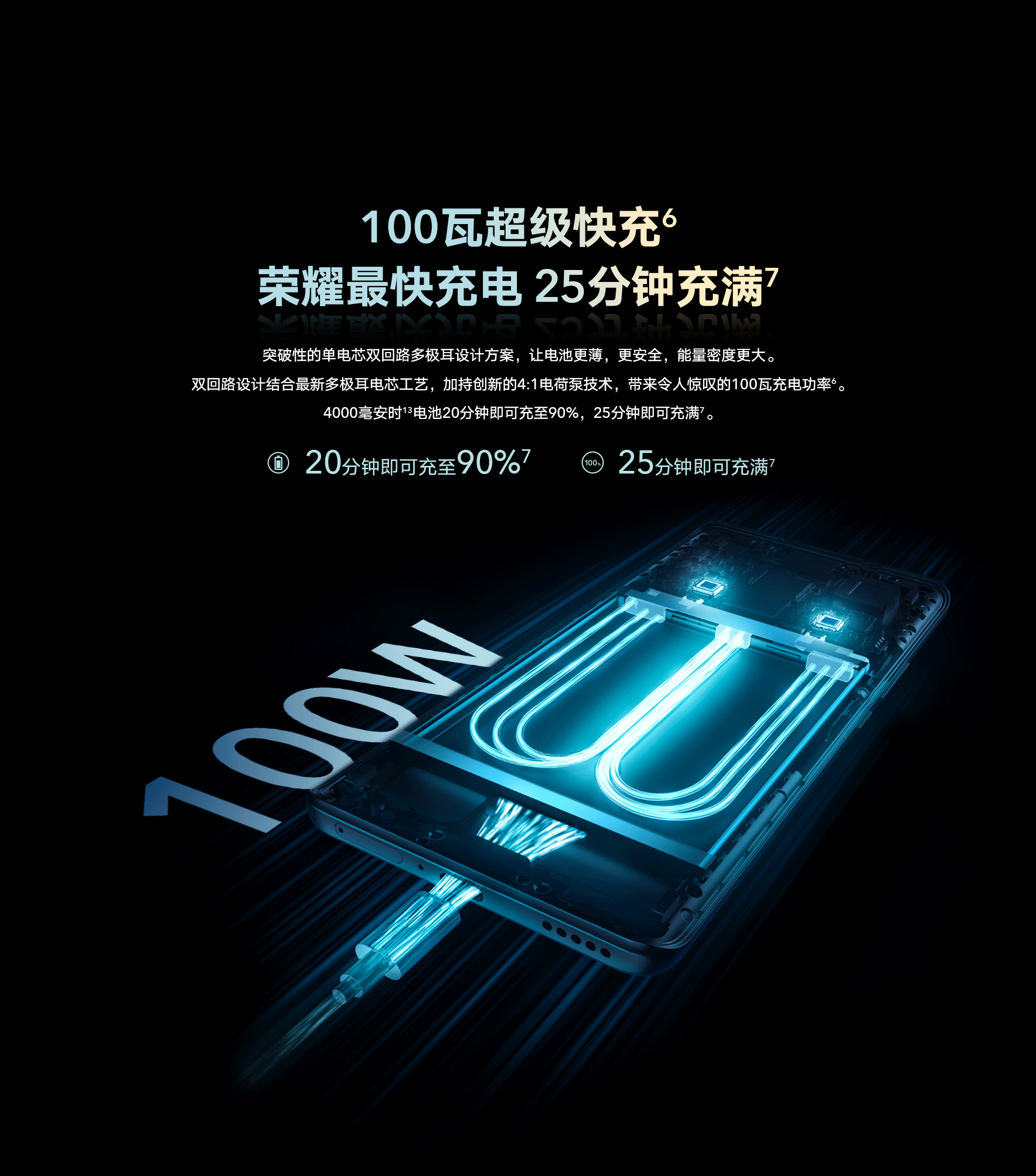 *以上页面中的数据为理论值,均来自荣耀内部实验室,于特定测试环境下所得(请见各项具体说明),实际使用中可能因产品个体差异、软件版本、使用条件和环境因素不同略有不同,请以实际使用的情况为准。