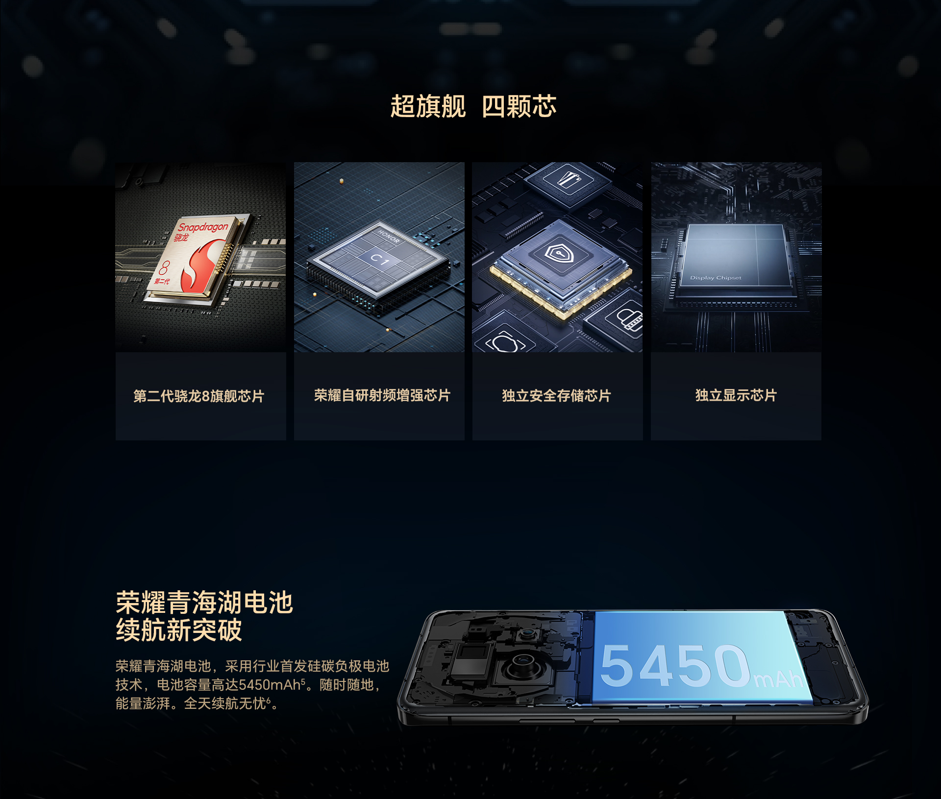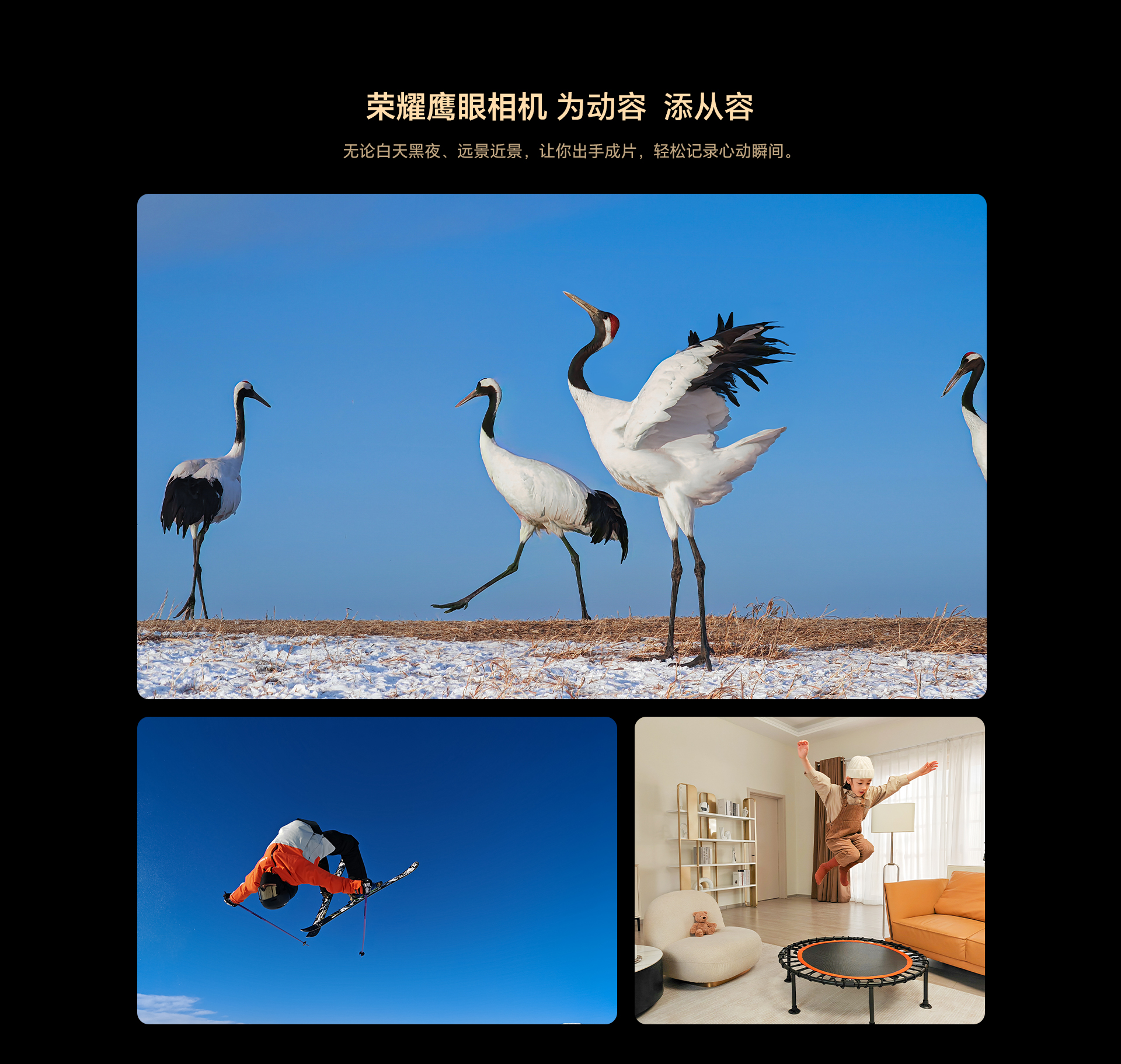 *以上页面中的数据为理论值,均来自荣耀内部实验室,于特定测试环境下所得(请见各项具体说明),实际使用中可能因产品个体差异、软件版本、使用条件和环境因素不同略有不同,请以实际使用的情况为准。