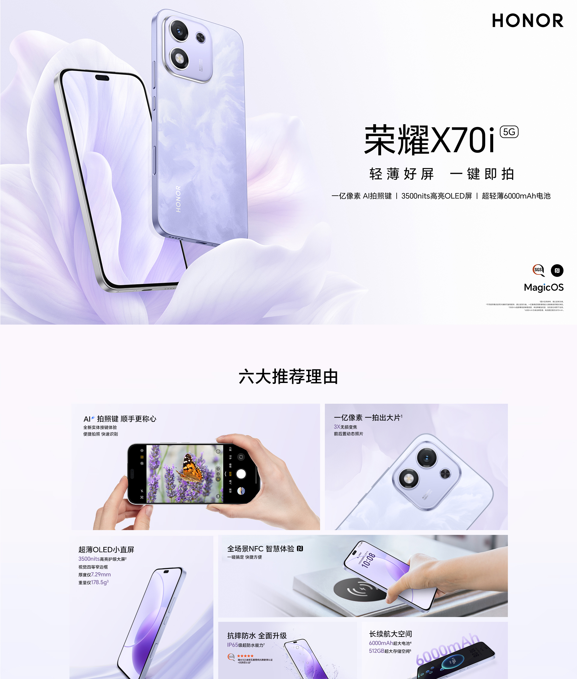 荣耀X70i 8GB+256GB 绒黑色 双卡 全网通版