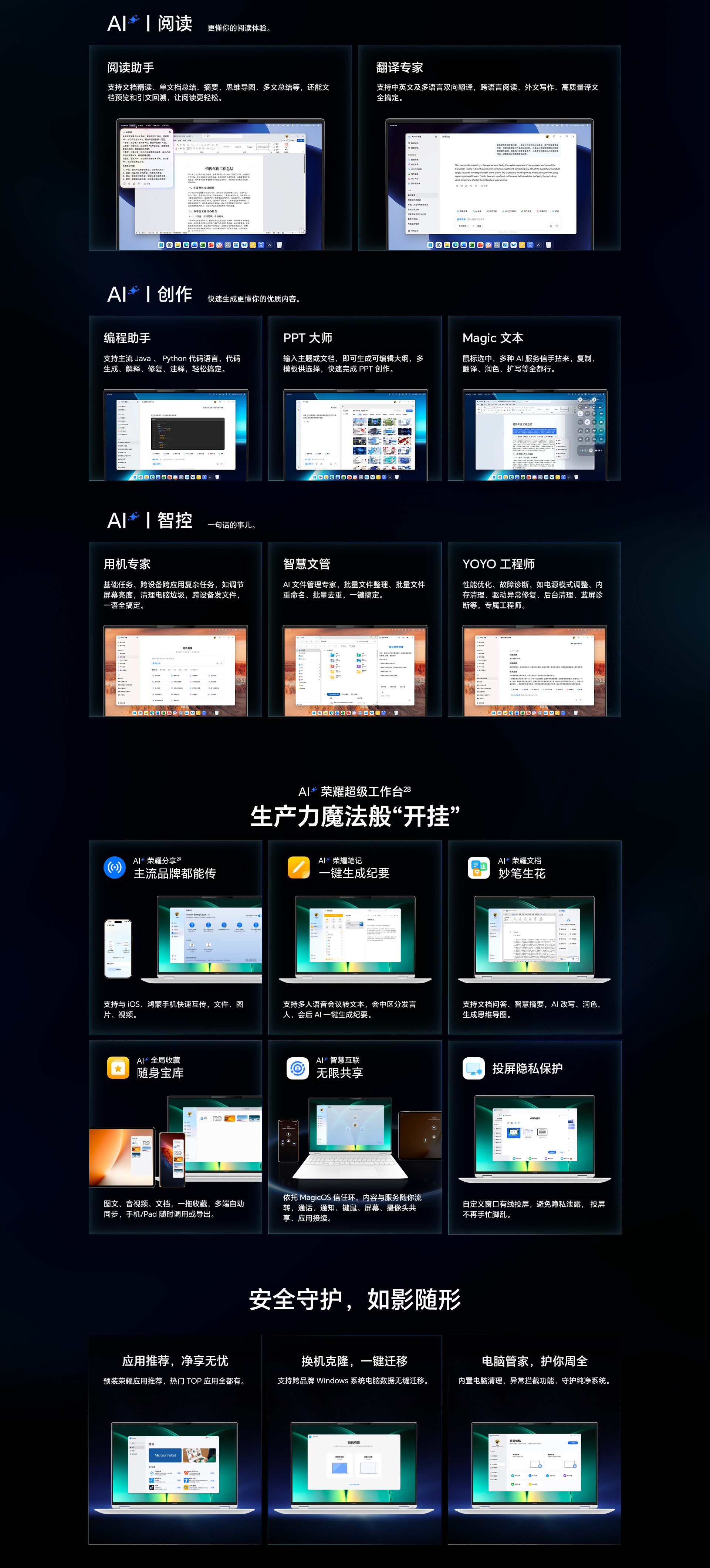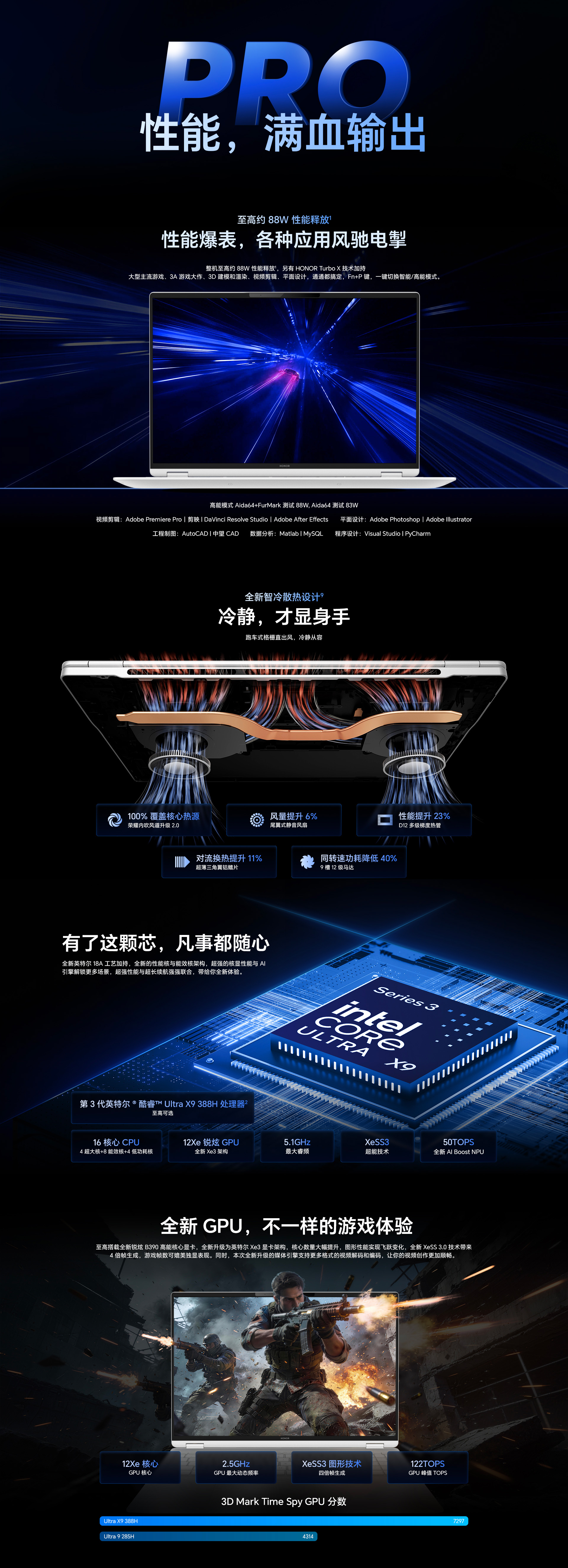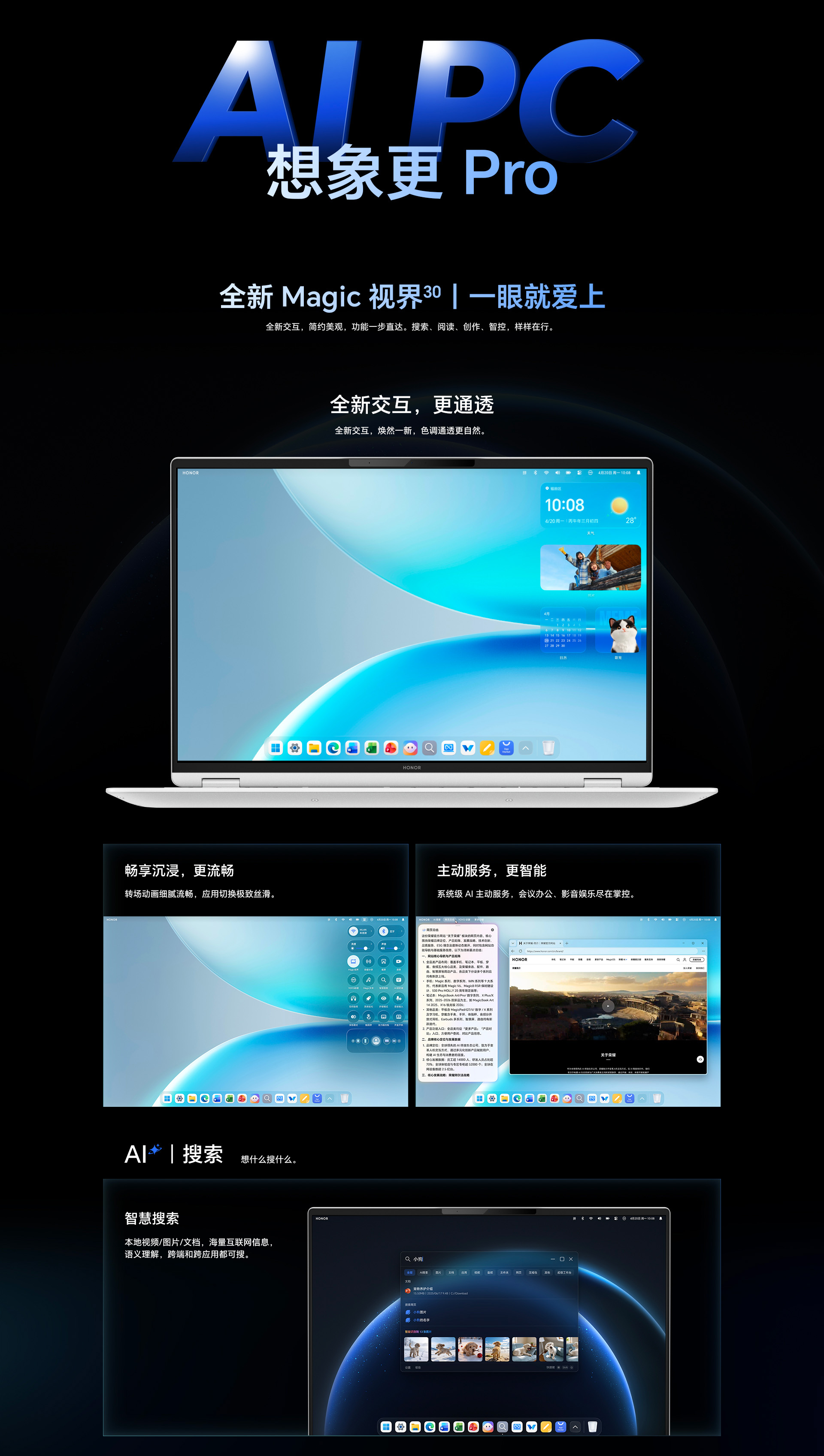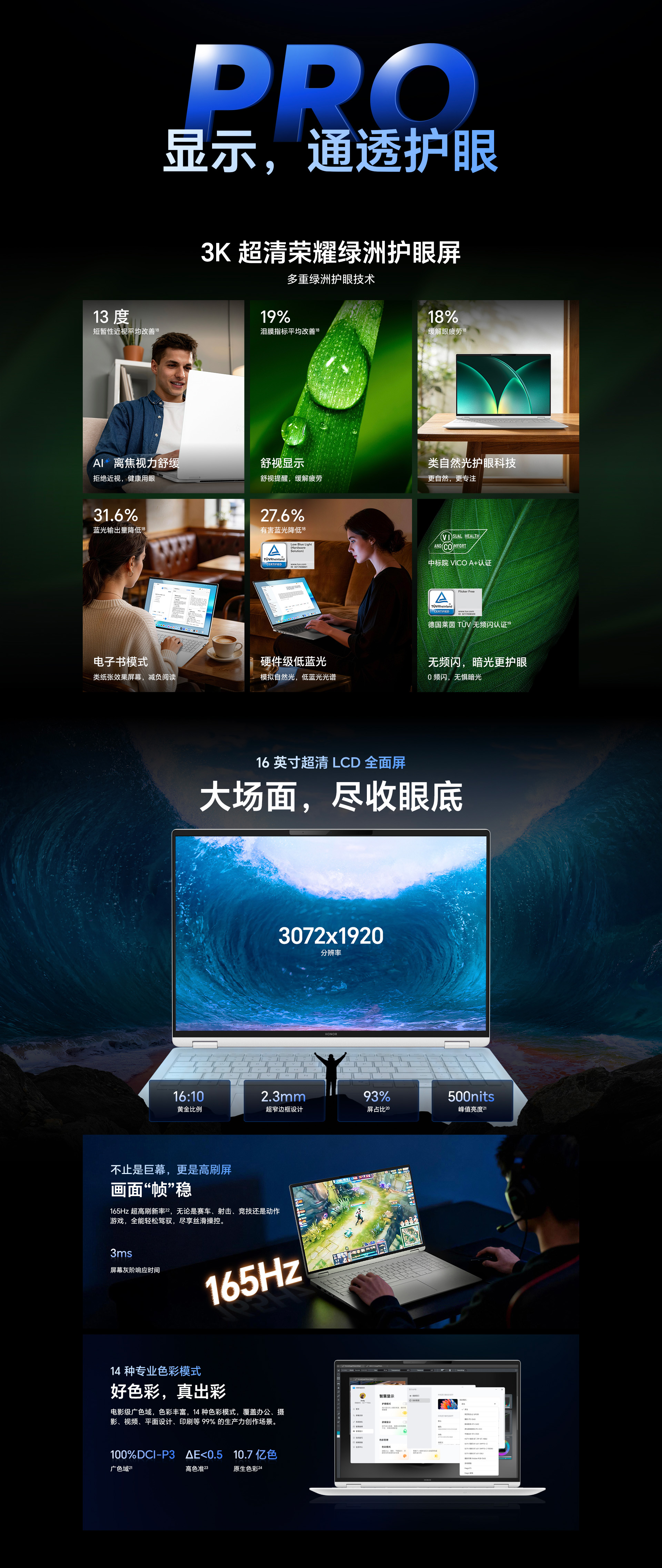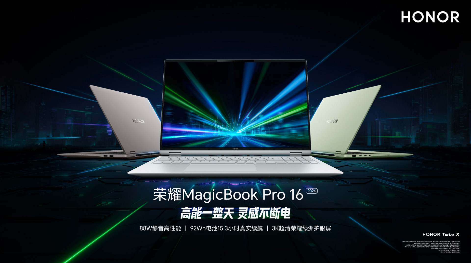 荣耀MagicBook Pro 16 2026 AI全能轻薄笔记本 16吋 Ultra5-338H Windows 11 家庭中文版 32G 1T 3K荣耀绿洲护眼屏 星辰灰