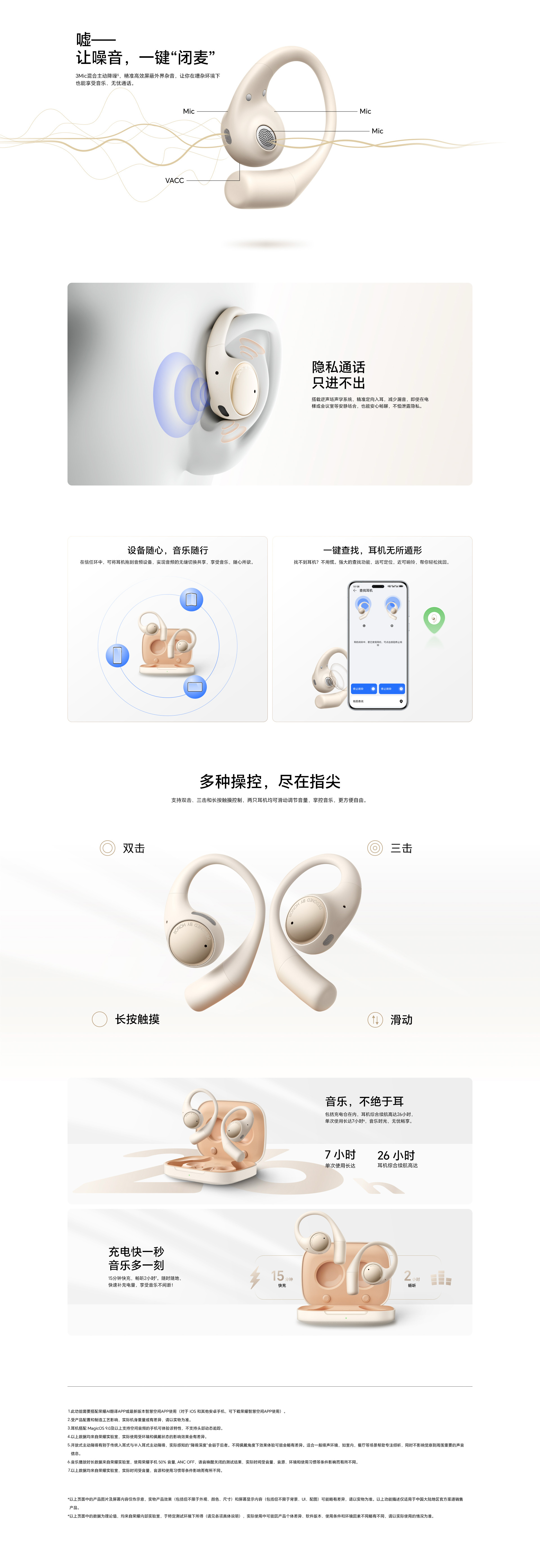 耳机 x2(左右耳各1PCS) 充电盒 x1快速入门 & 安全信息说明x1保修卡 x1 欢迎卡片 x1 AI卡片 x1